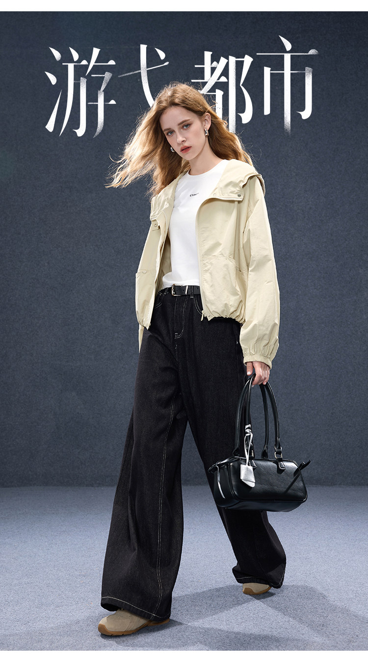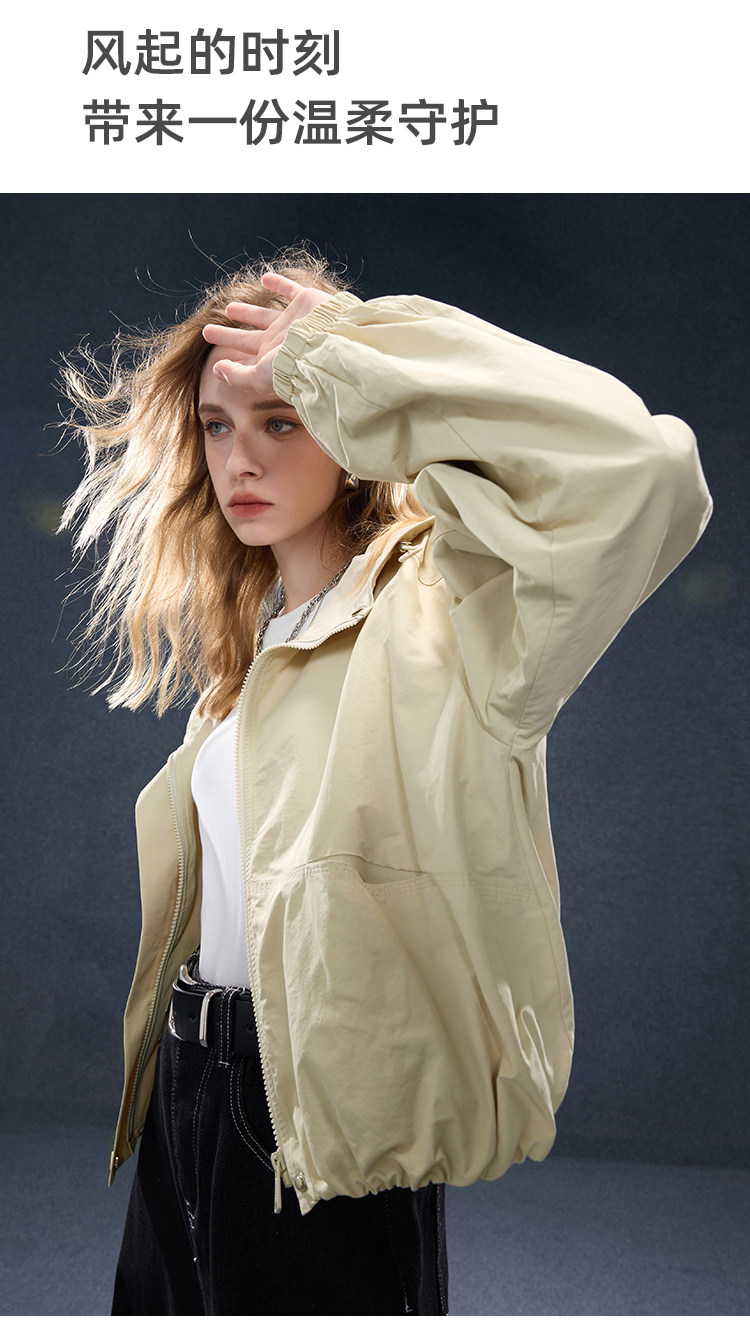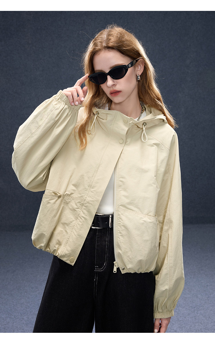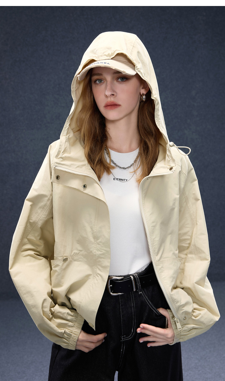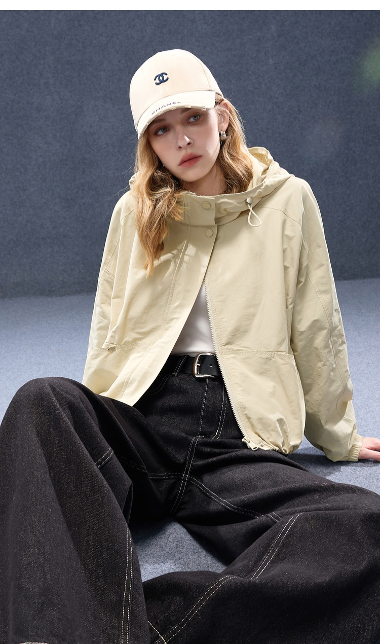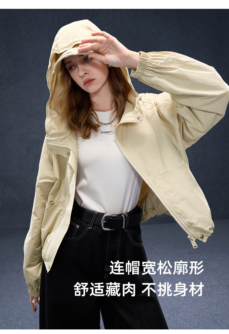 2026년 초봄 신상 캐주얼 후드 집업 카키 재킷, 레트로 스타일의 짧고 슬림한 여성용 M 사이즈 공식 이미지가 공개되었습니다.