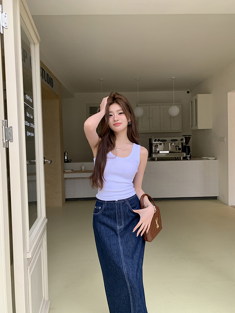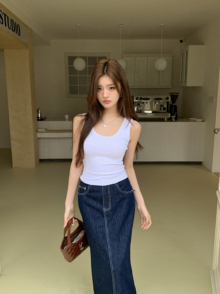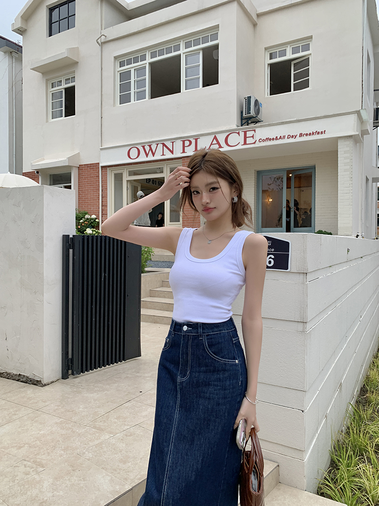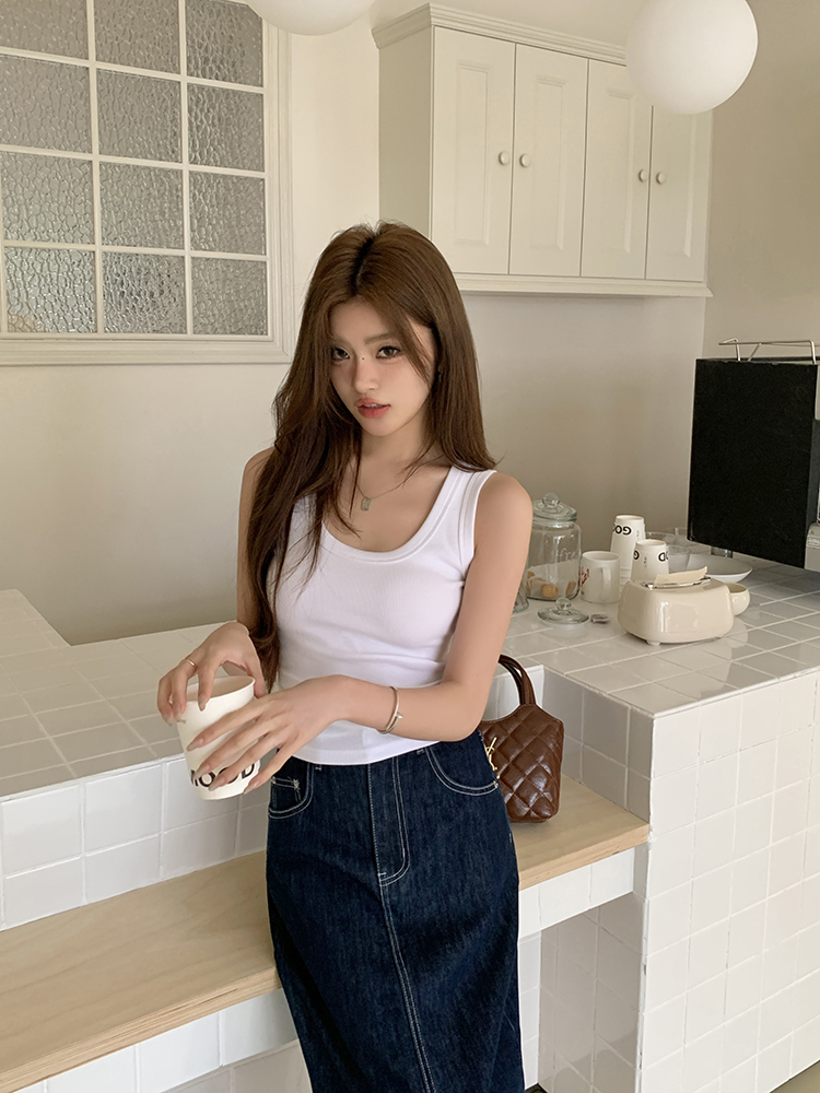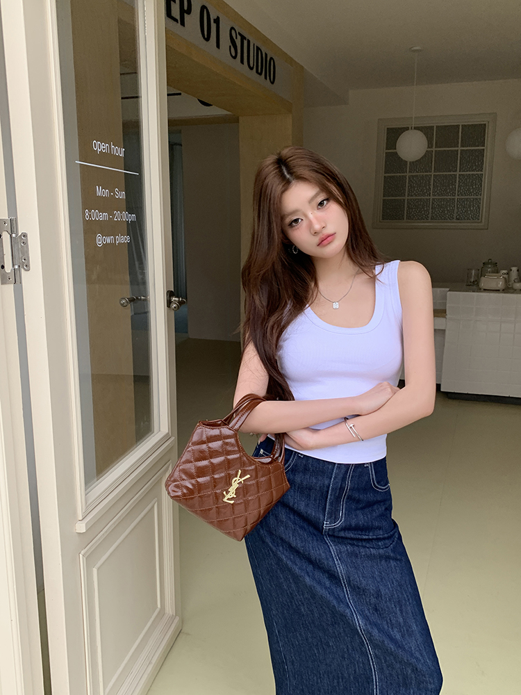 2026년 봄/여름 신상 여성용 기본 스트레치 슬림핏 니트 반팔 탑의 실제 사진입니다. 아우터로도 활용 가능하며 다양한 스타일 연출이 가능합니다.