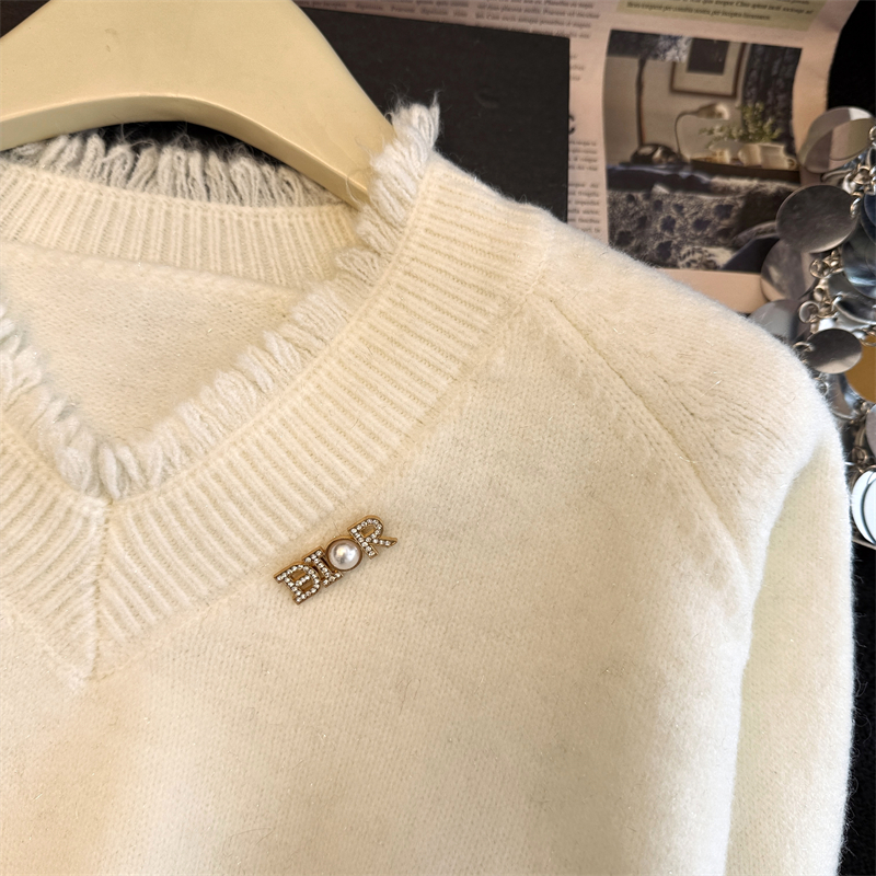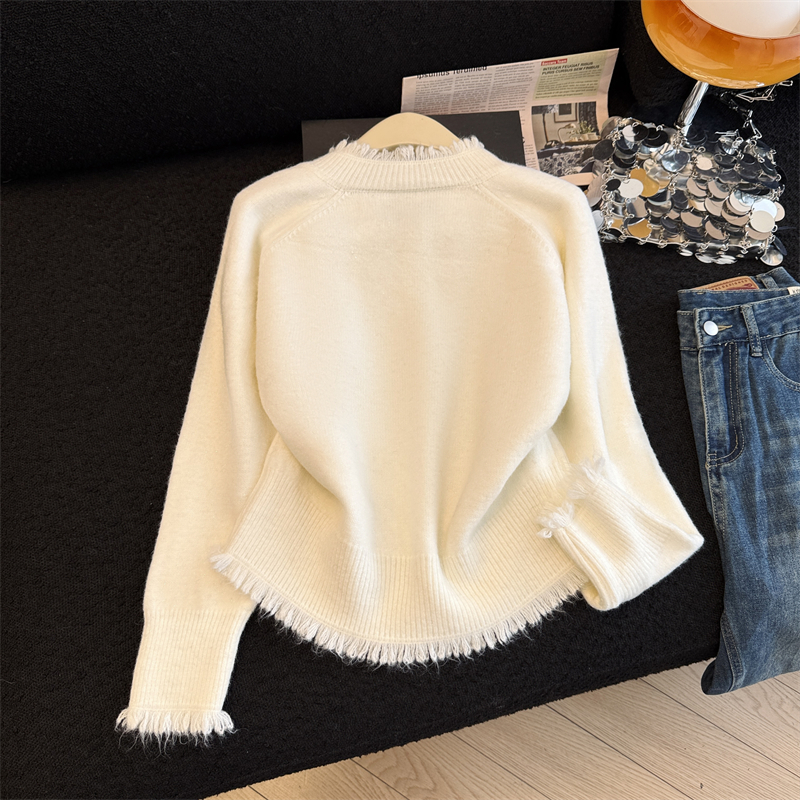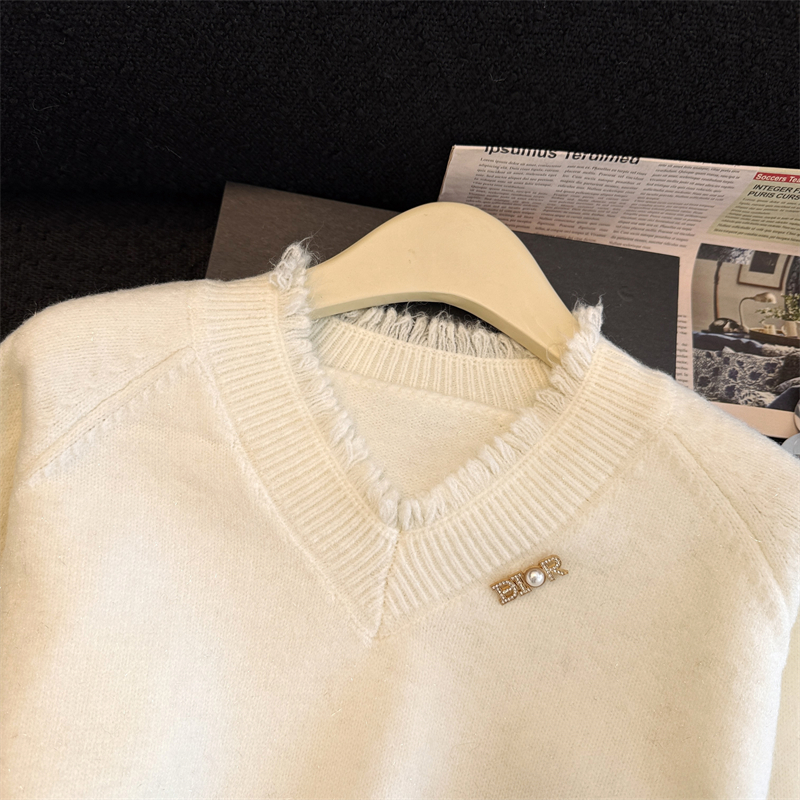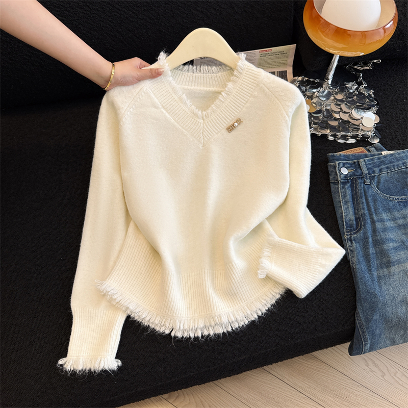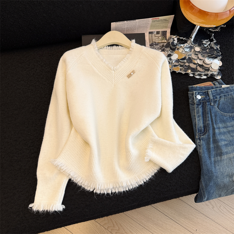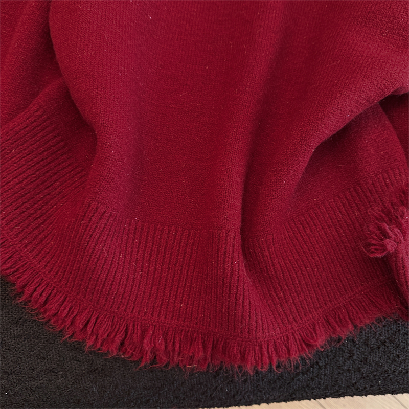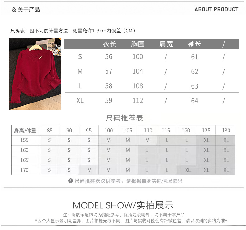 实拍新年红亮丝流苏设计感V领毛衣2026新款高级甜美加厚针织上衣
