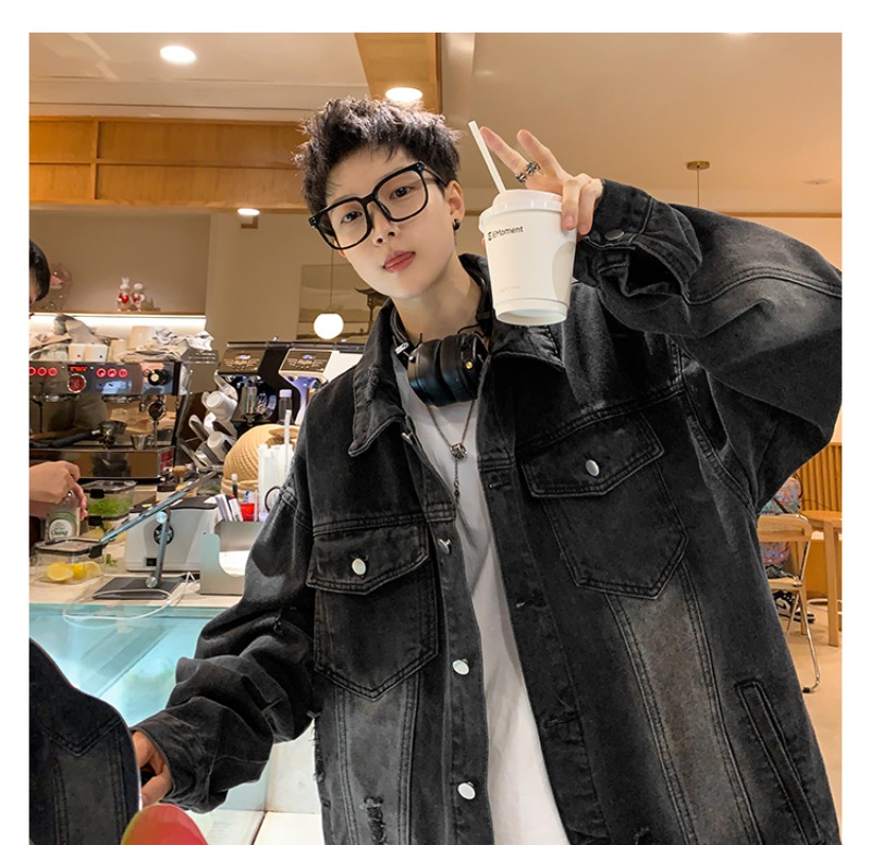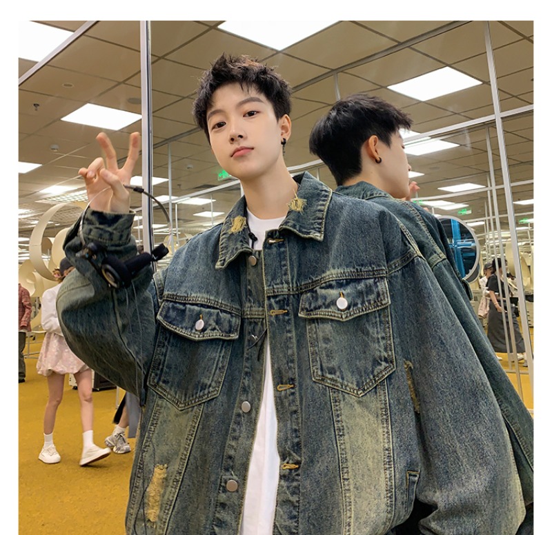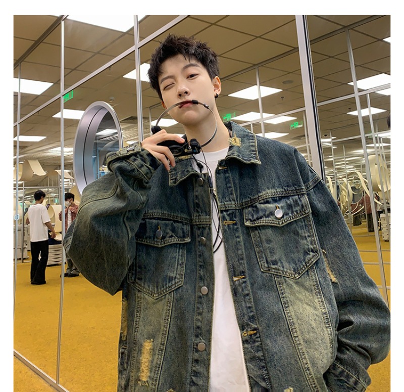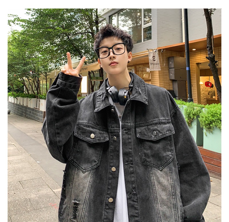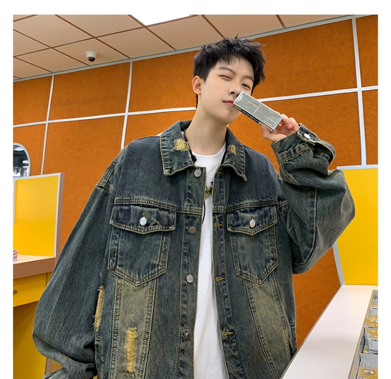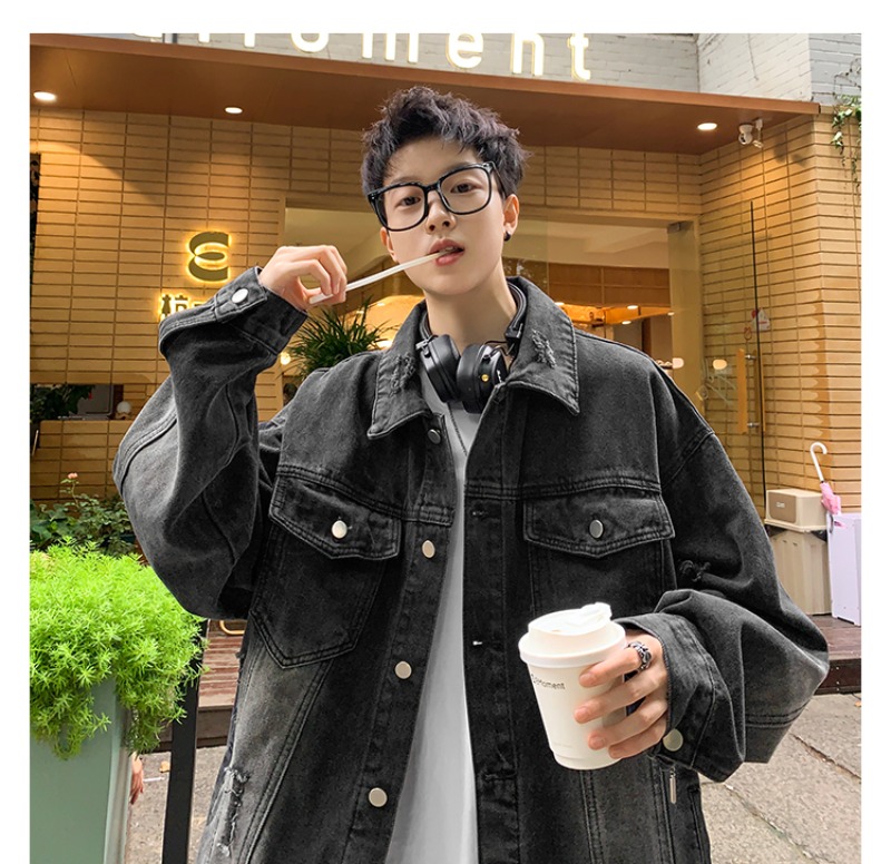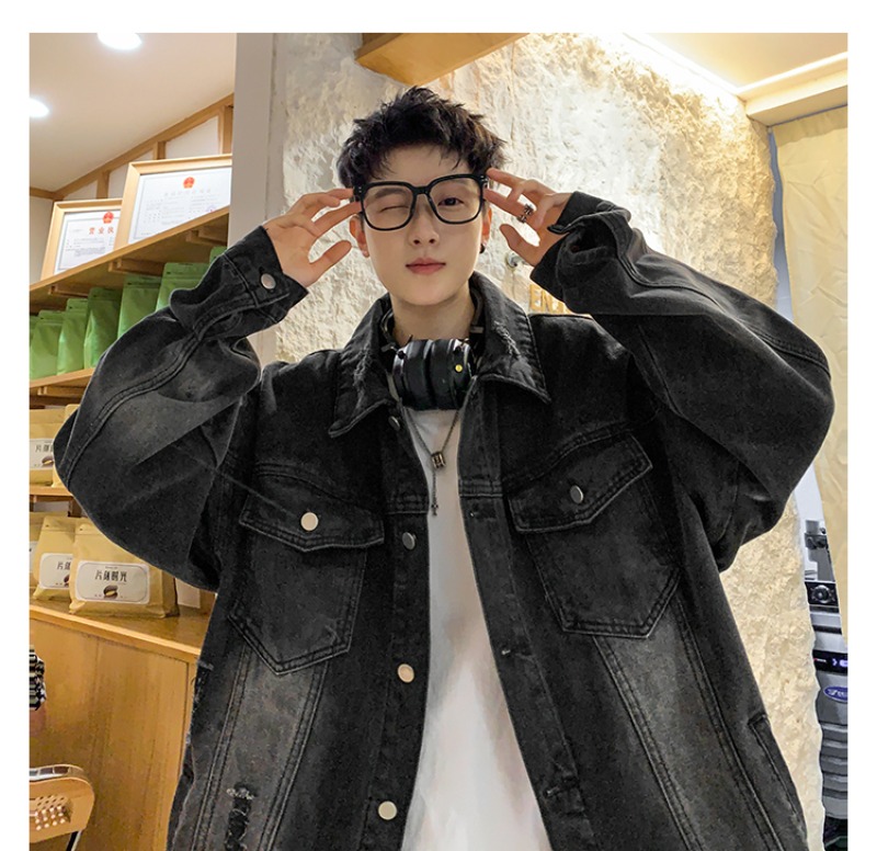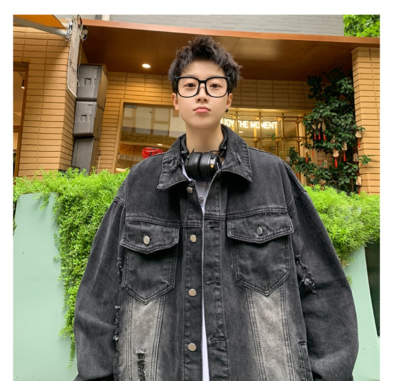 水洗做旧破洞夹克外套秋季宽松百搭牛仔外套男女款潮