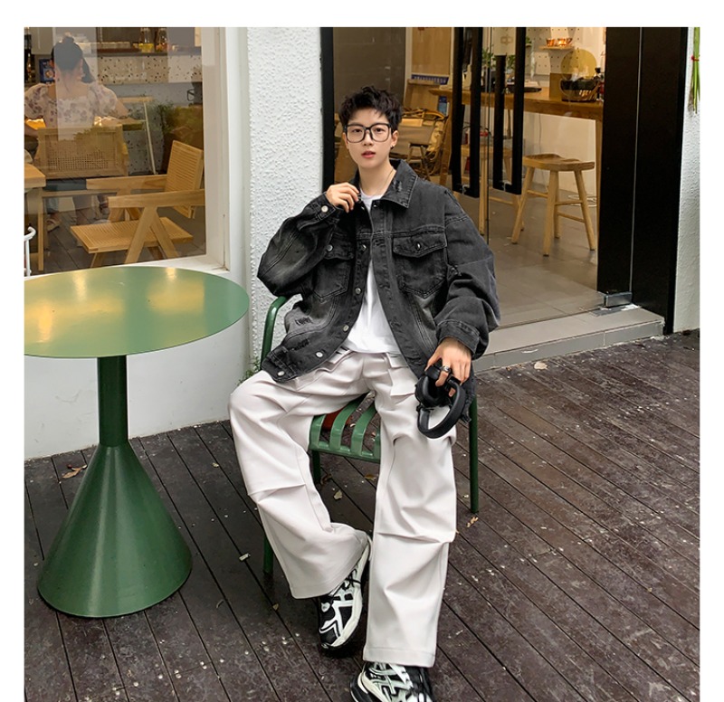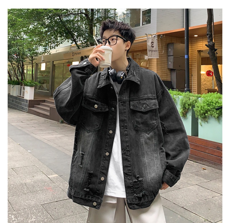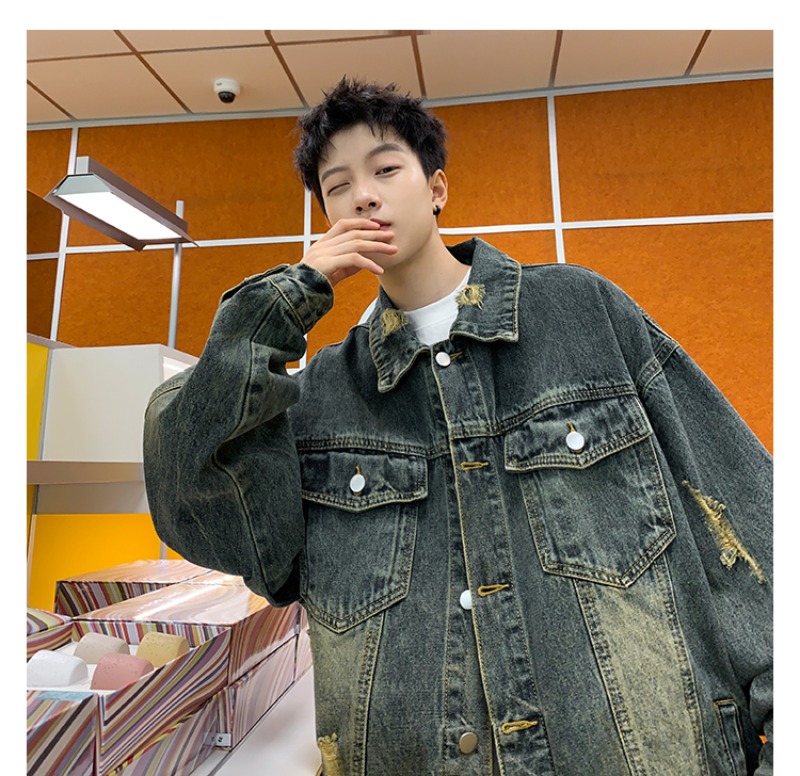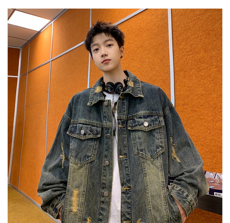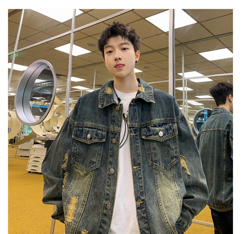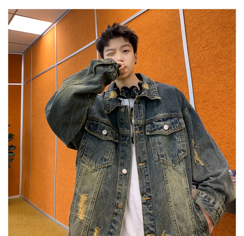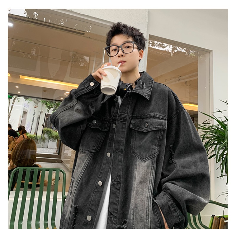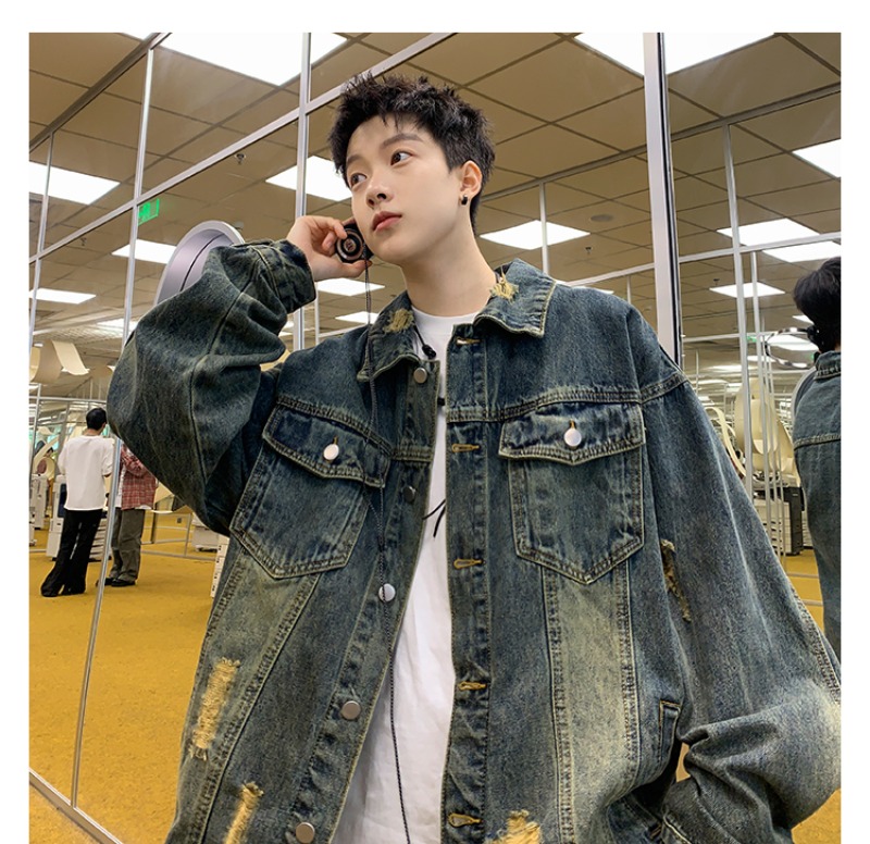 水洗做旧破洞夹克外套秋季宽松百搭牛仔外套男女款潮