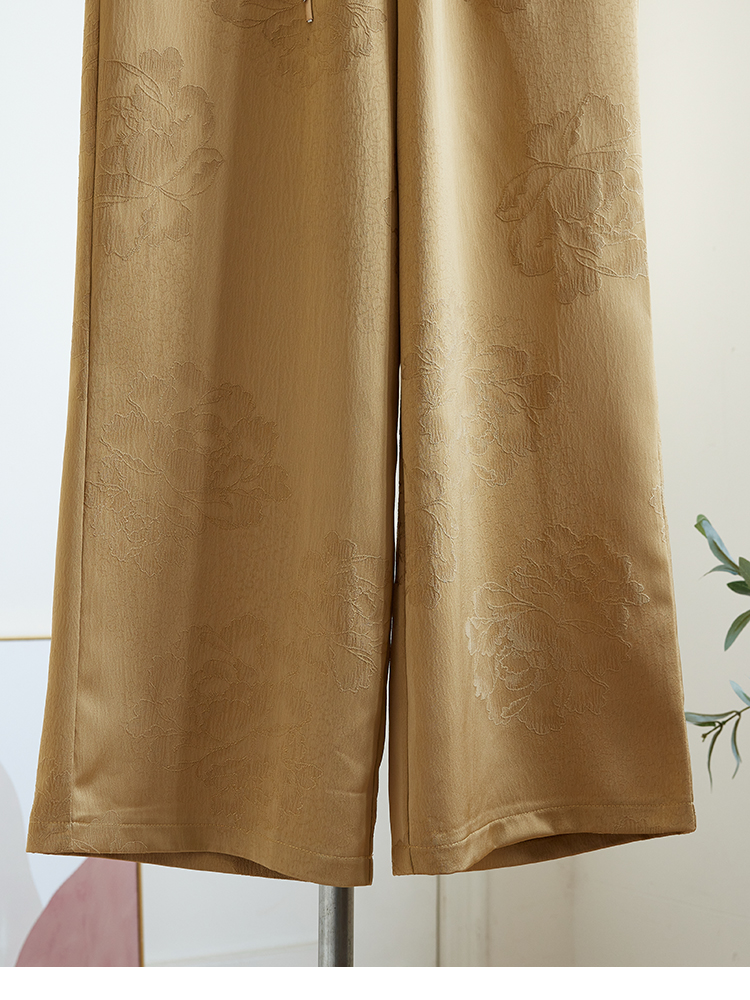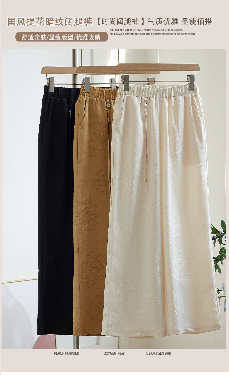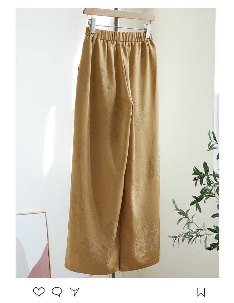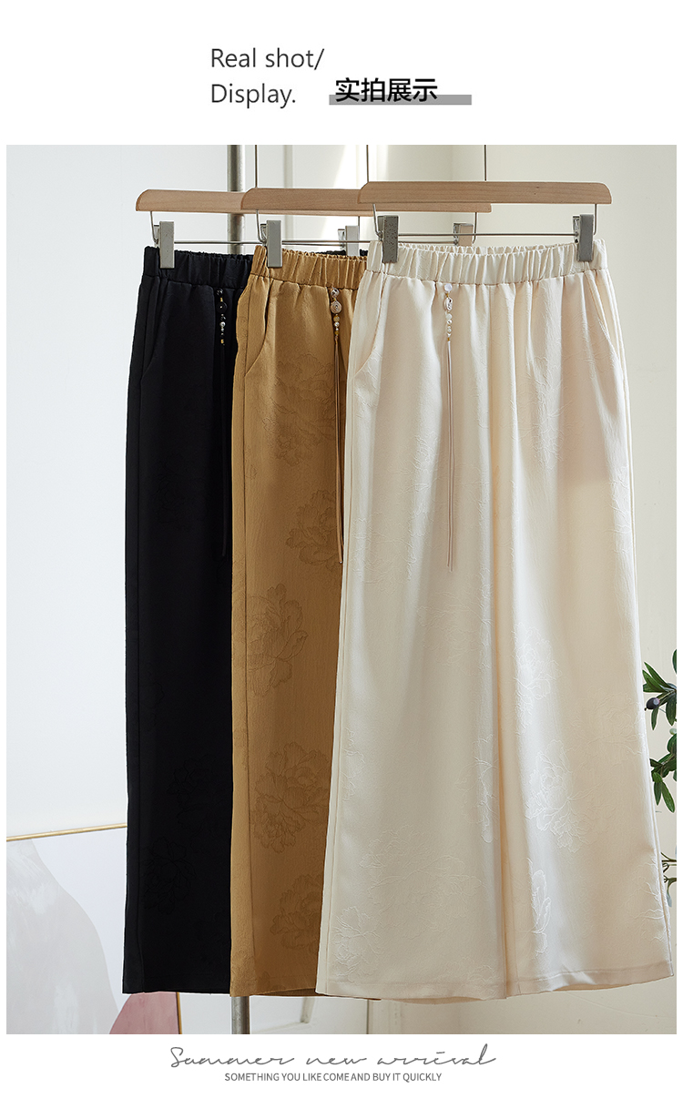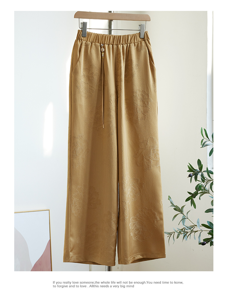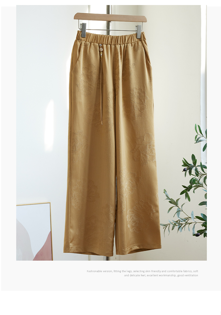 2026 봄/여름 신상 중국풍 데일리 여성용 플로이 루즈핏 와이드 레그 새틴 자카드 팬츠