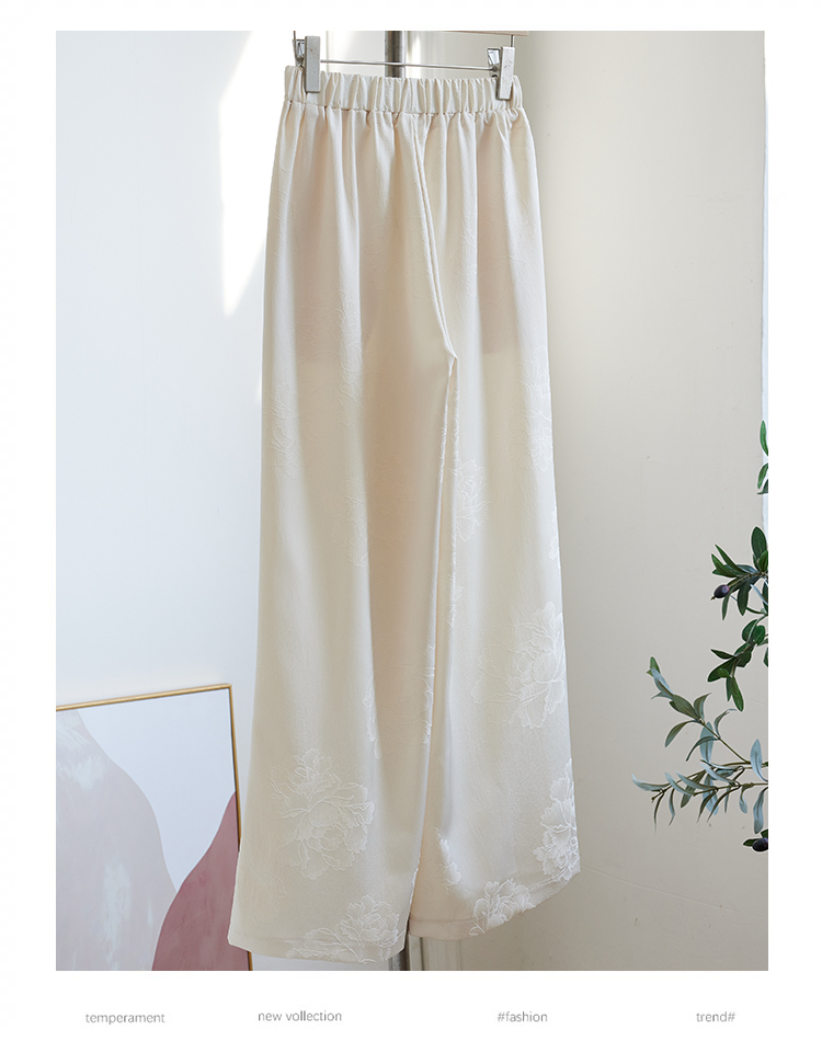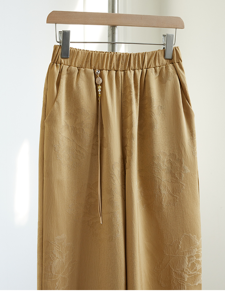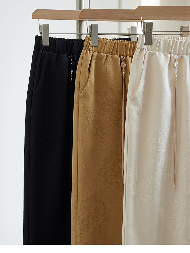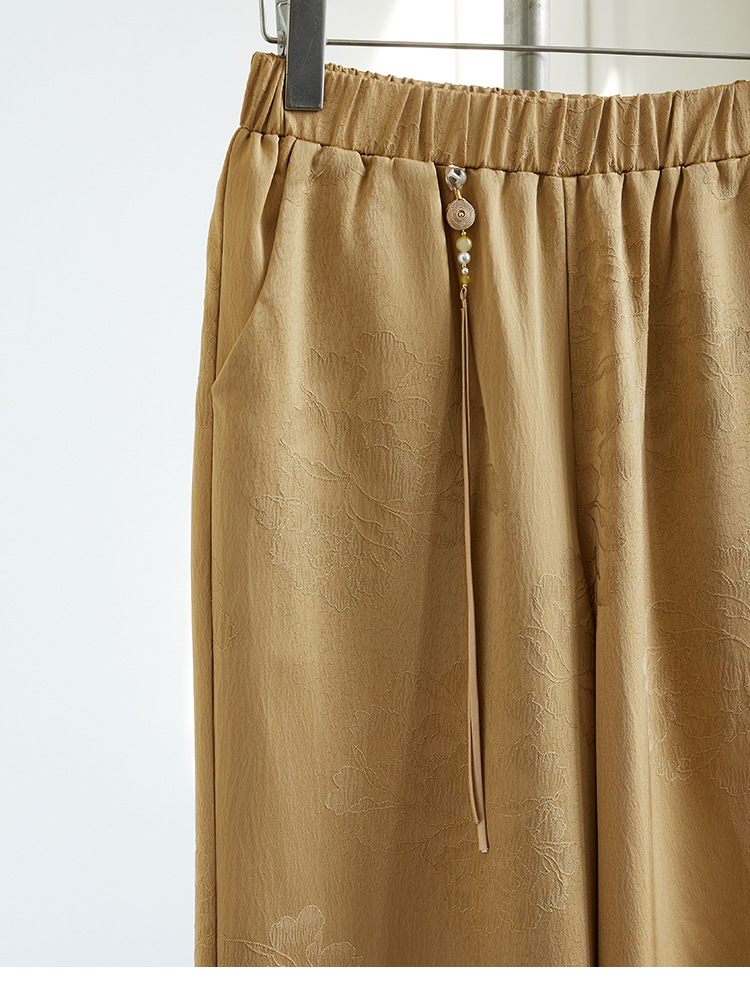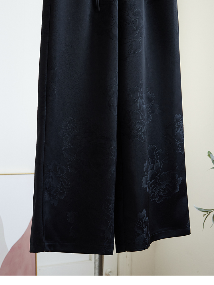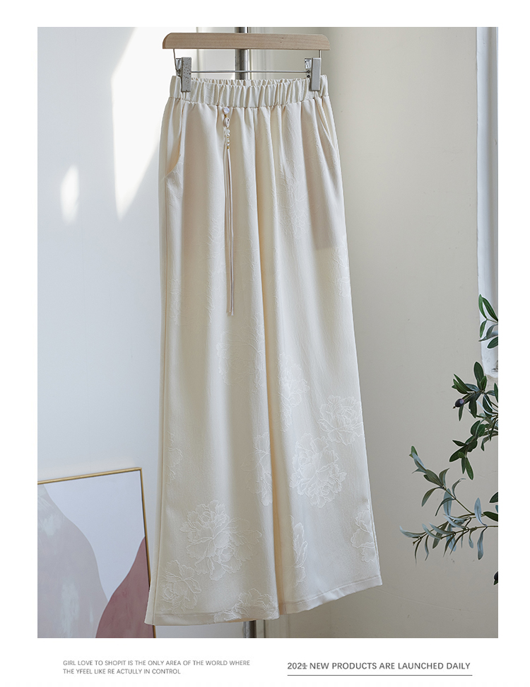 2026 봄/여름 신상 중국풍 데일리 여성용 플로이 루즈핏 와이드 레그 새틴 자카드 팬츠