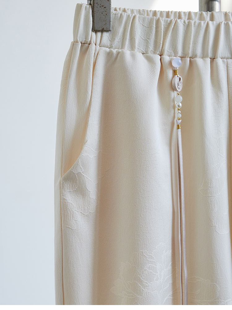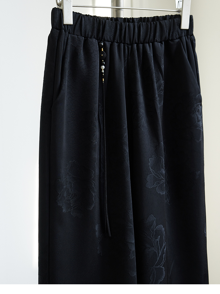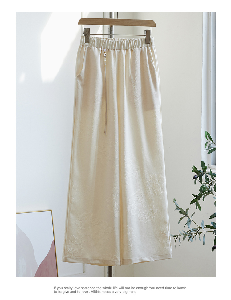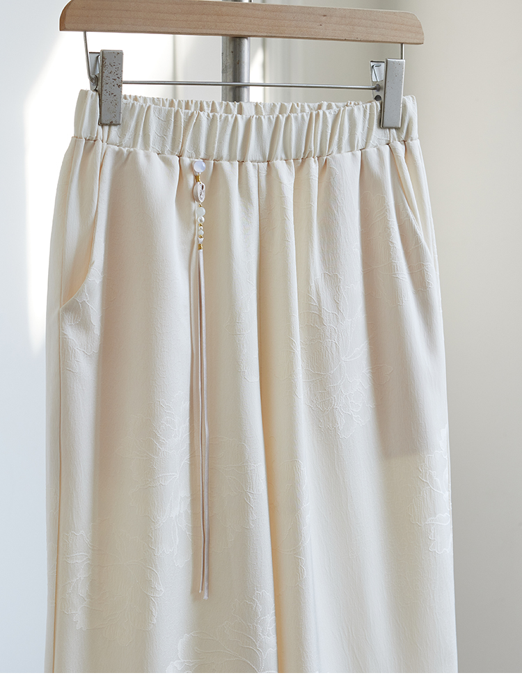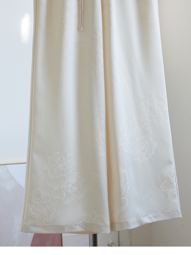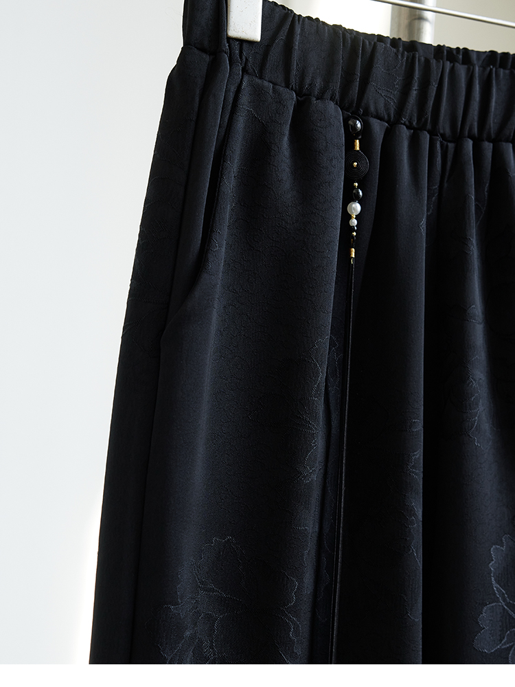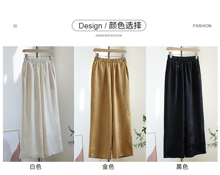 2026 봄/여름 신상 중국풍 데일리 여성용 플로이 루즈핏 와이드 레그 새틴 자카드 팬츠