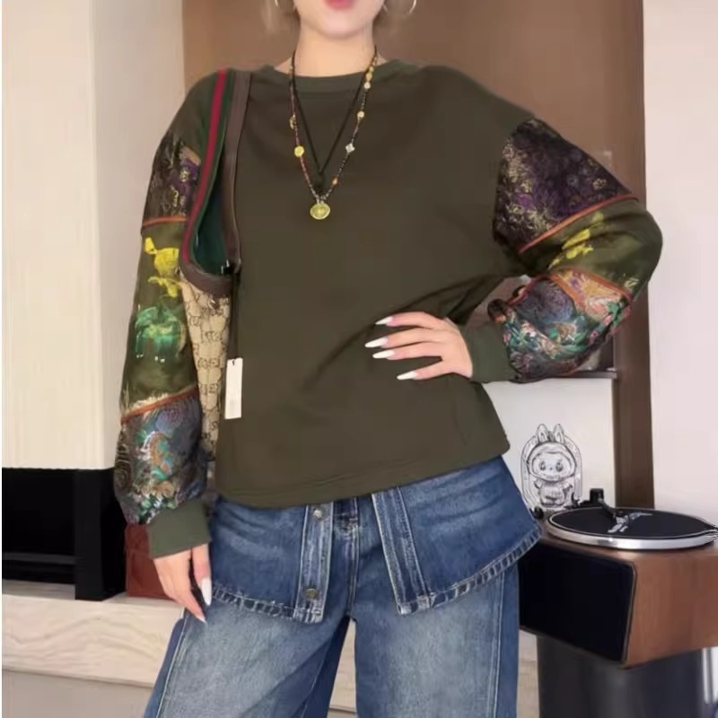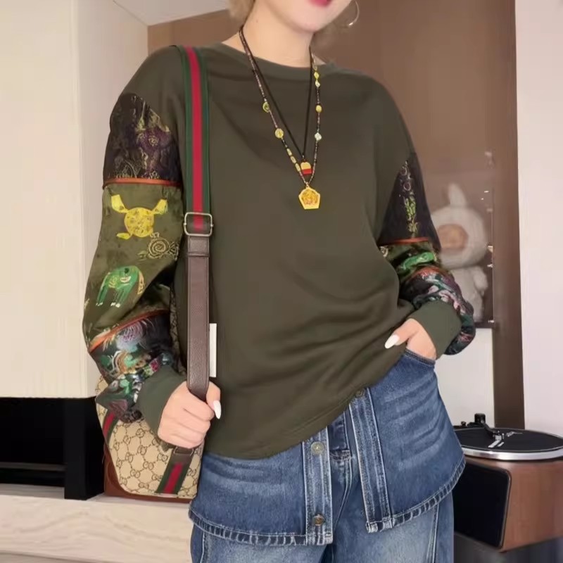 2026春季新款复古时尚休闲百搭印花卫衣洋气宽松显瘦圆领长袖上衣