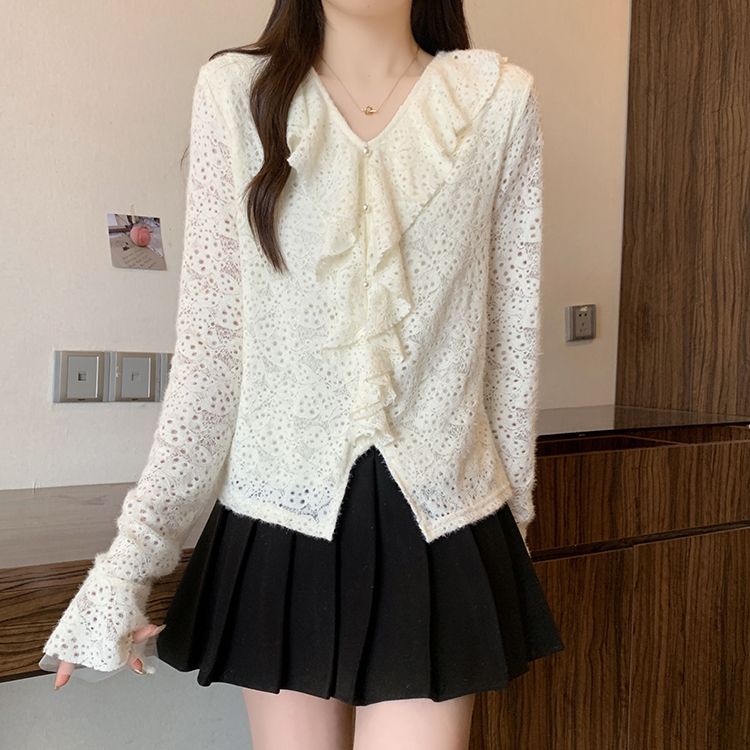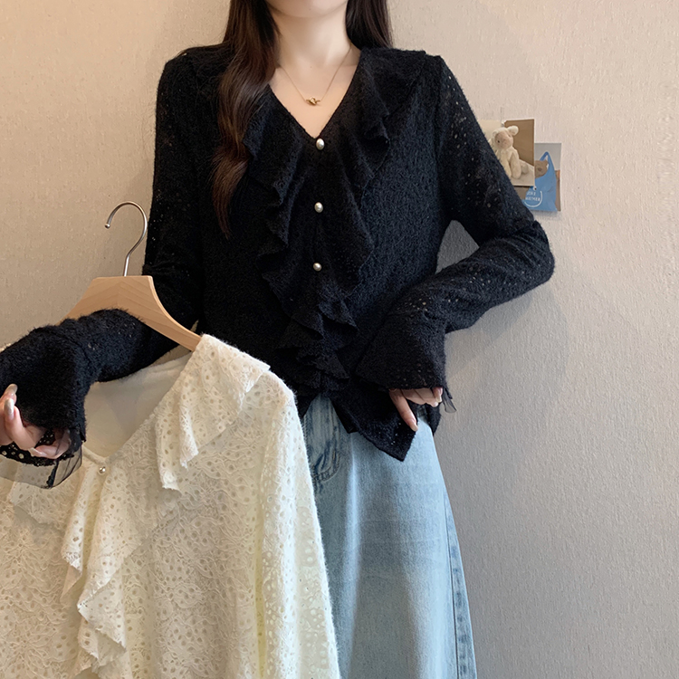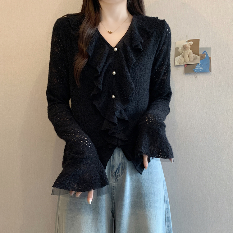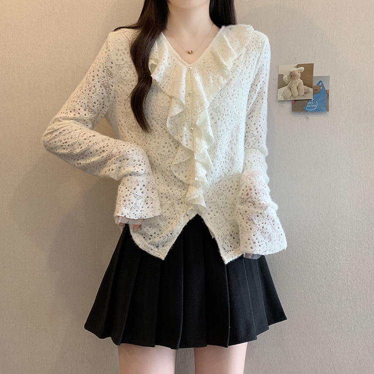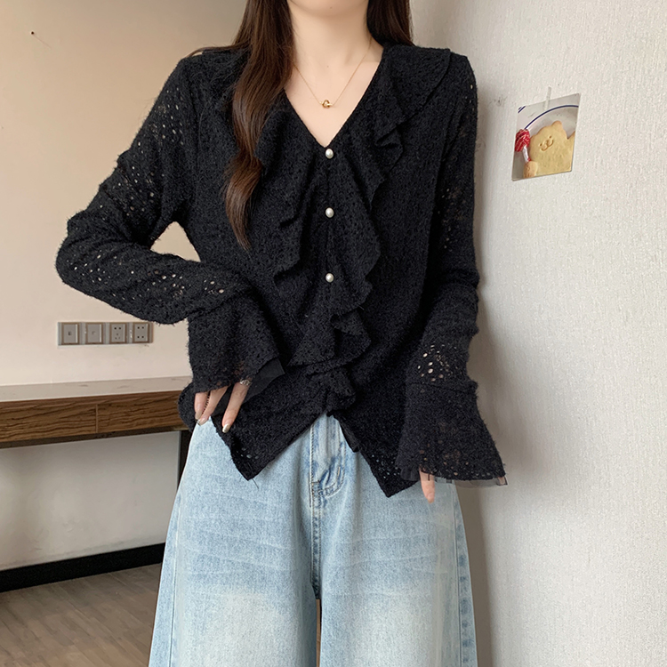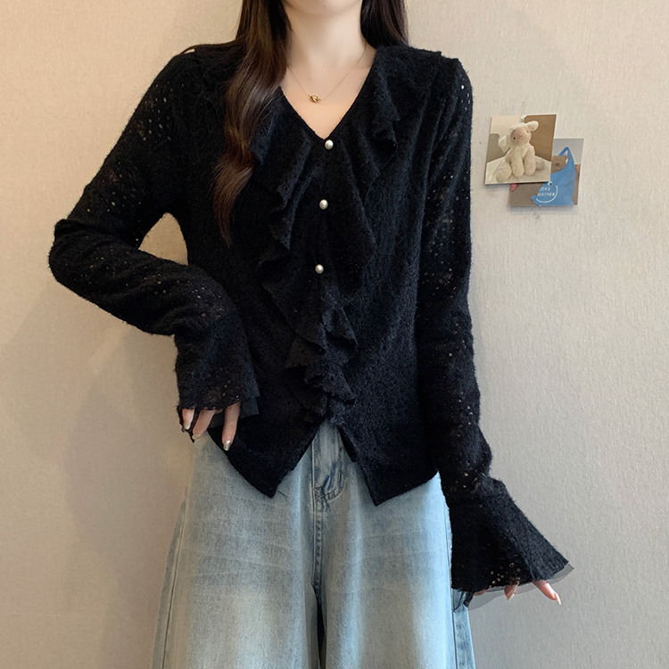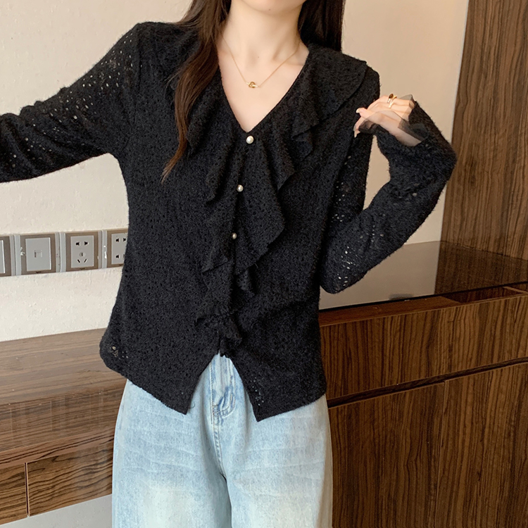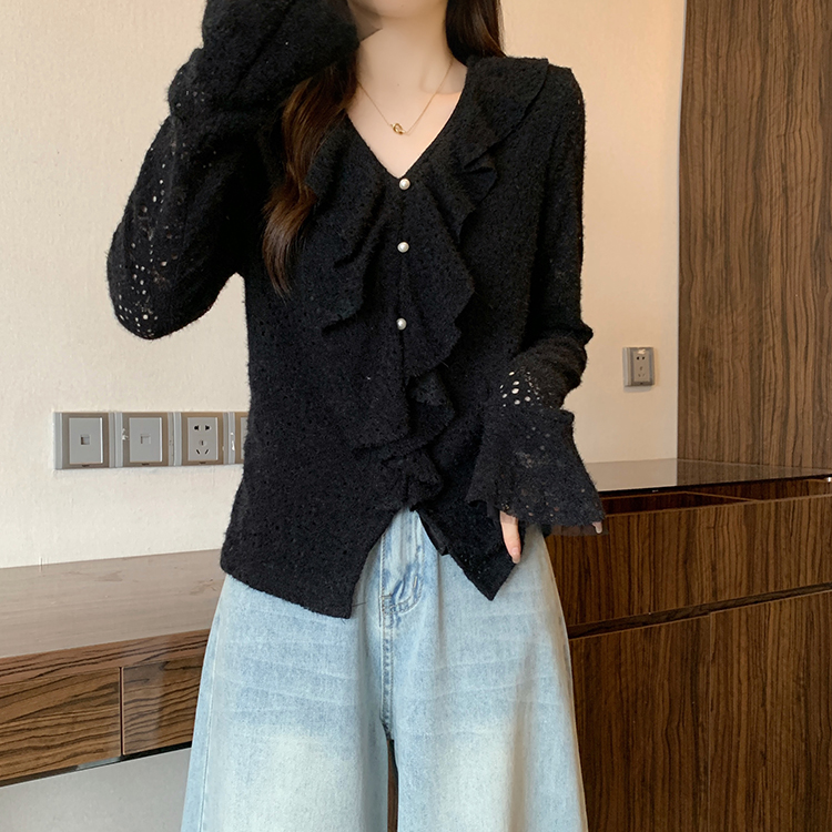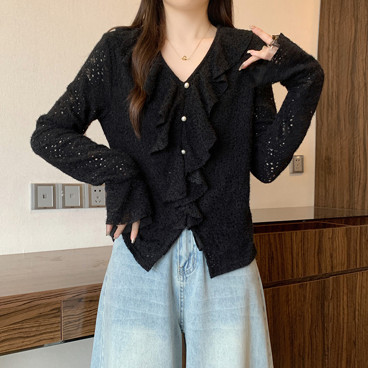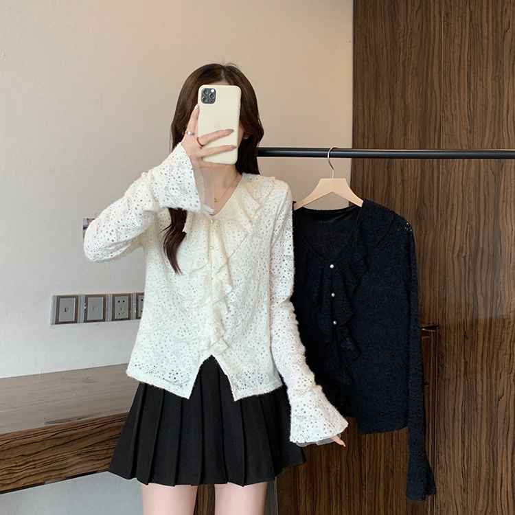 2026년 봄 신상 플러스 사이즈 여성용 패셔너블한 러플 장식 플리스 안감 두툼한 상의 실제 사진