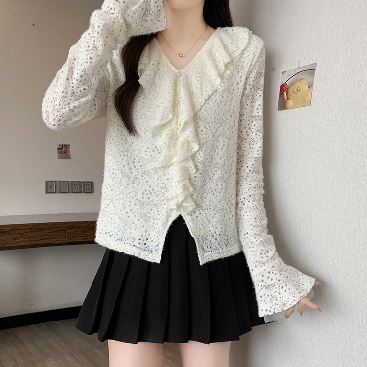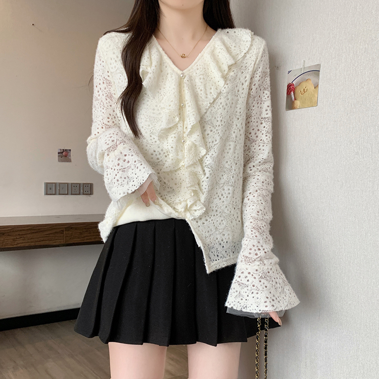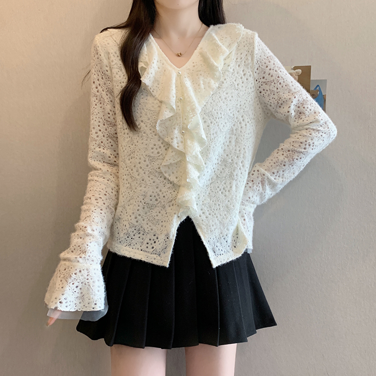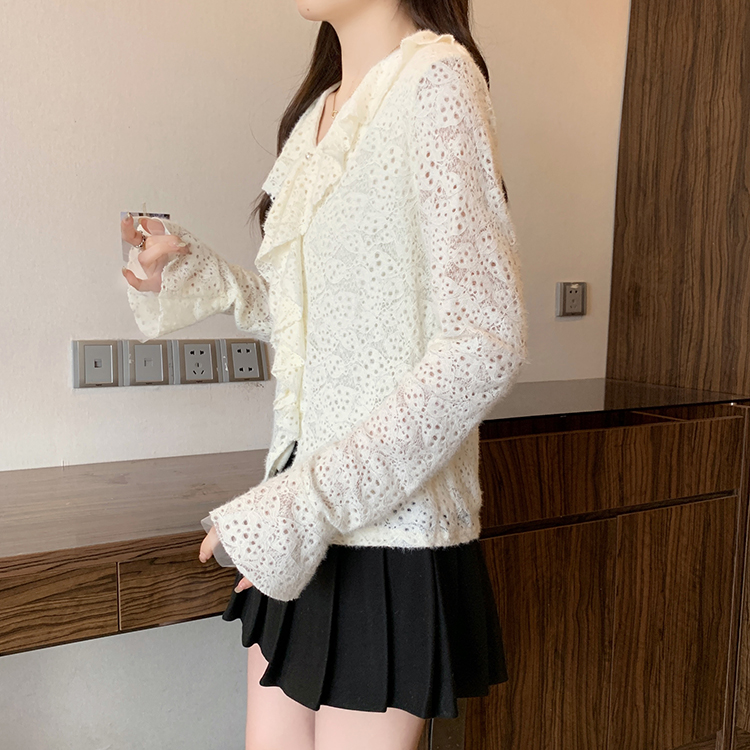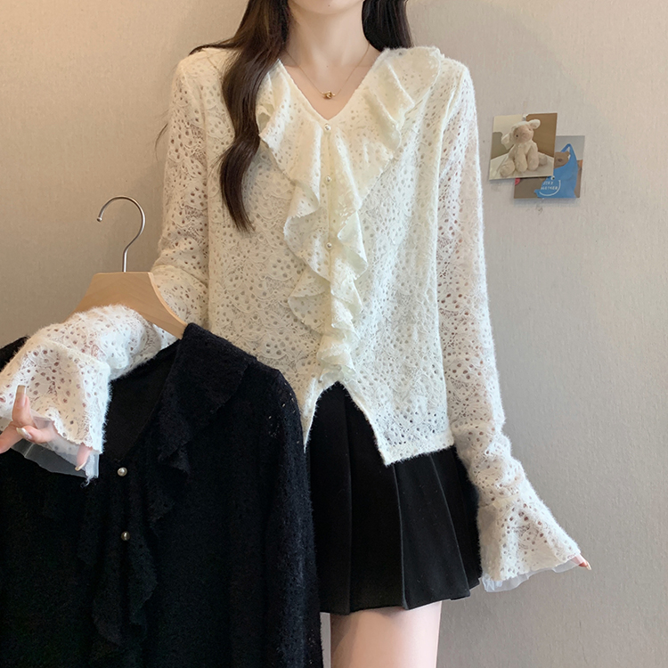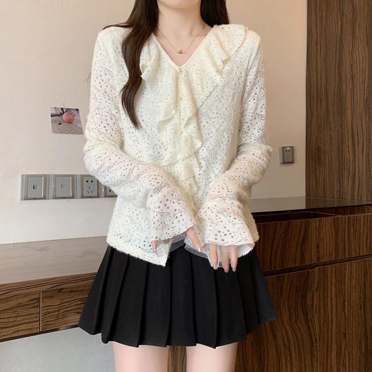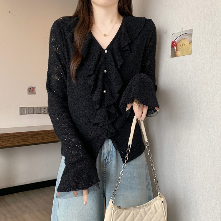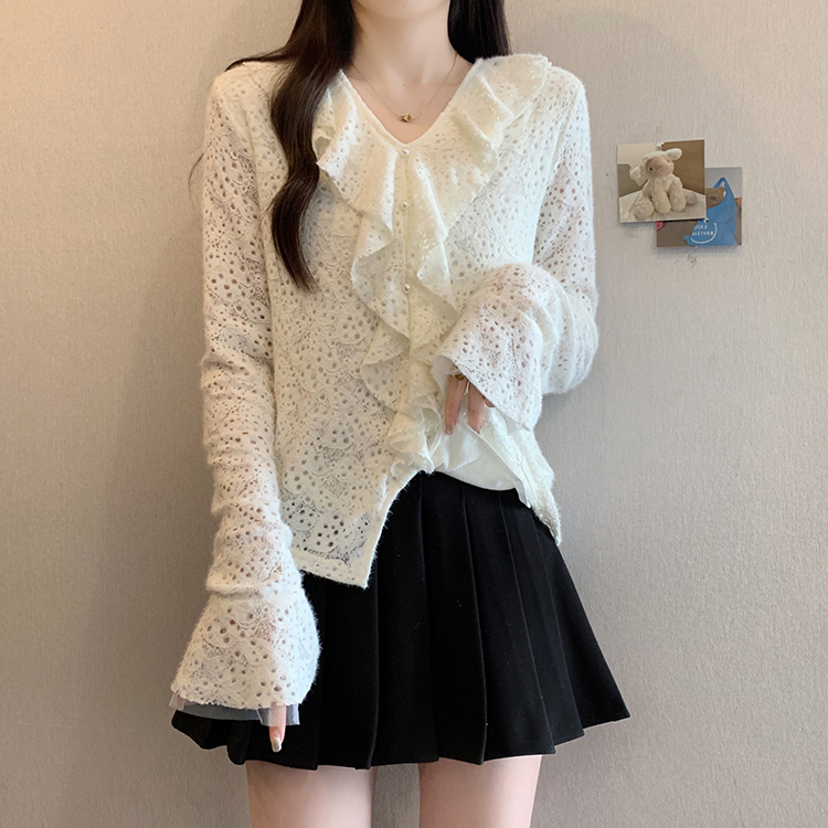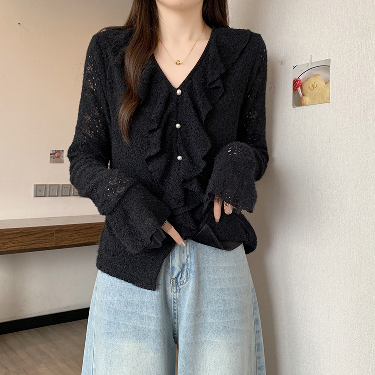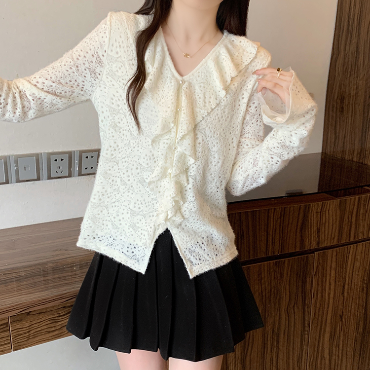 2026년 봄 신상 플러스 사이즈 여성용 패셔너블한 러플 장식 플리스 안감 두툼한 상의 실제 사진