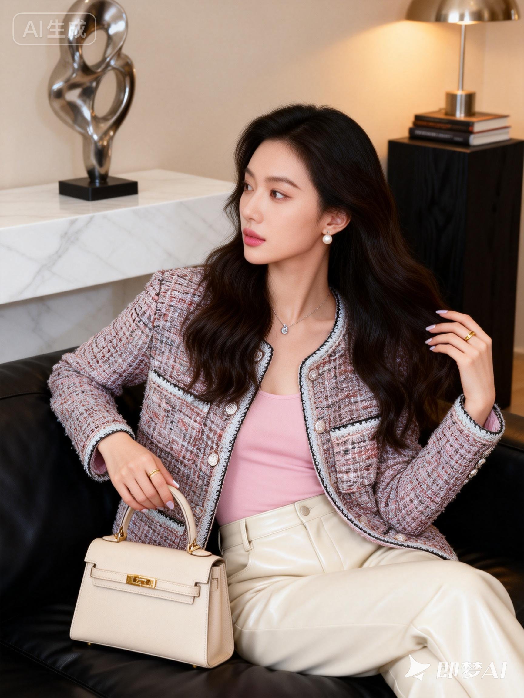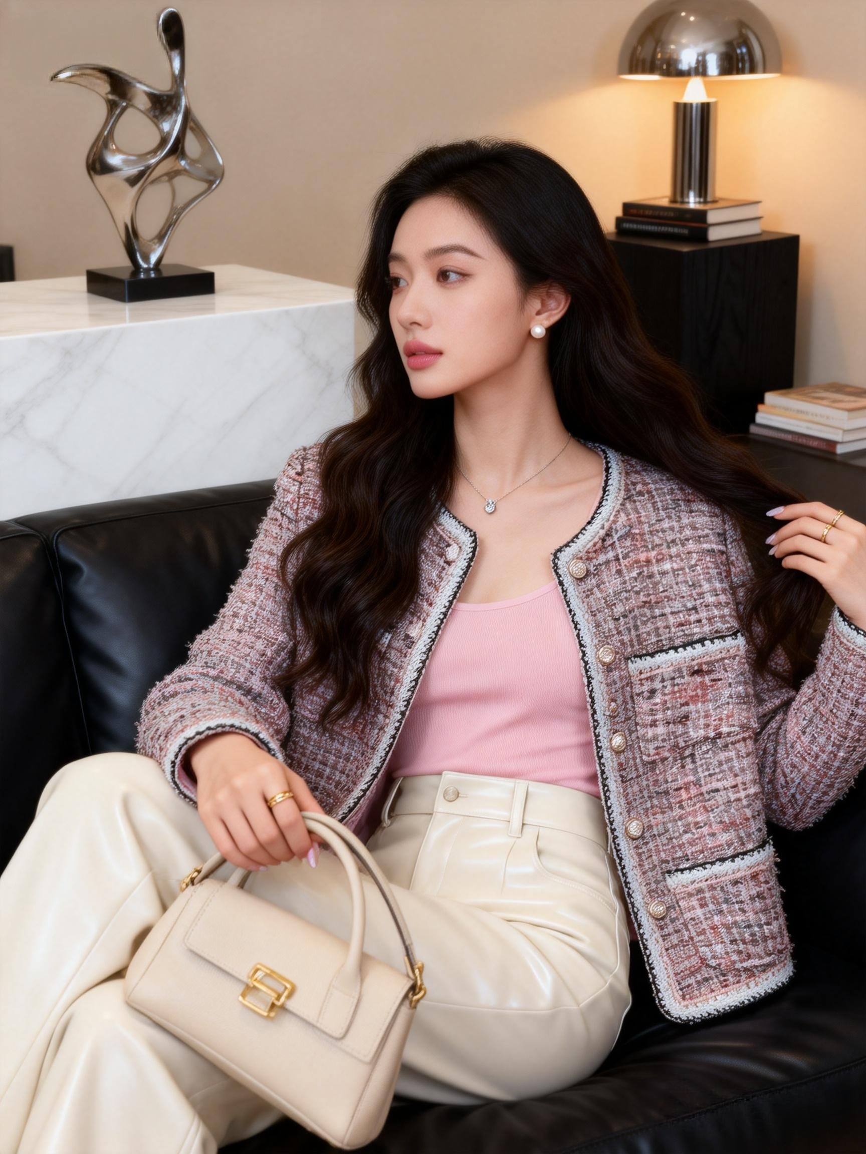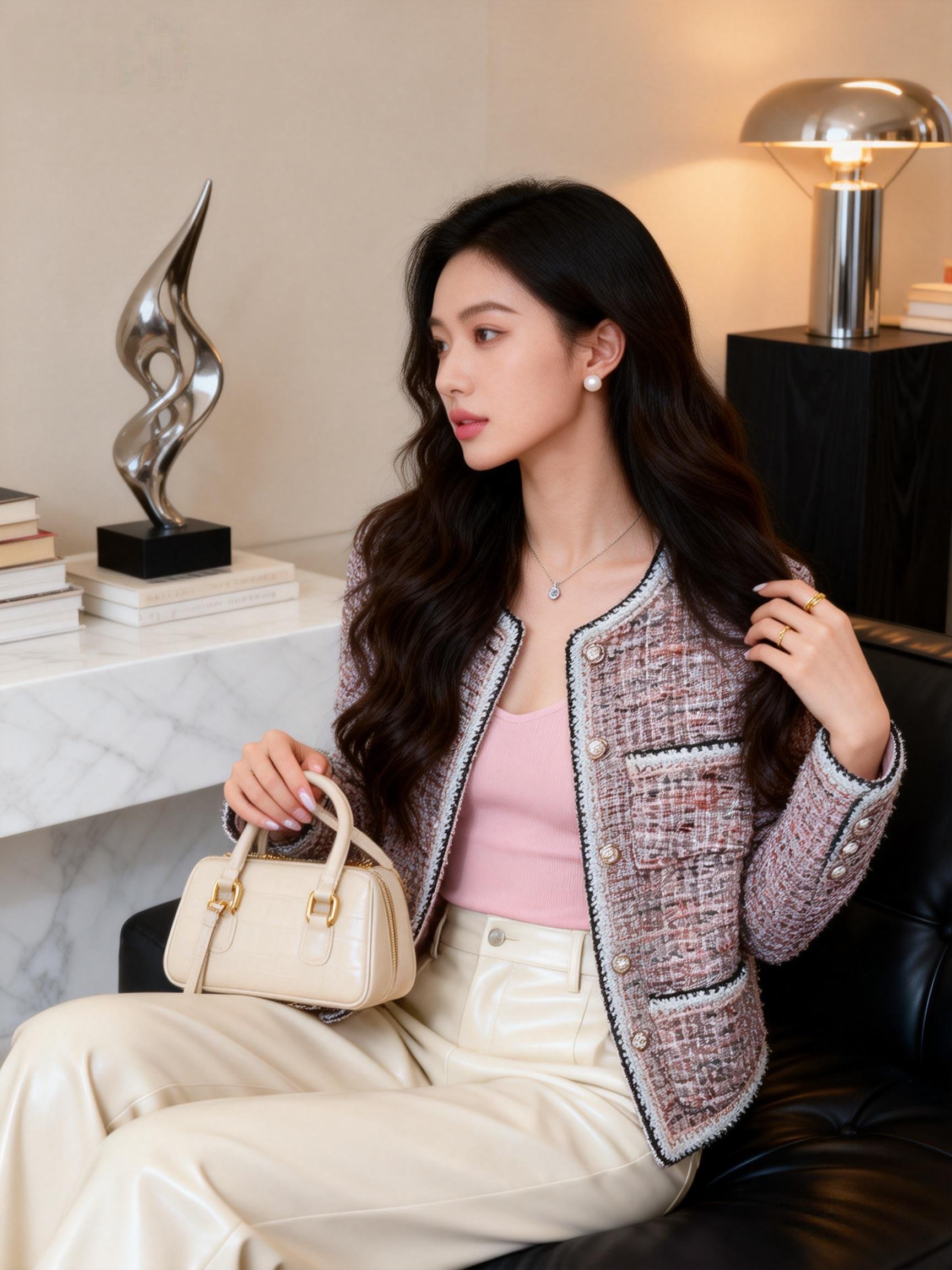 2026년 봄 신상 프랑스 스타일 여성용 미니 재킷의 실제 사진입니다. 아담한 체형의 여성에게 идеально 어울리며, 세련되고 우아한 매력을 발산합니다.