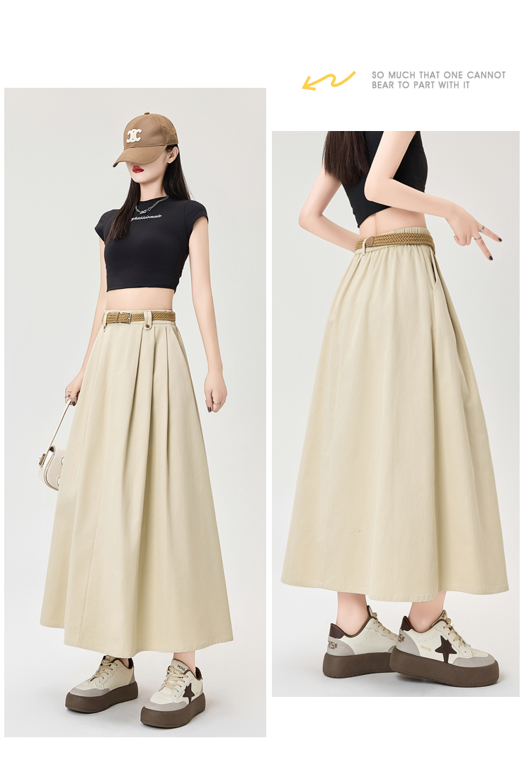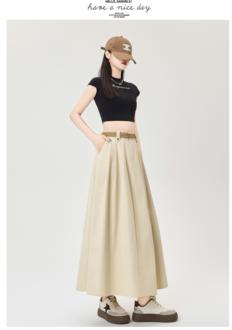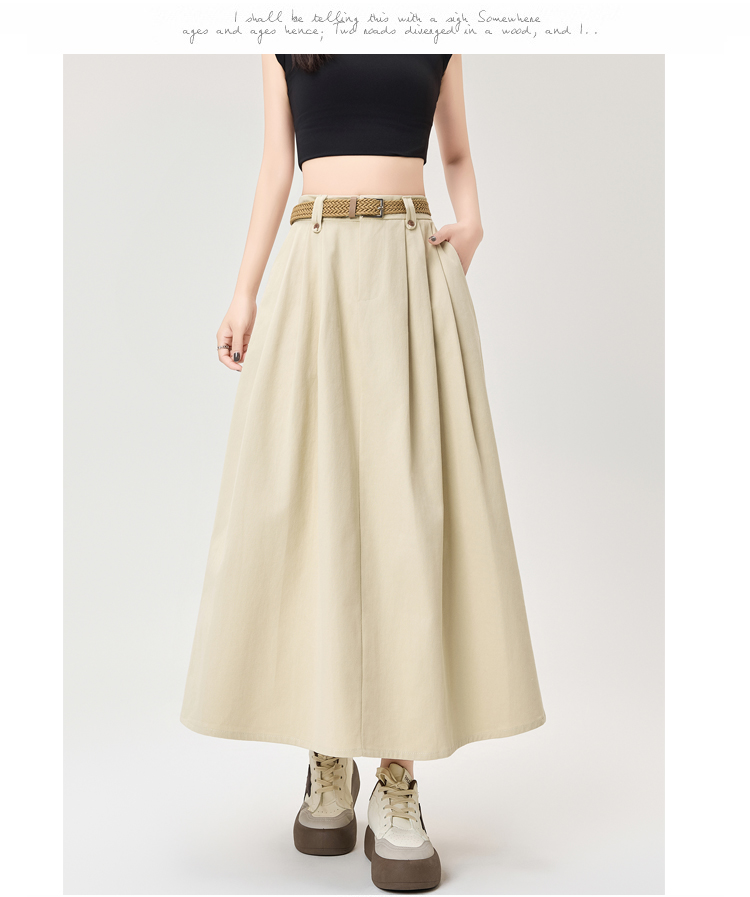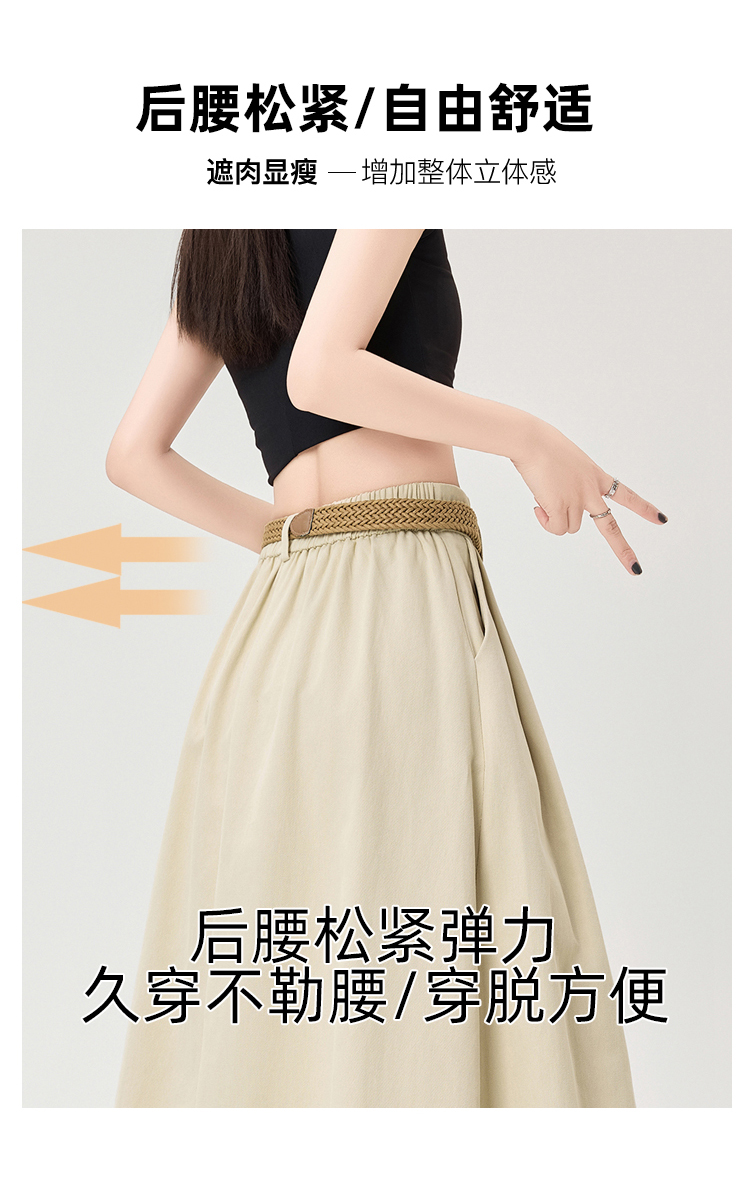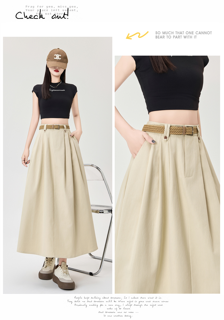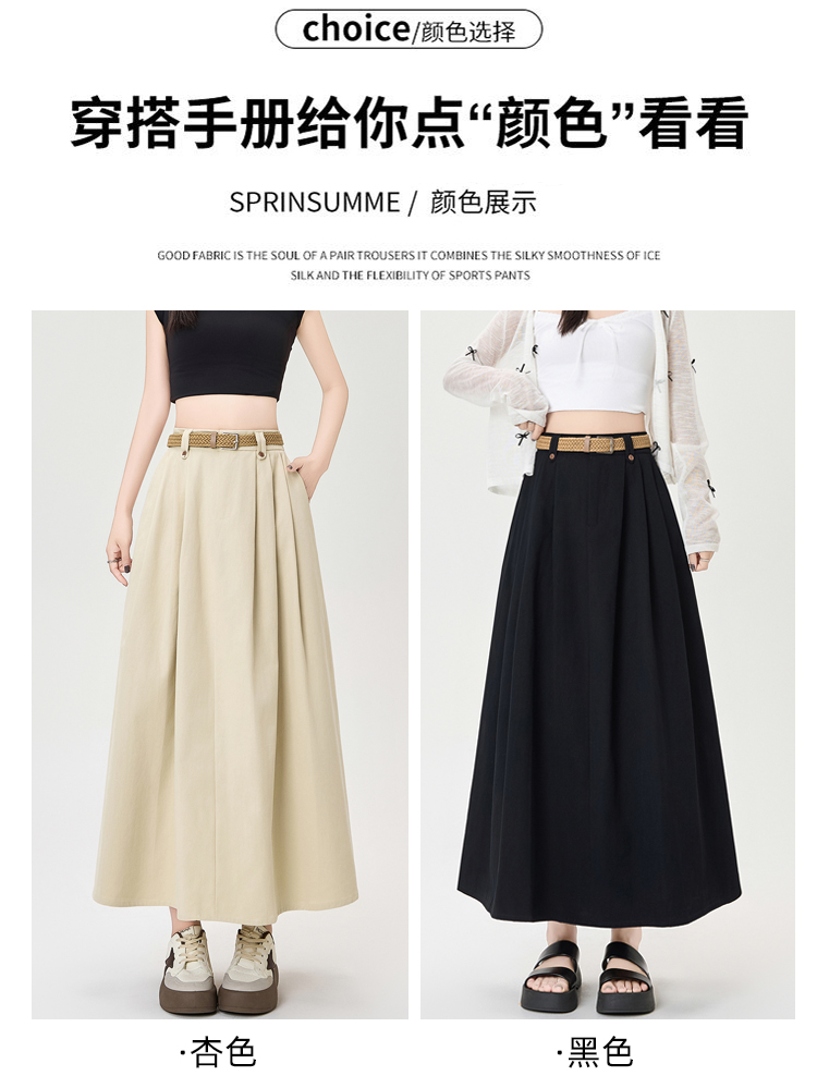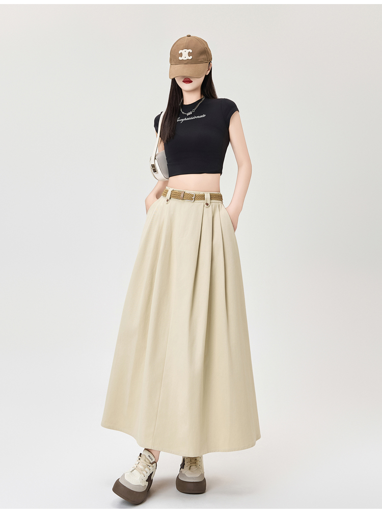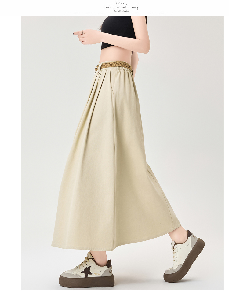 살구색 워싱 코튼 플리츠 미디 스커트, 여성용 2026 봄/여름 신상 스타일, 하이웨이스트, 슬림핏, A라인, 플레어 스커트.