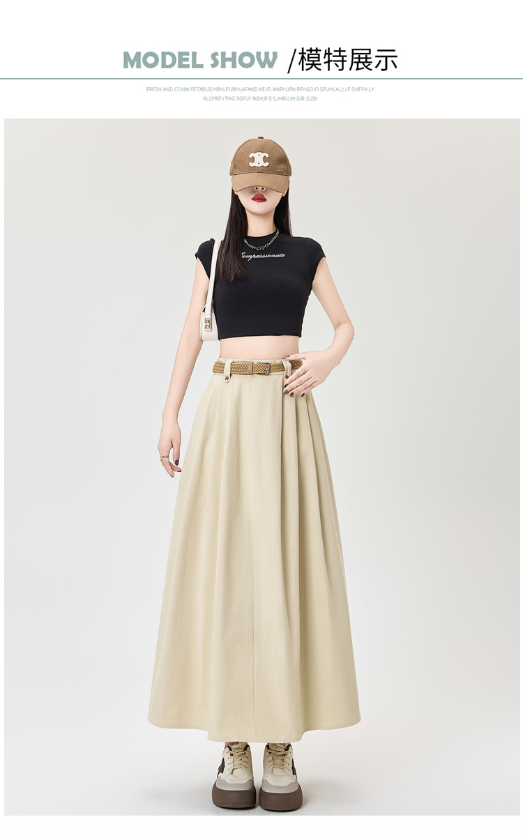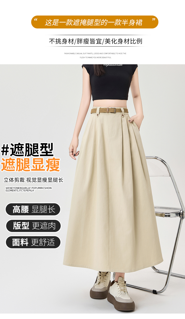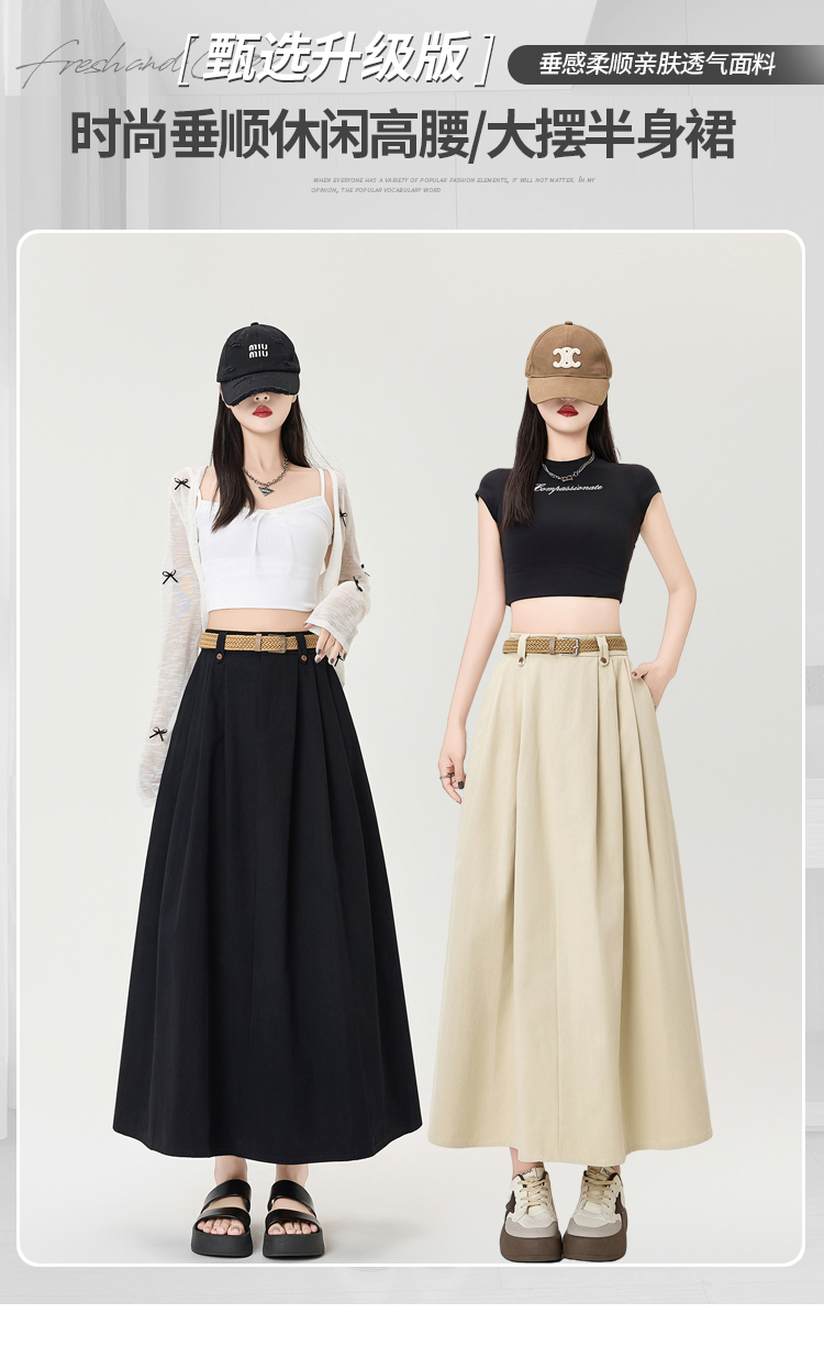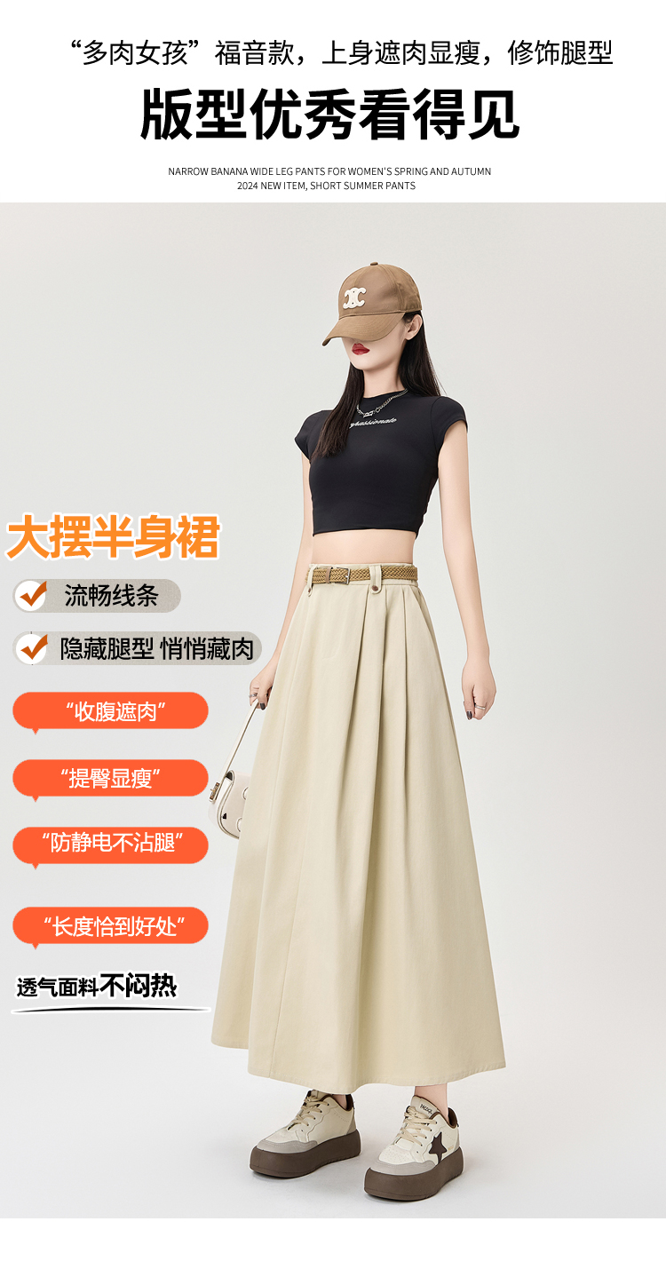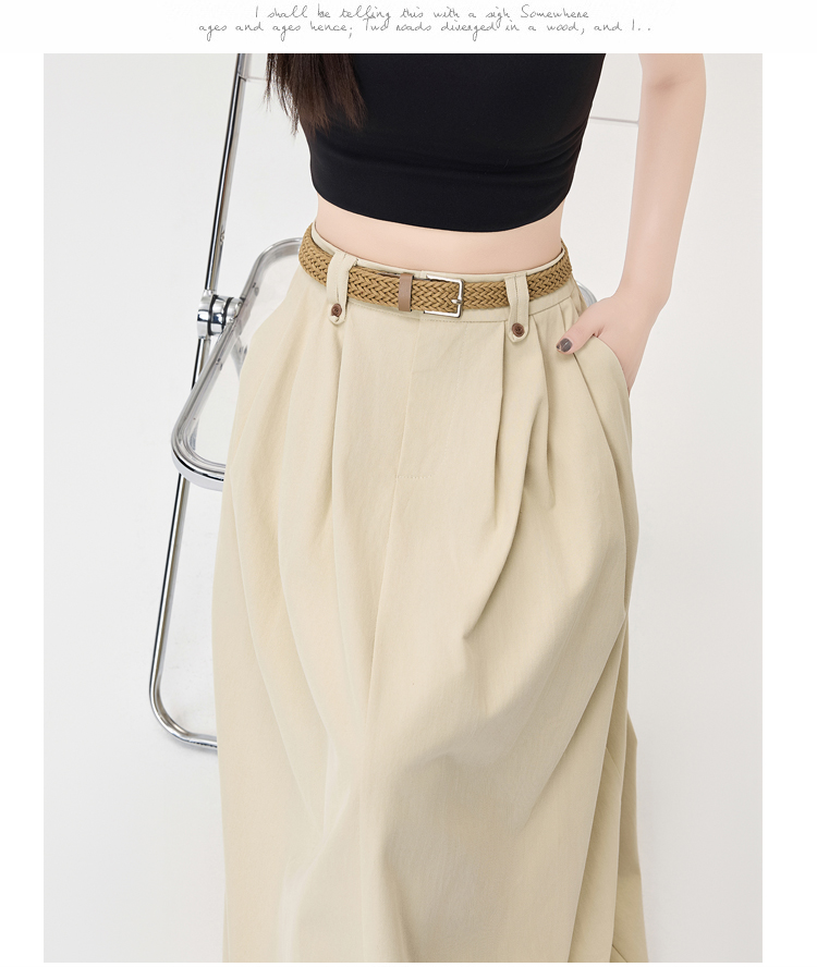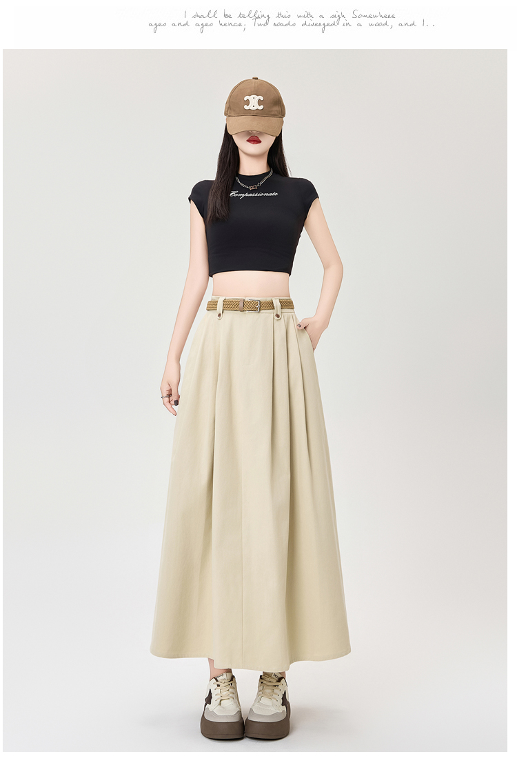 살구색 워싱 코튼 플리츠 미디 스커트, 여성용 2026 봄/여름 신상 스타일, 하이웨이스트, 슬림핏, A라인, 플레어 스커트.