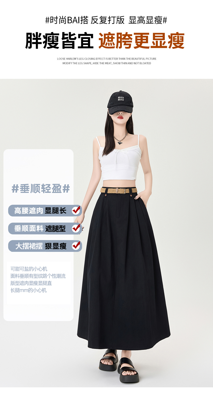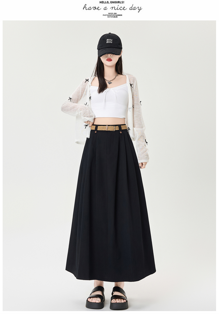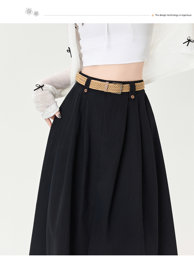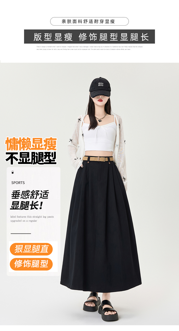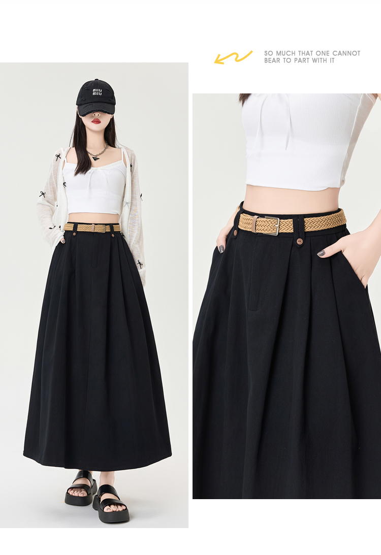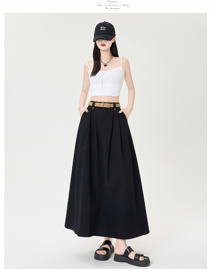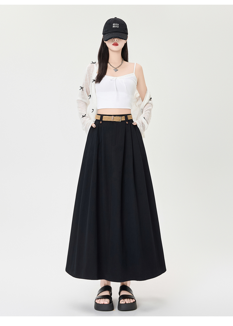 살구색 워싱 코튼 플리츠 미디 스커트, 여성용 2026 봄/여름 신상 스타일, 하이웨이스트, 슬림핏, A라인, 플레어 스커트.
