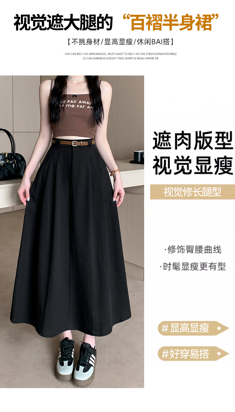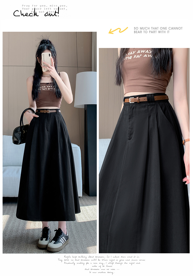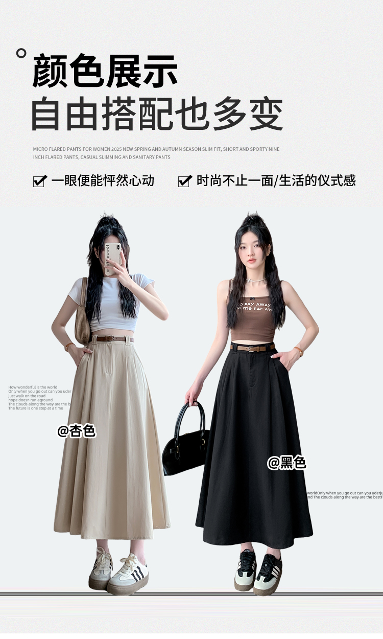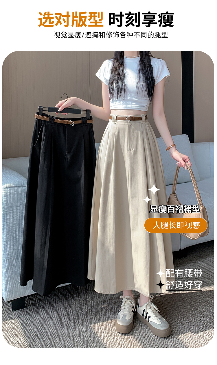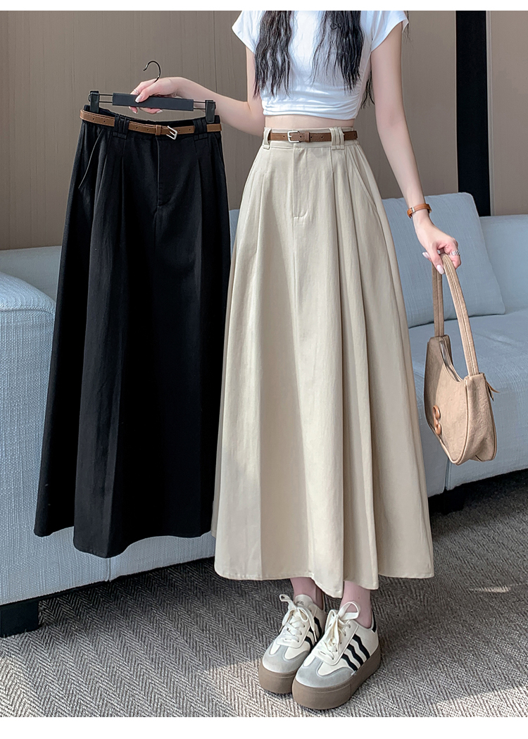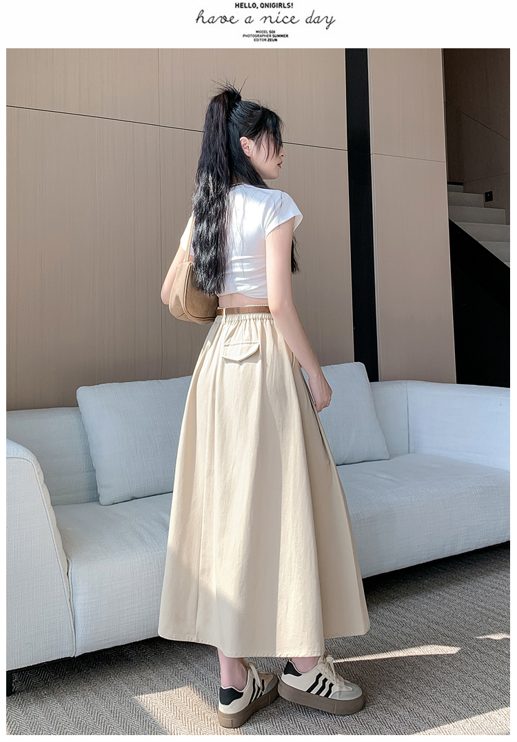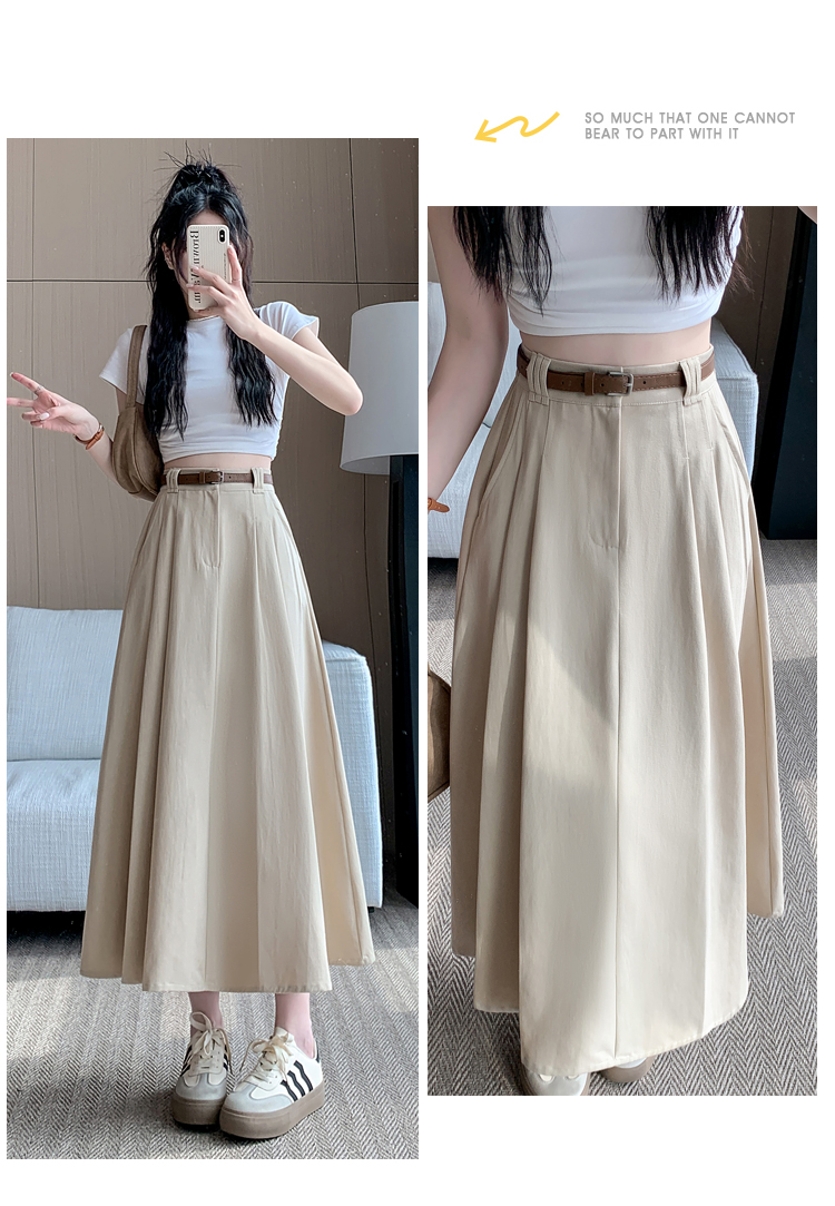 여성용 살구색 워싱 코튼 플리츠 미디 스커트, 2026년 봄/여름 신상, 엉덩이를 커버해주는 슬림한 A라인 미디 스커트로, 전체적으로 넓게 퍼지는 디자인입니다.