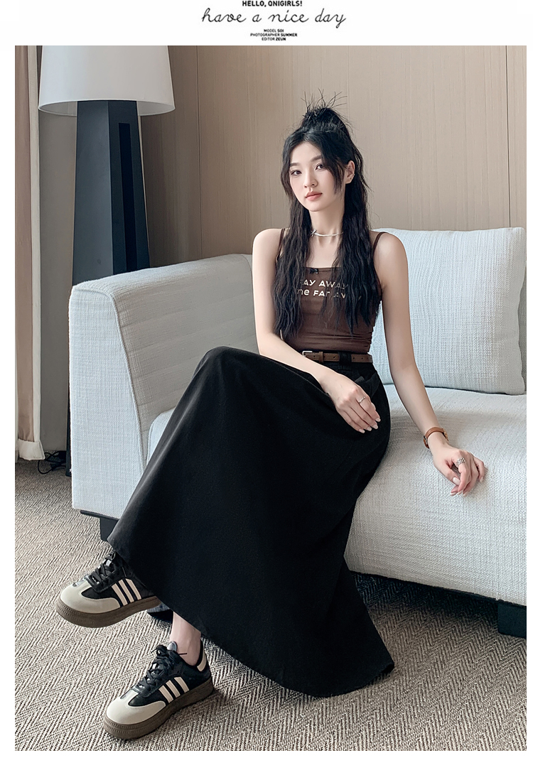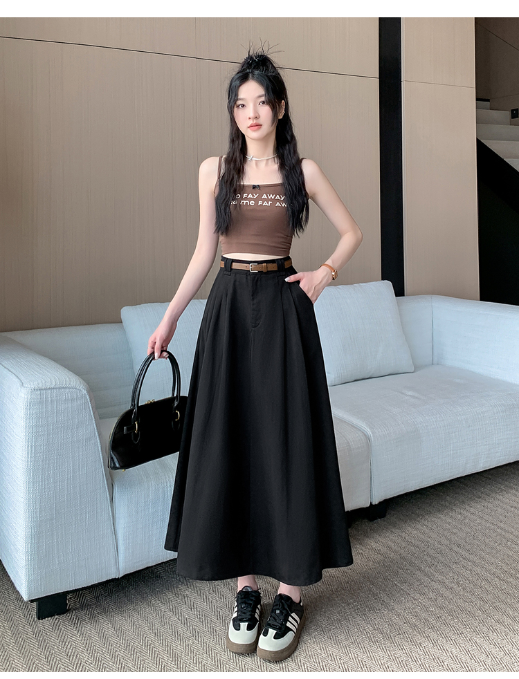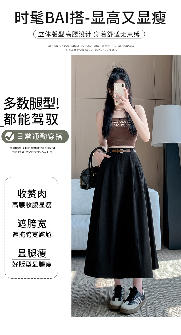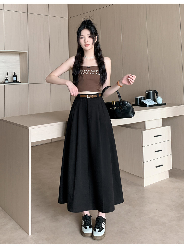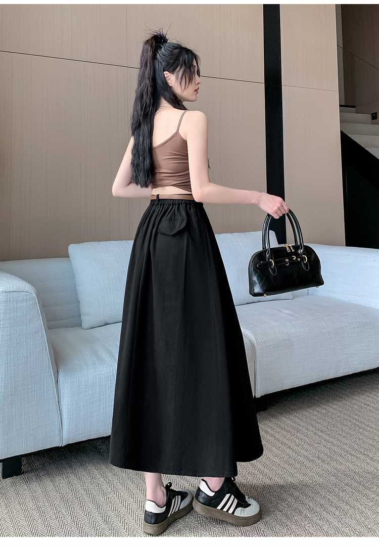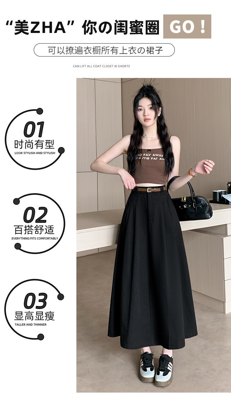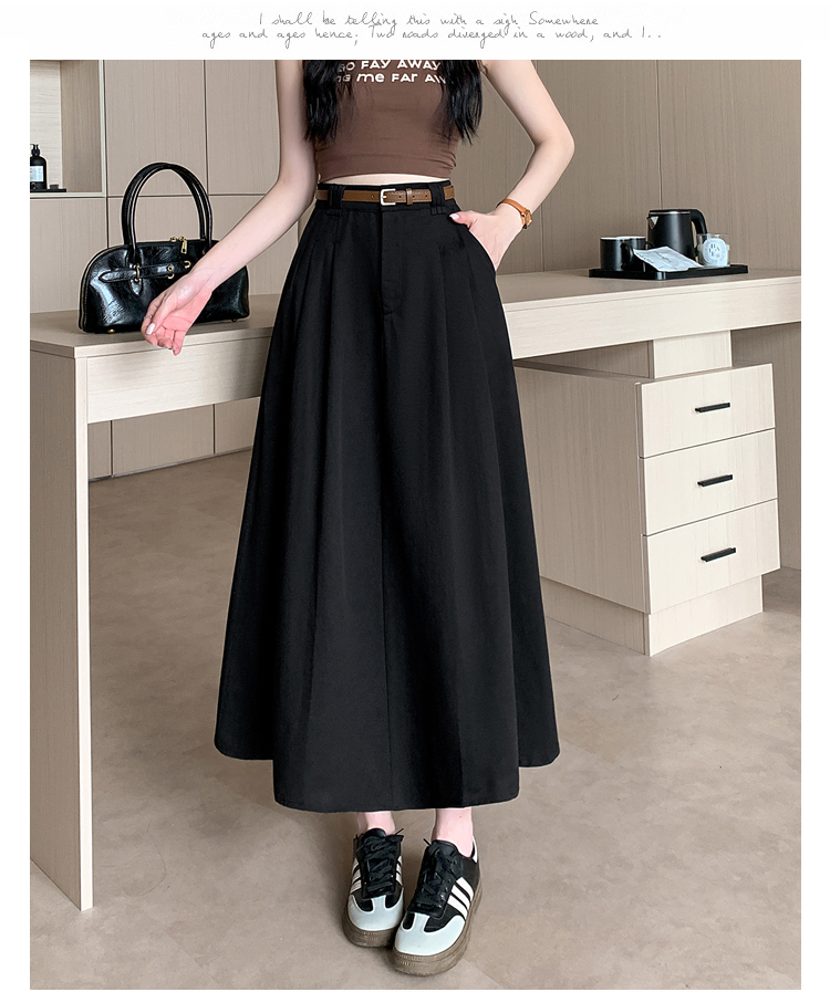 여성용 살구색 워싱 코튼 플리츠 미디 스커트, 2026년 봄/여름 신상, 엉덩이를 커버해주는 슬림한 A라인 미디 스커트로, 전체적으로 넓게 퍼지는 디자인입니다.