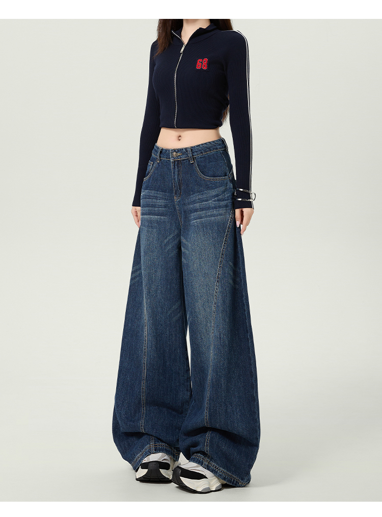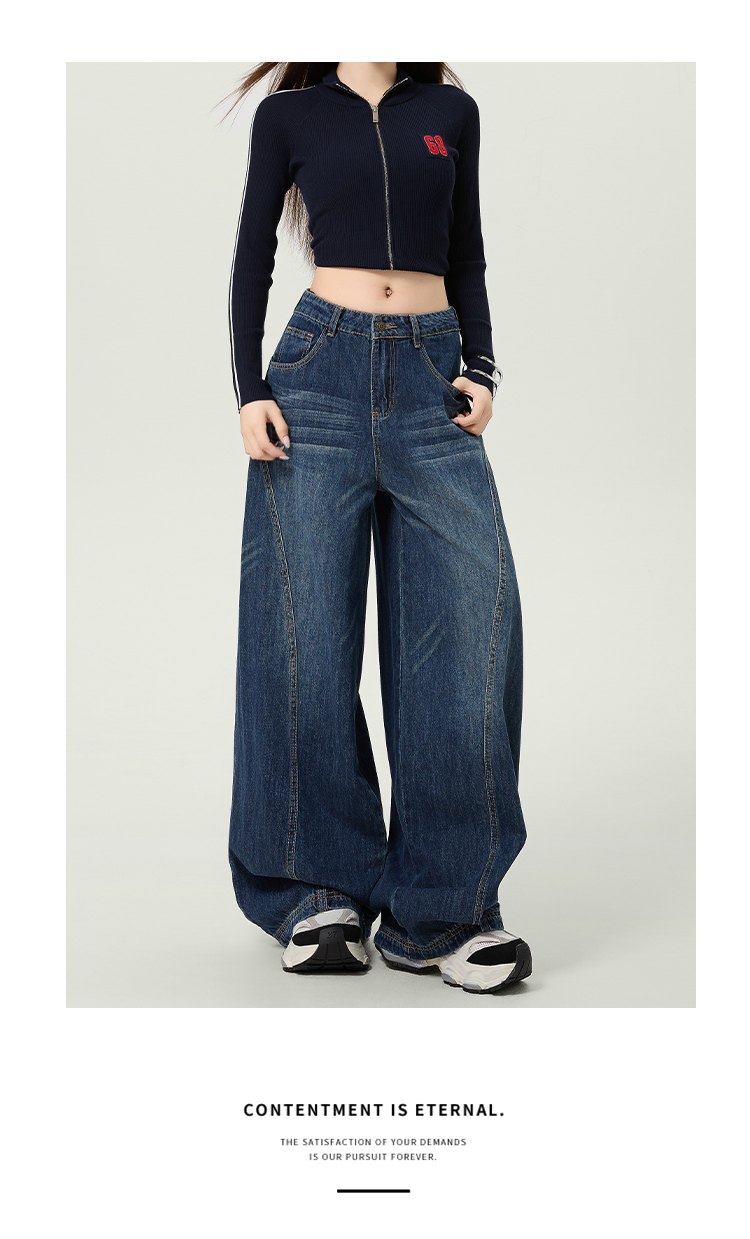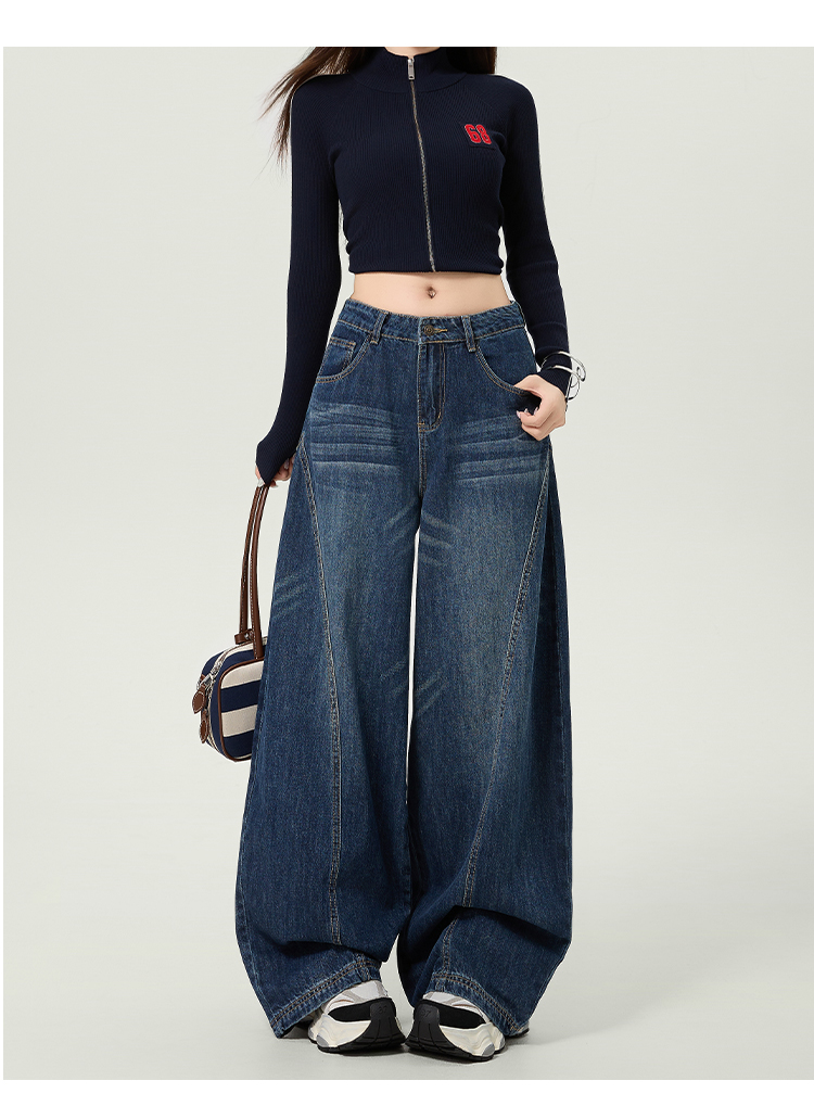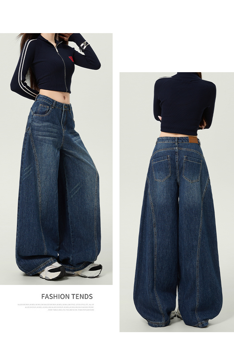 플러스 사이즈 여성을 위한 루즈핏 곡선형 청바지, 2025년 봄/가을 컬렉션, 하이웨이스트, 드레이핑, 슬림핏, 와이드 레그, 활용도 높은 팬츠.