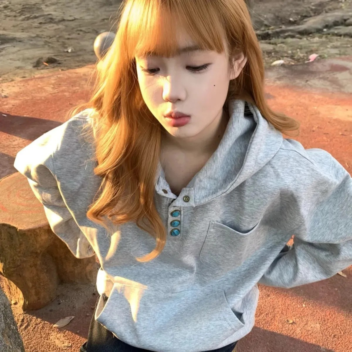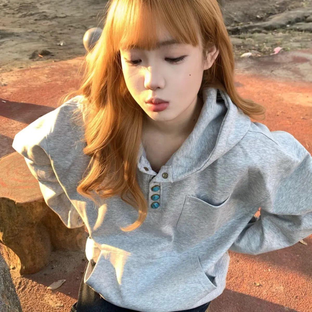 时尚美式复古纽扣连帽卫衣男女秋冬高级感宽松慵懒风休闲帽衫外套