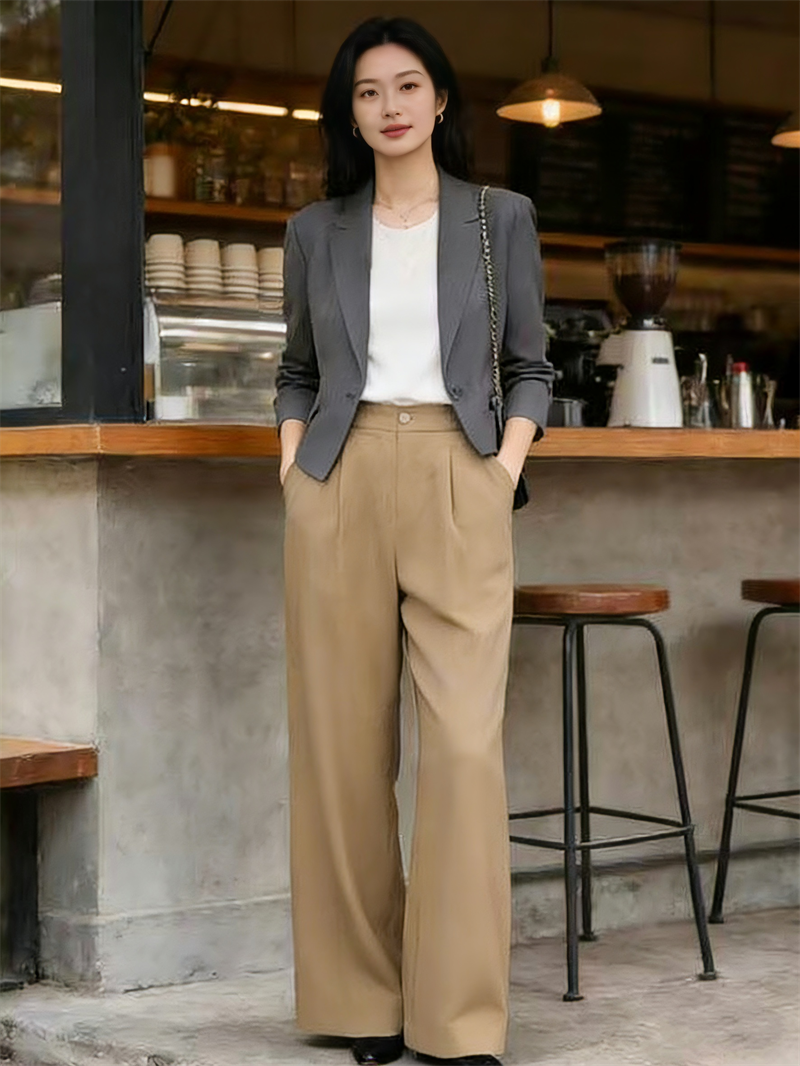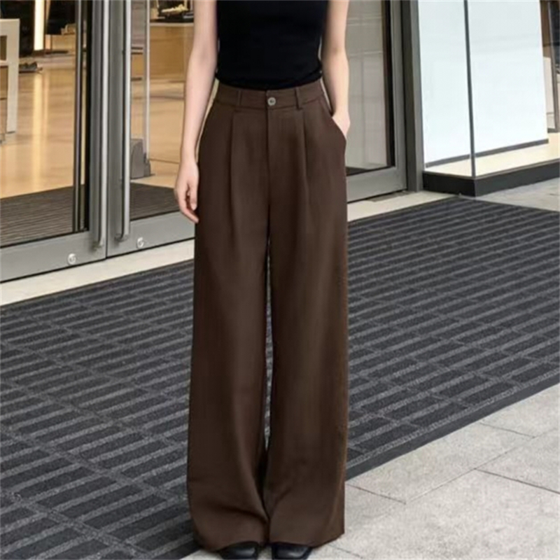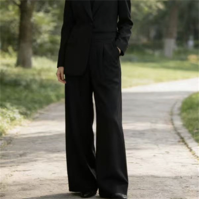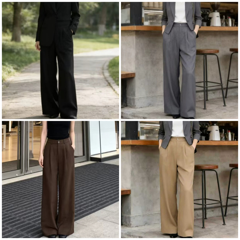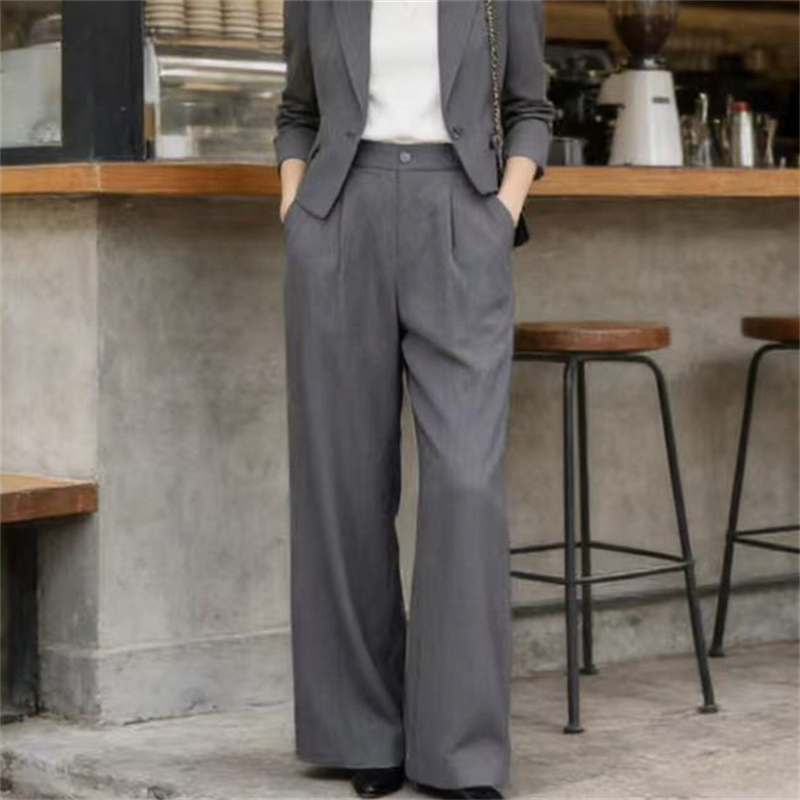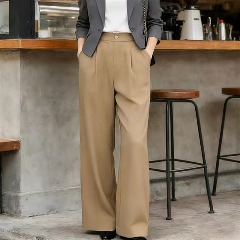 심플하고 스타일리시한 여성 정장 바지, 2026년 봄/여름 레트로 스타일, 하이웨이스트 와이드 팬츠.
