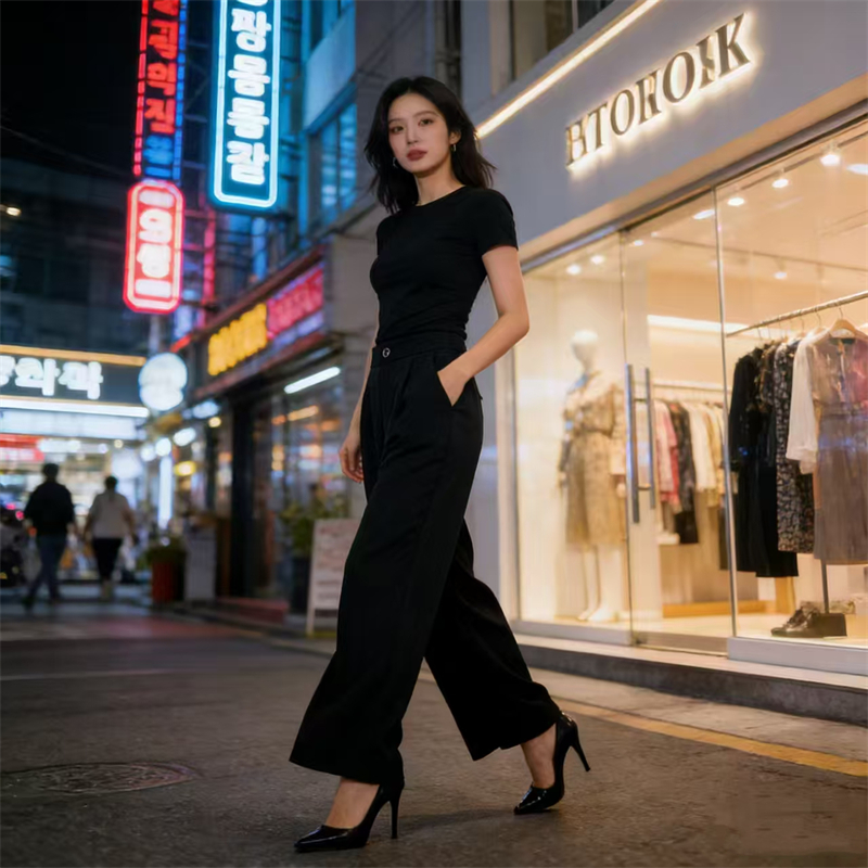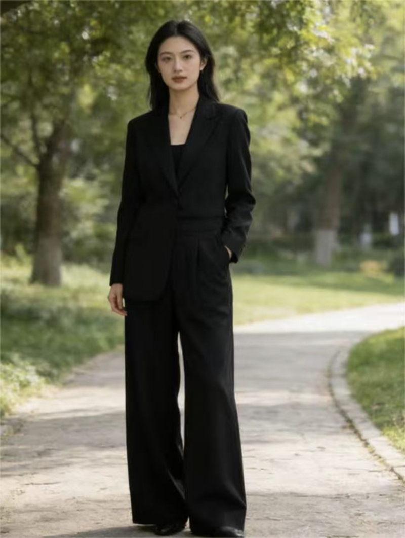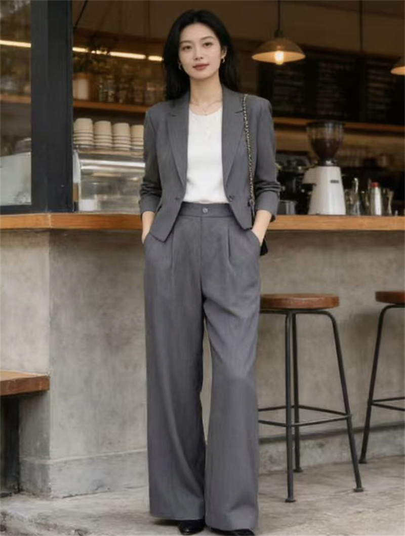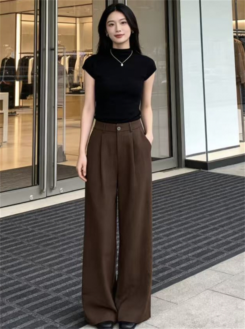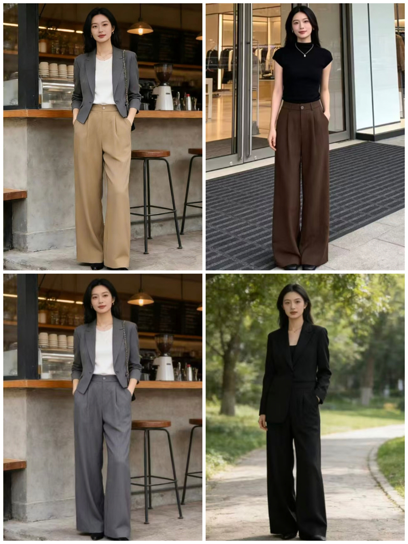 심플하고 스타일리시한 여성 정장 바지, 2026년 봄/여름 레트로 스타일, 하이웨이스트 와이드 팬츠.