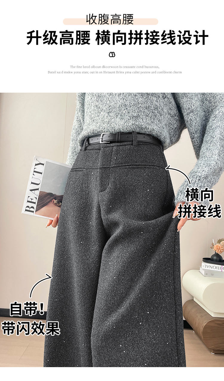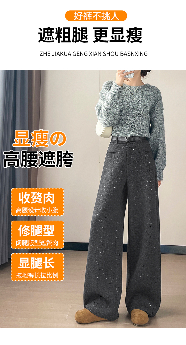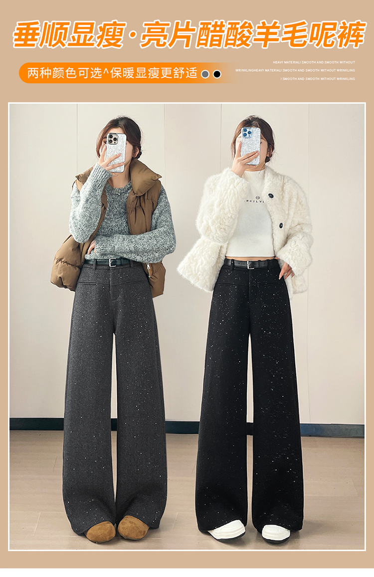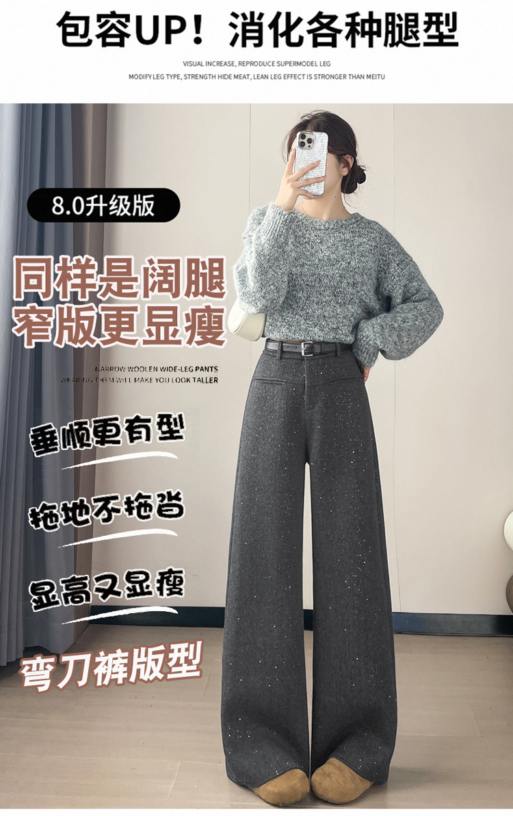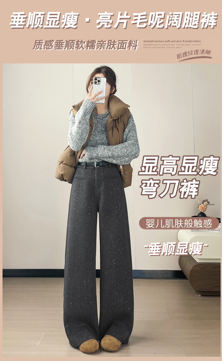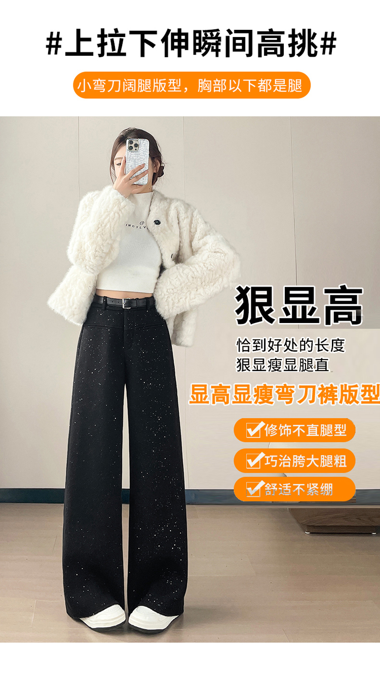 实拍2026秋冬新款西装阔腿裤醋酸羊毛加绒弯刀裤毛呢裤高腰糯米裤