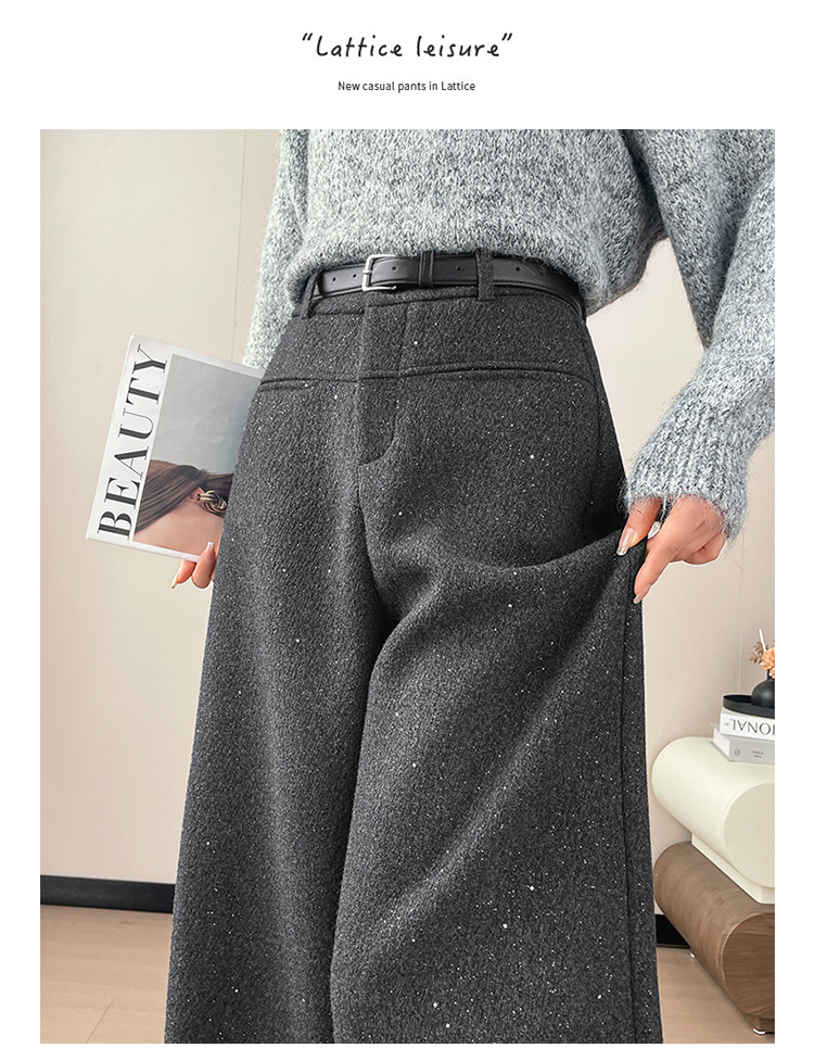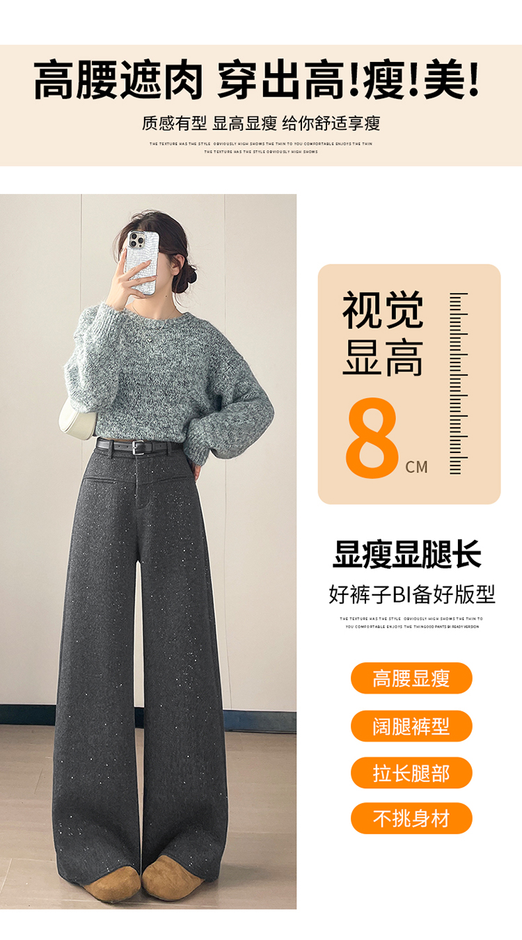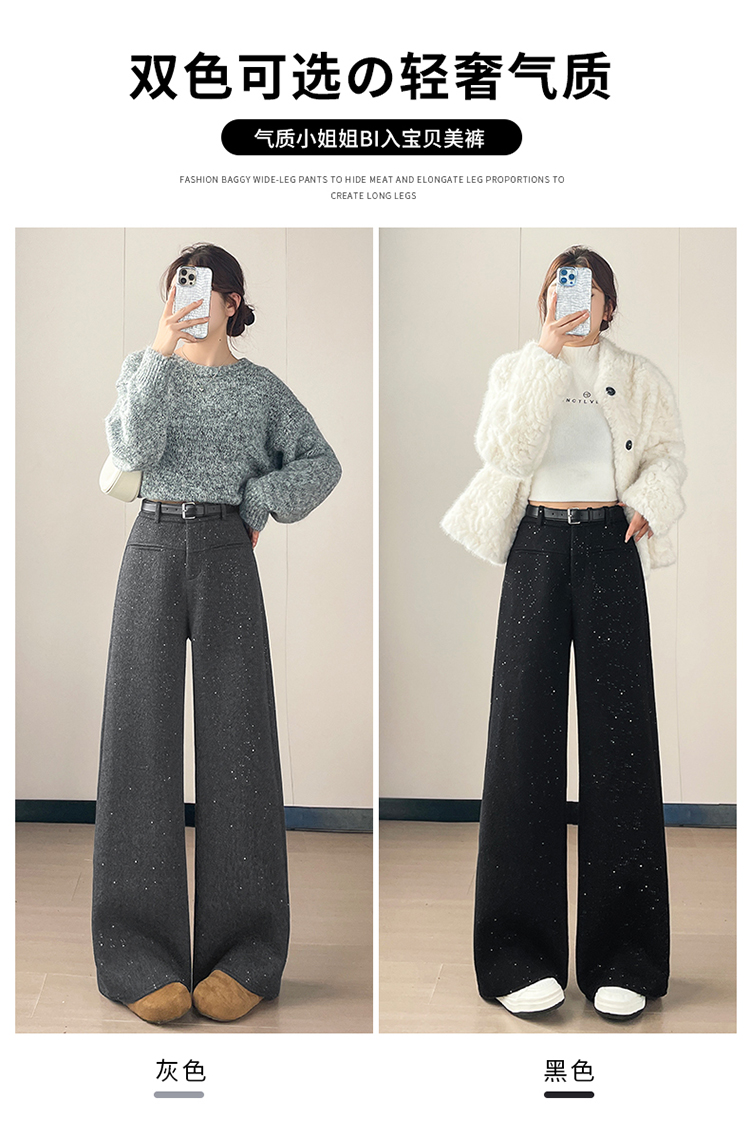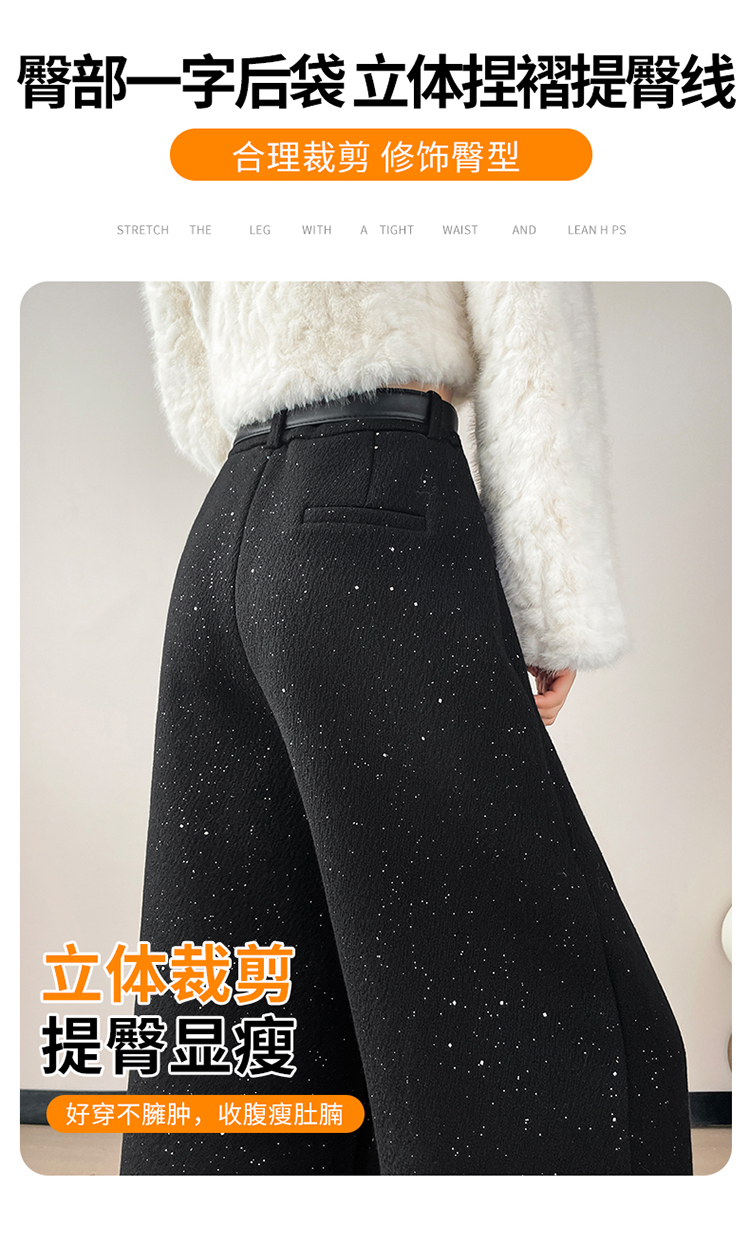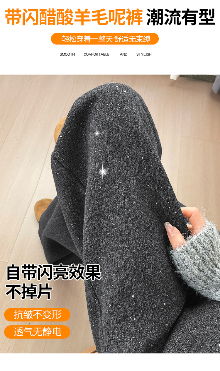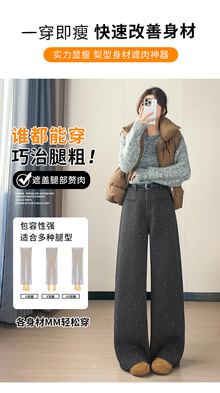 实拍2026秋冬新款西装阔腿裤醋酸羊毛加绒弯刀裤毛呢裤高腰糯米裤