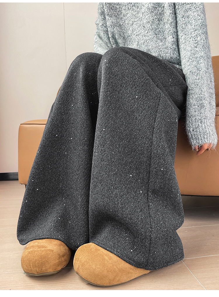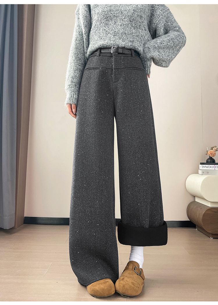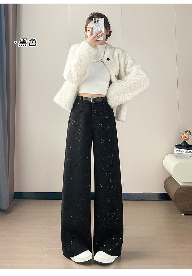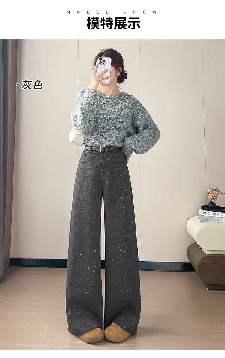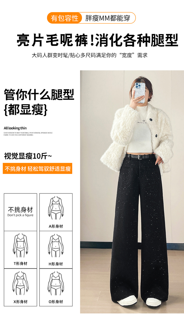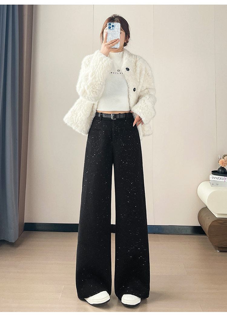 实拍2026秋冬新款西装阔腿裤醋酸羊毛加绒弯刀裤毛呢裤高腰糯米裤