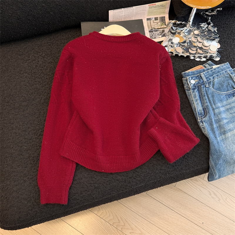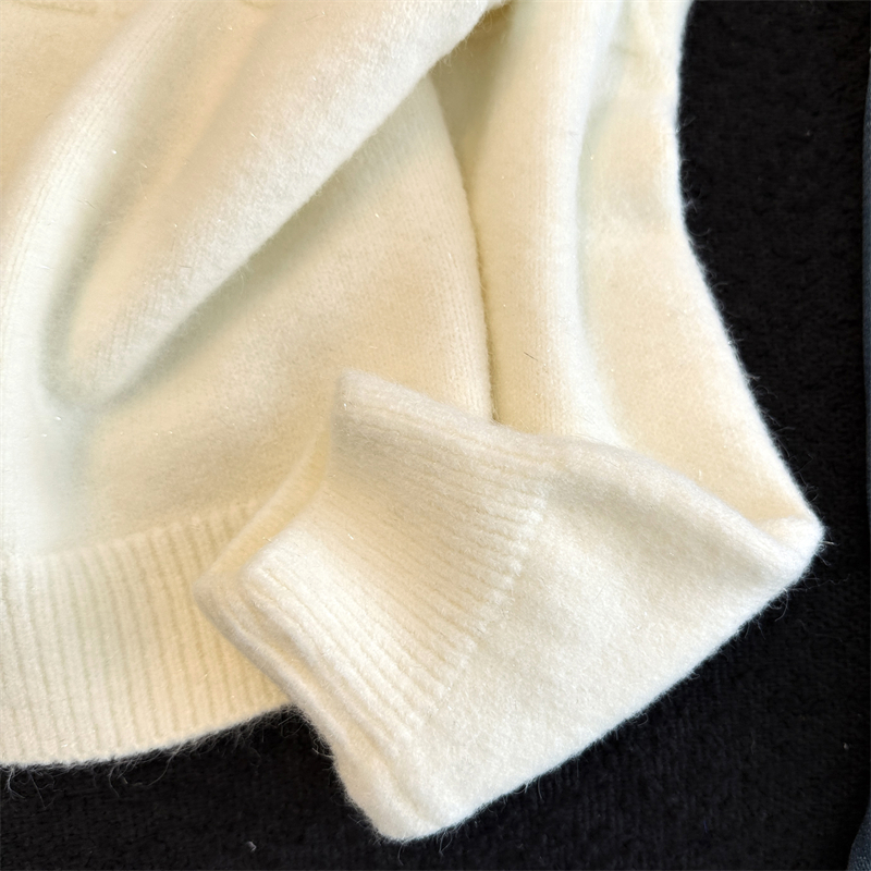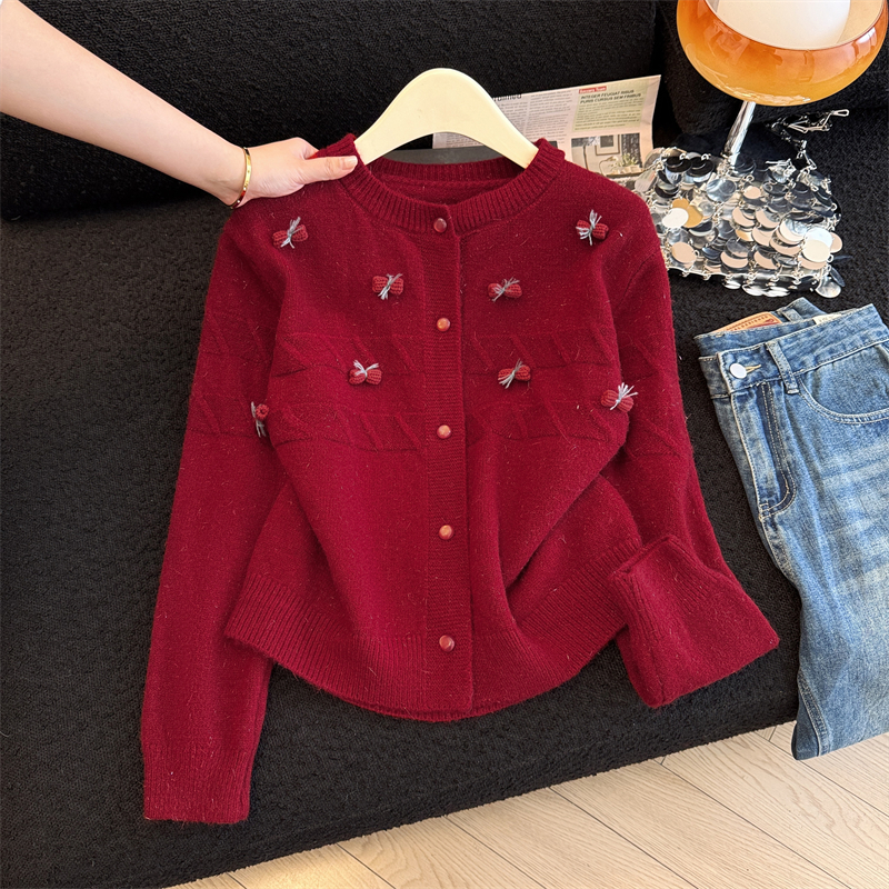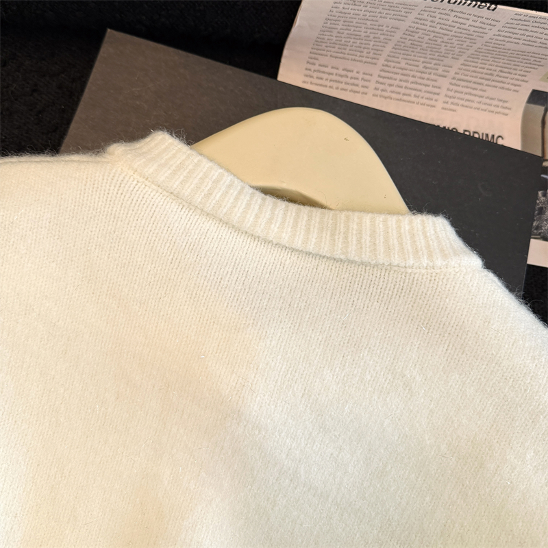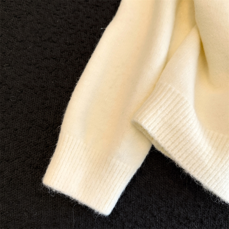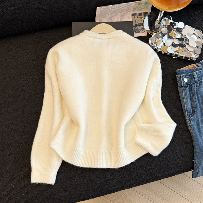 실생활에서 촬영한 새해 패션 사진: 여성용 화이트 가디건 스웨터, 2026년 새롭게 선보이는 프렌치 스타일의 세련된 니트 가디건 탑.