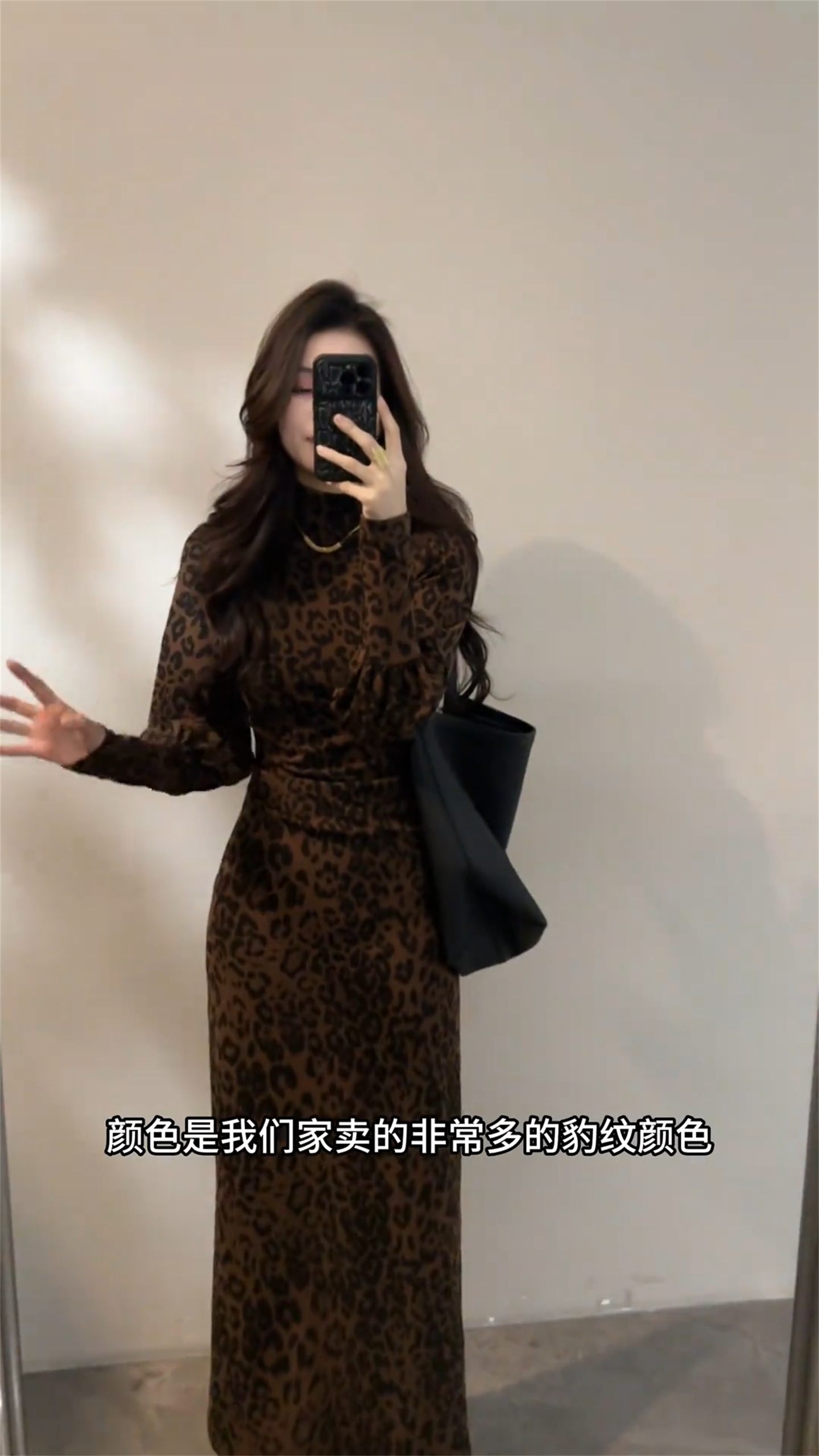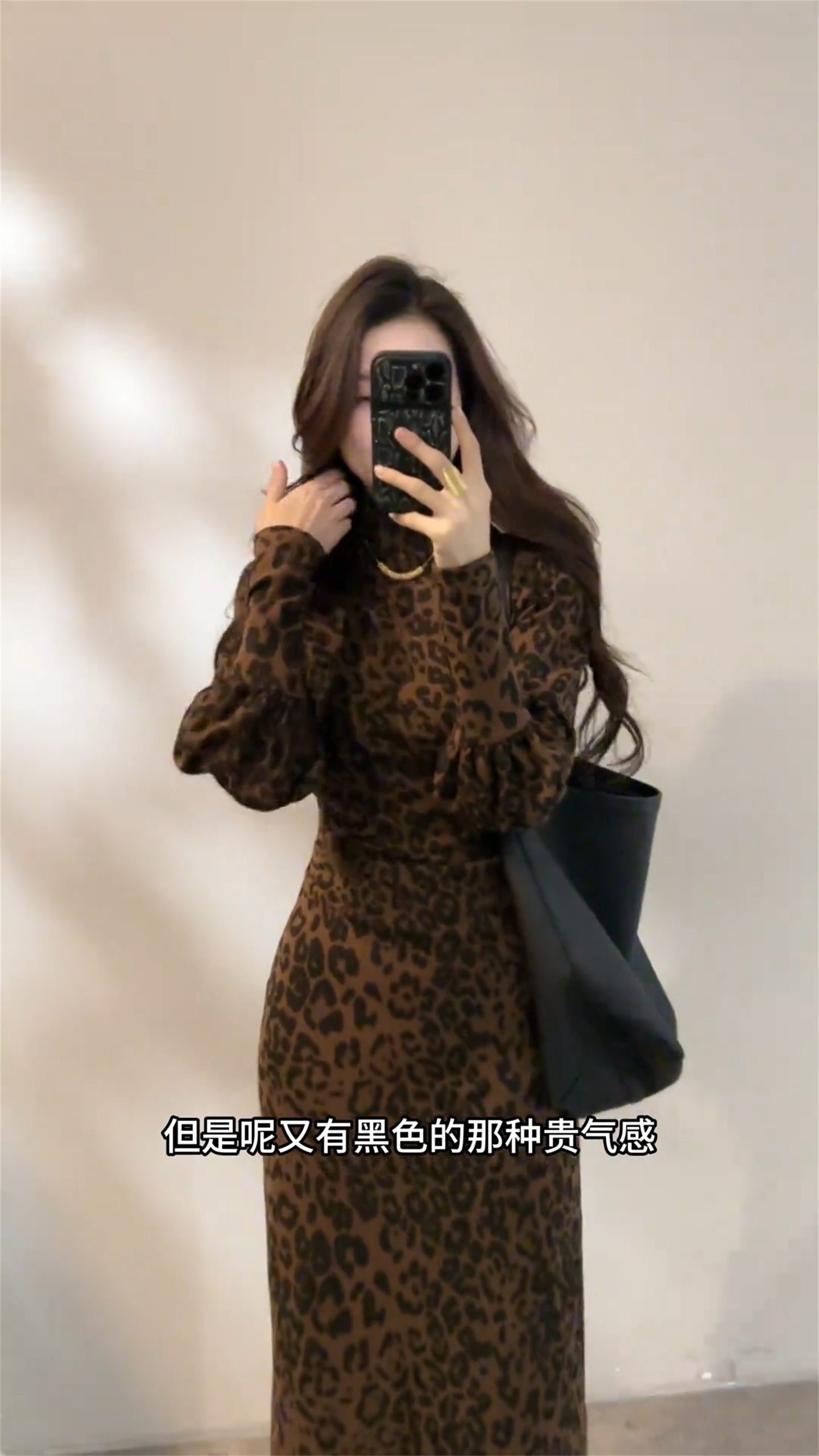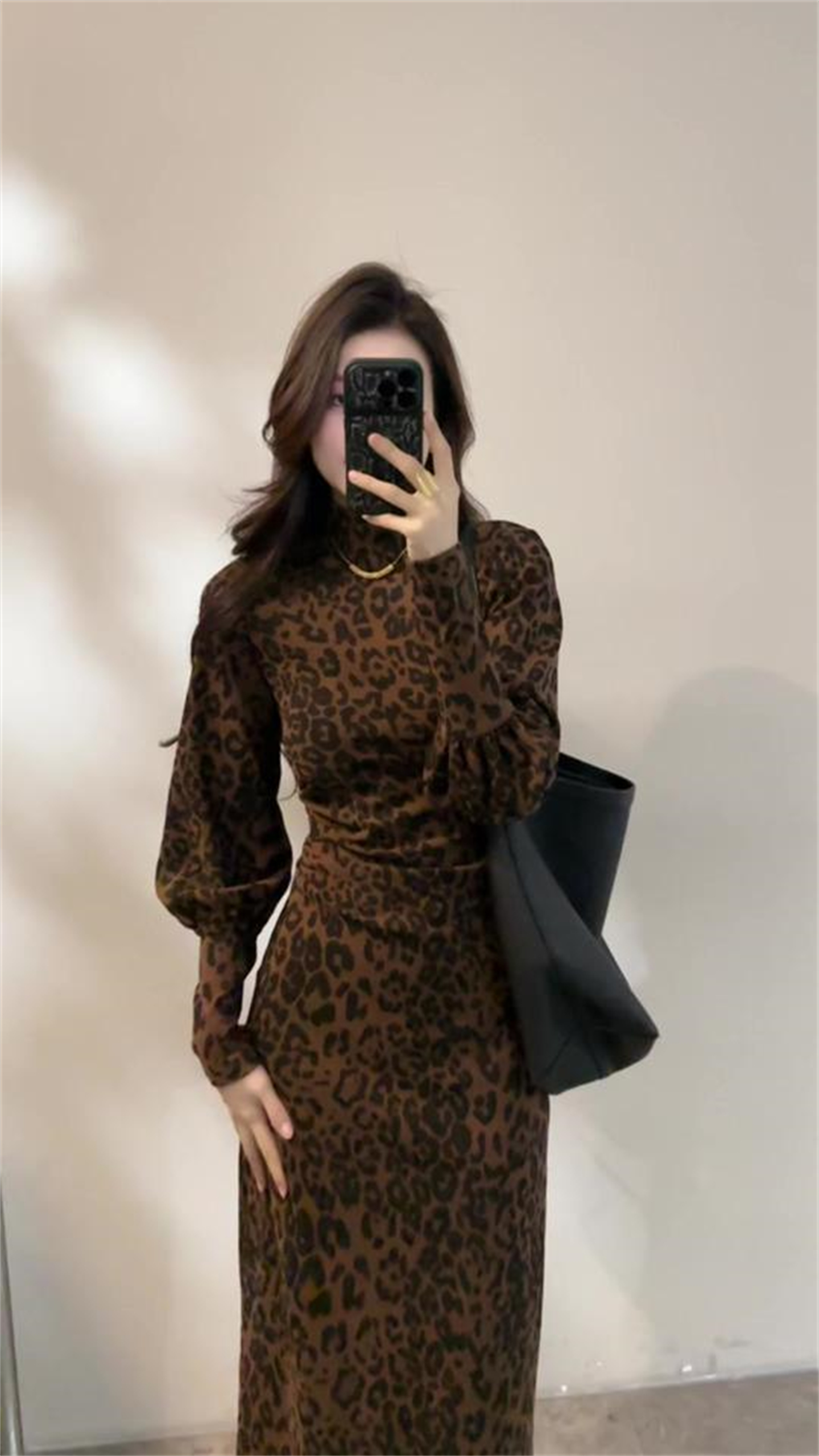 高级感针织内搭豹纹法式连衣裙子女秋冬季2026年新款气质包臀长裙