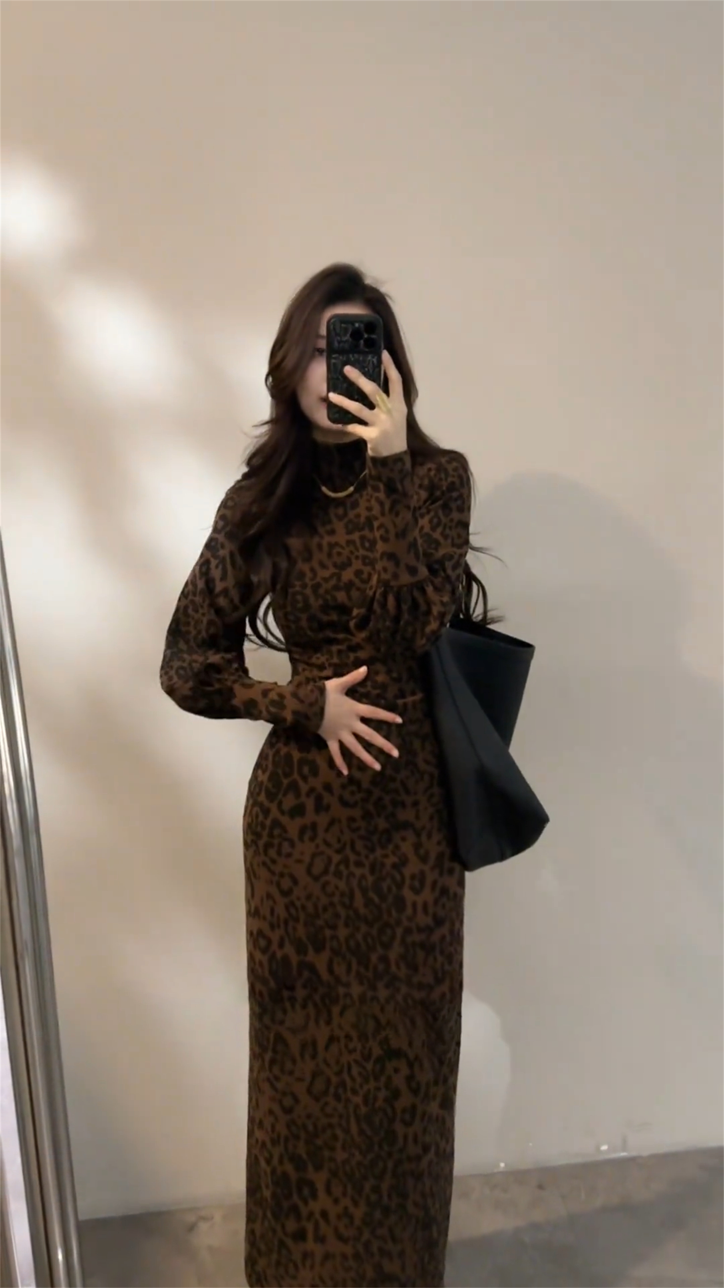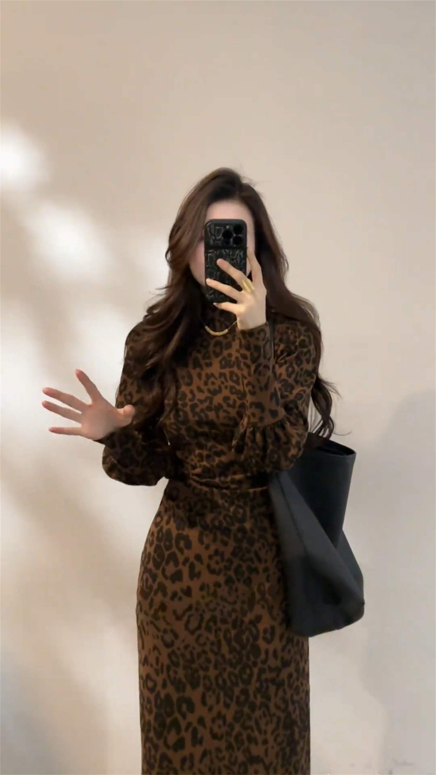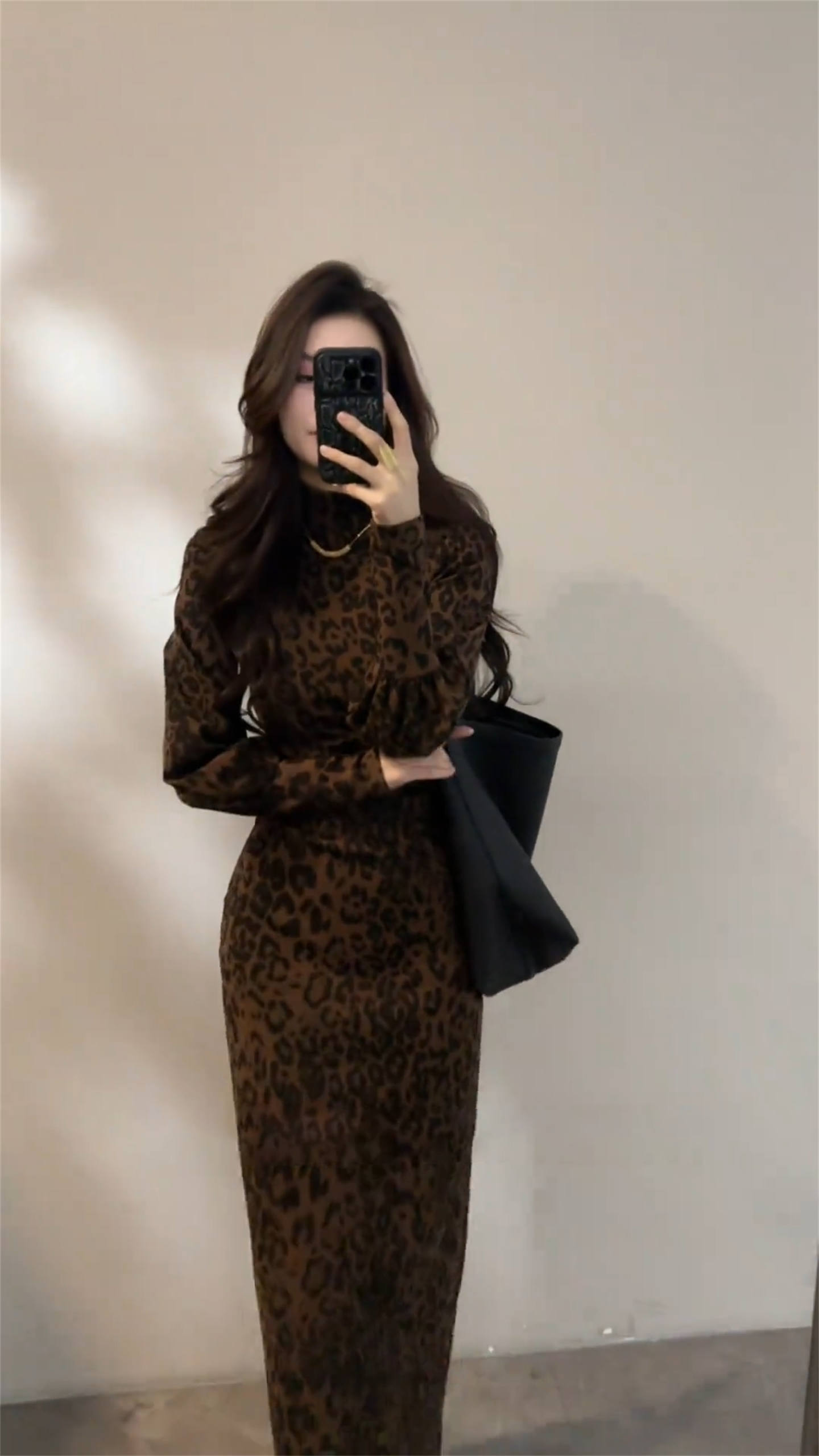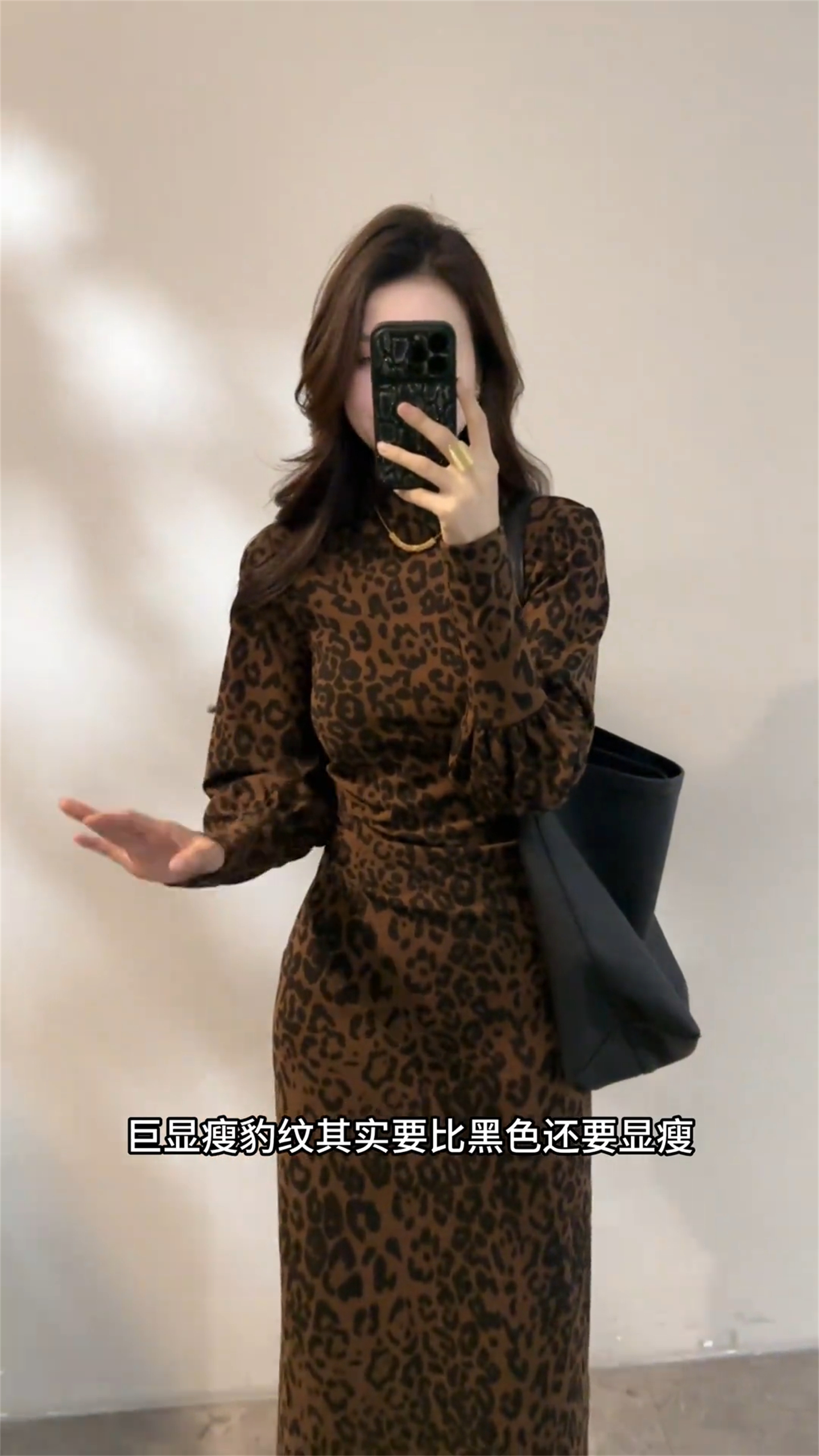 高级感针织内搭豹纹法式连衣裙子女秋冬季2026年新款气质包臀长裙