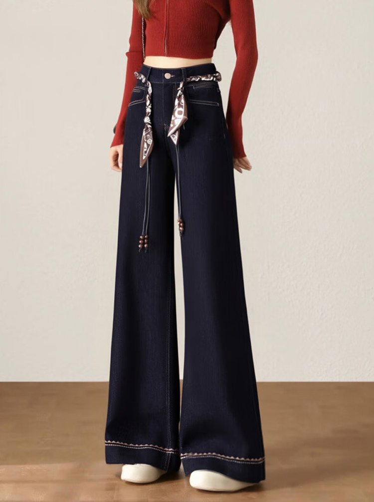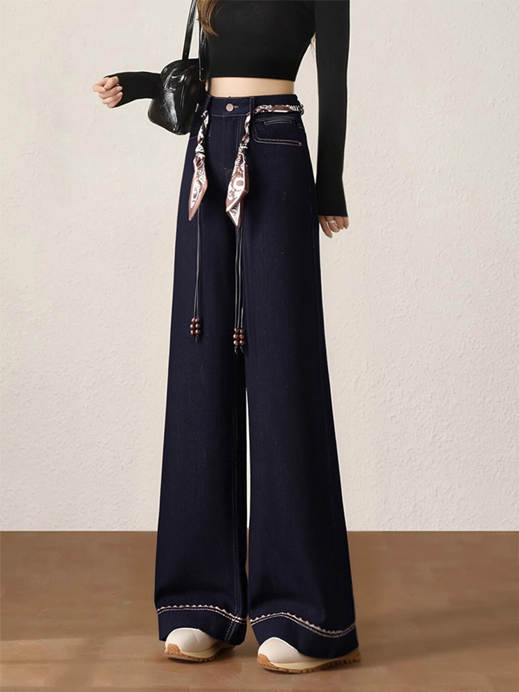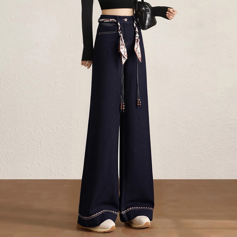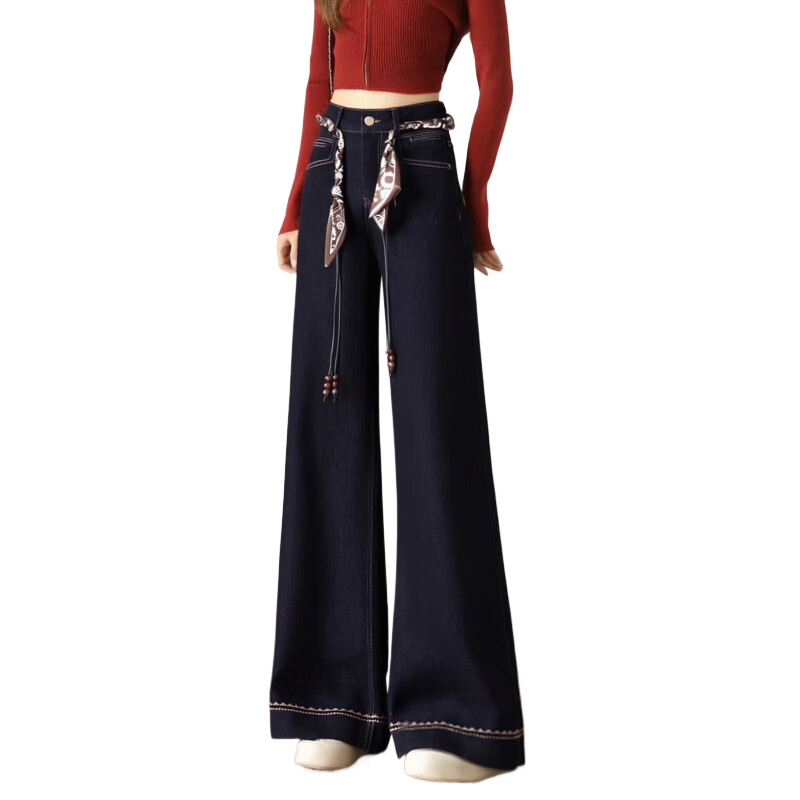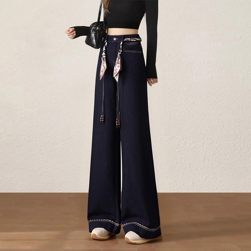 复古深蓝色胖mm直筒牛仔裤女装2026春秋显高显瘦大码高级感阔腿裤