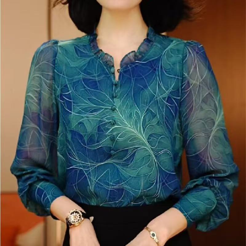 2026春季新款浮翠流丹长袖上衣小衫透气双层高级百搭套头洋气