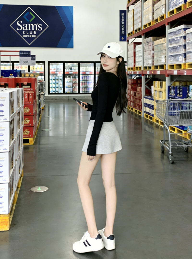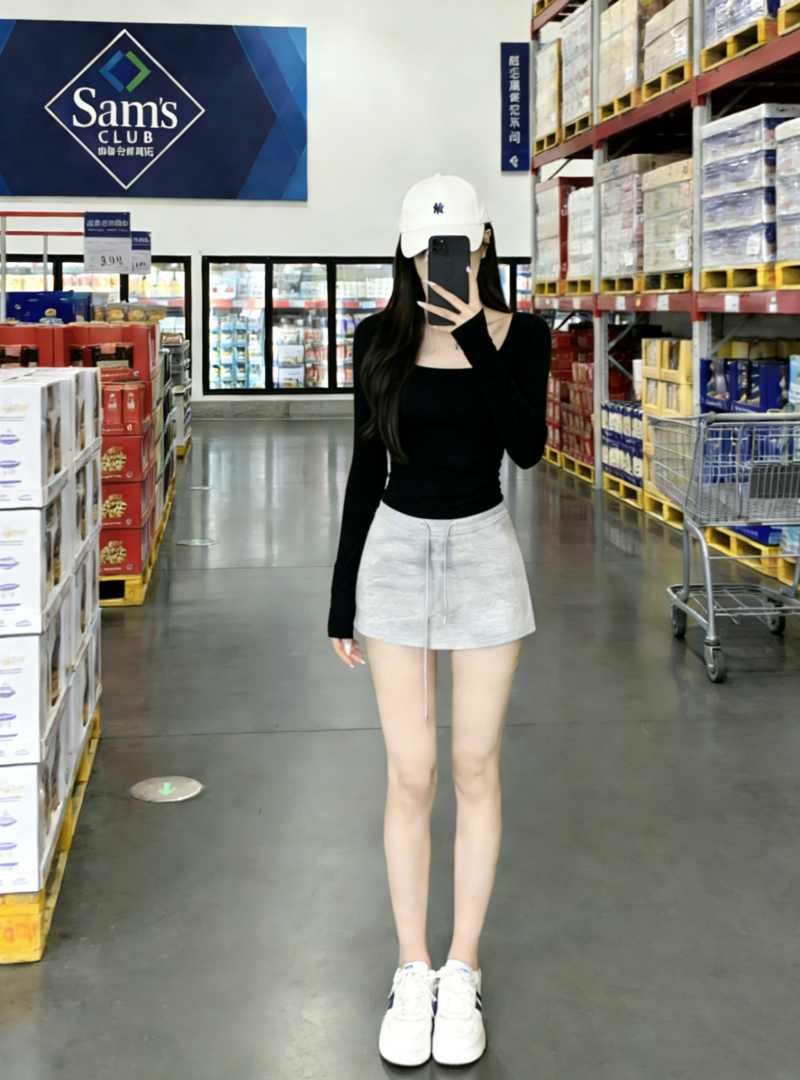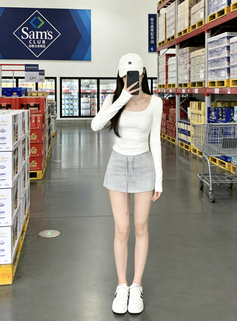 韩系穿搭一整套女夏季新款巨好看方领短袖针织衫灰色短裙两件套装