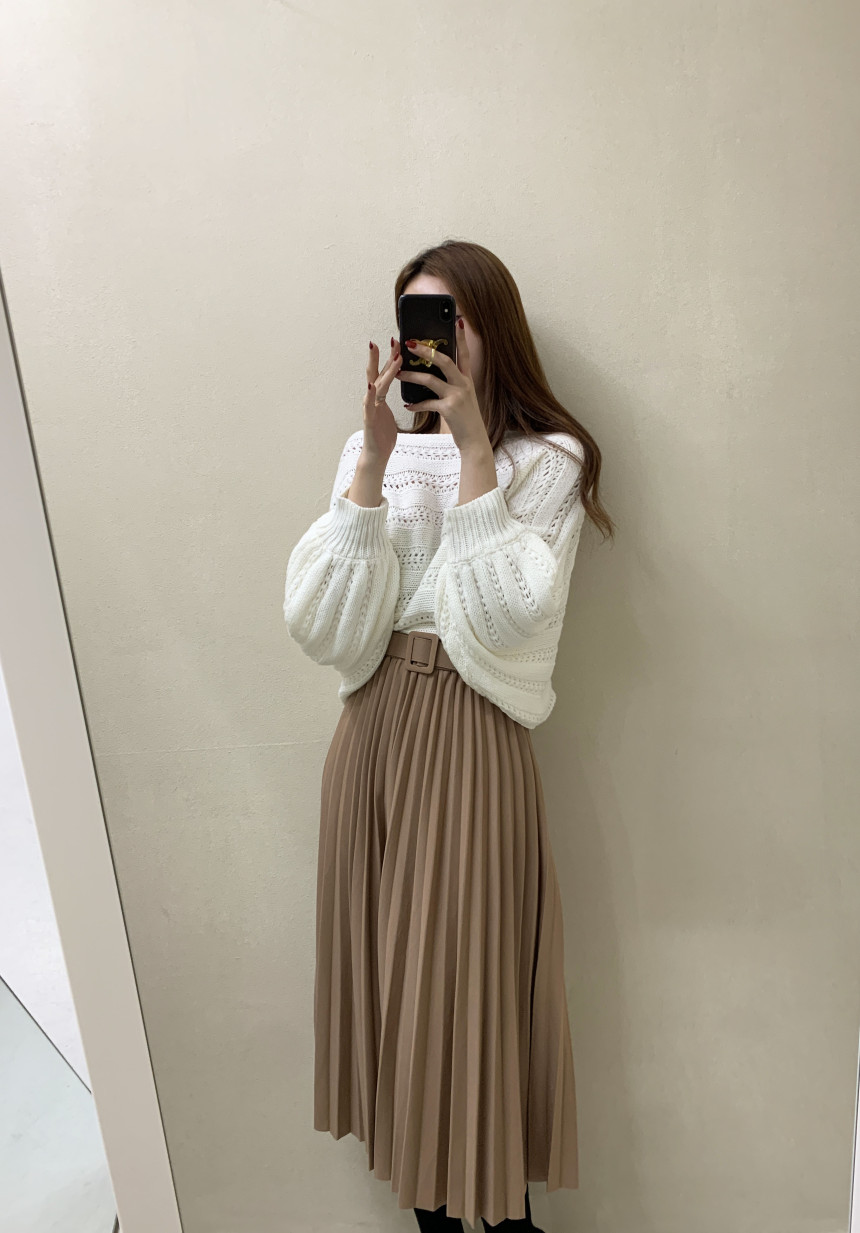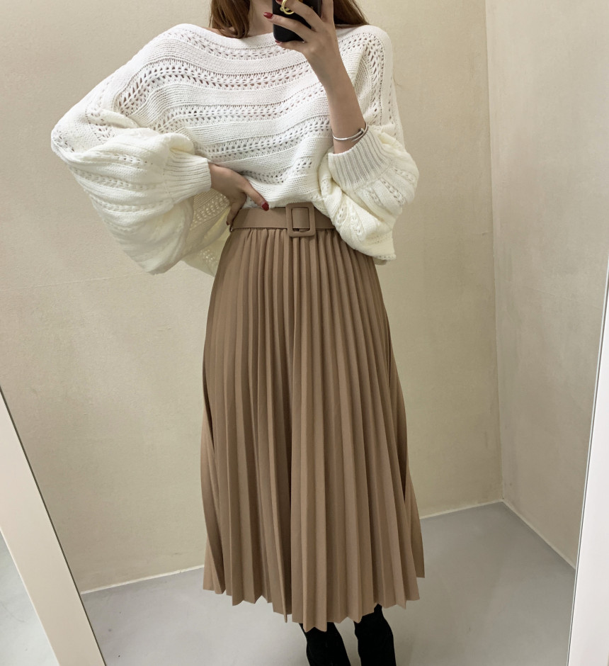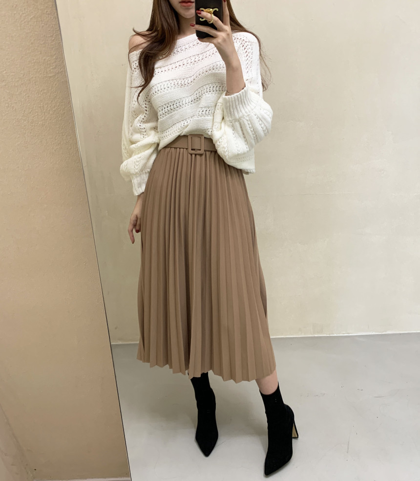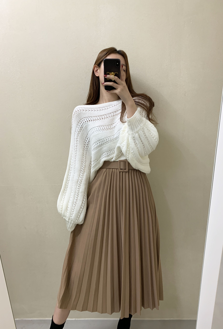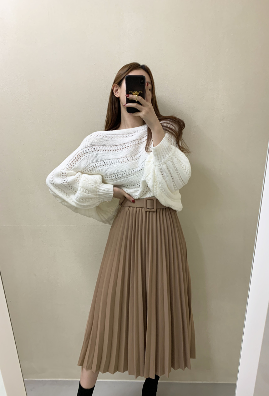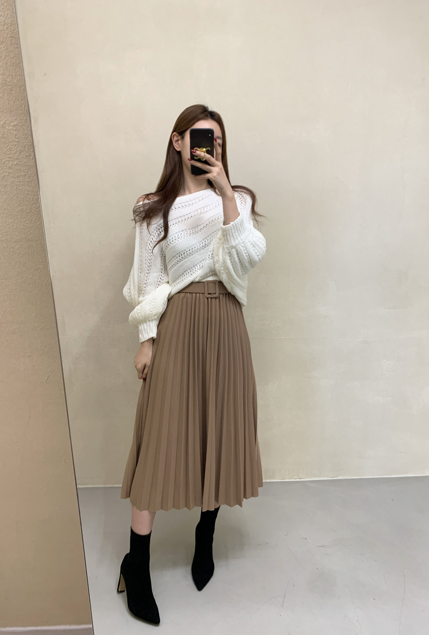 한국 스타일의 부드럽고 편안한 느낌, 오픈워크 오프숄더 디자인, 박쥐 소매, 루즈핏으로 활용도 높고 스타일리시한 스웨터입니다.