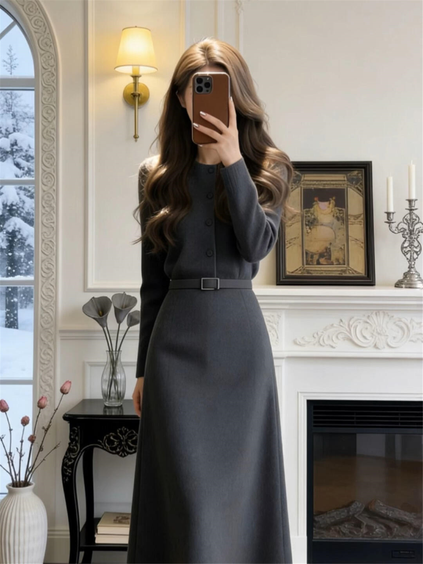 法式复古针织连衣裙子女秋冬季2026年新款配大衣内搭打底气质长裙