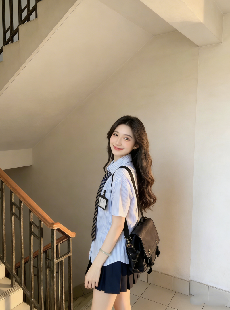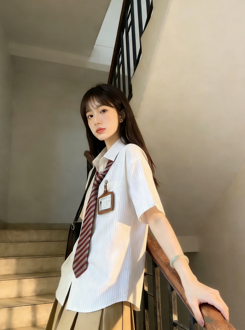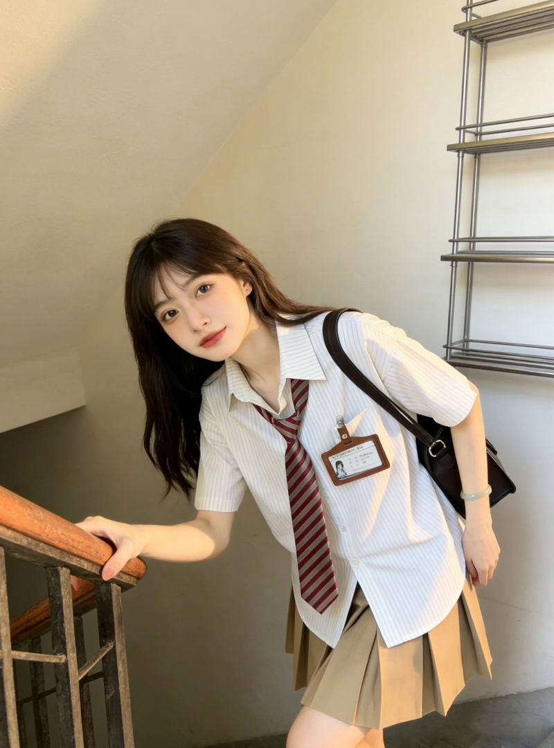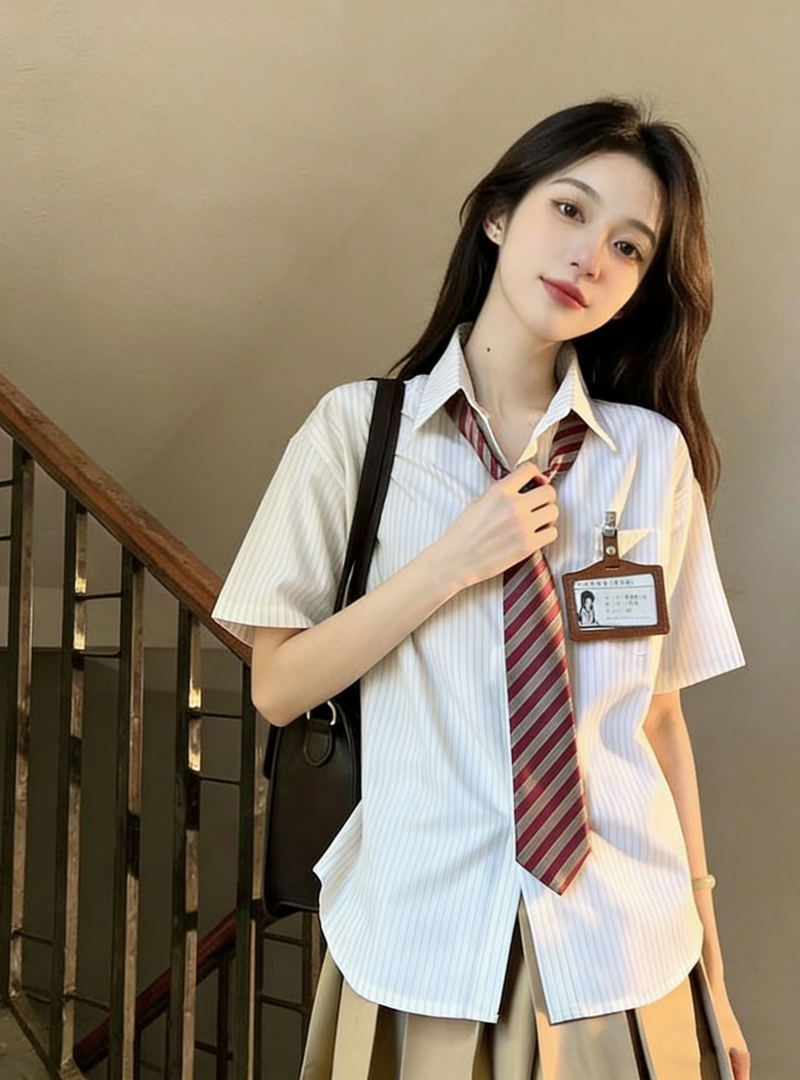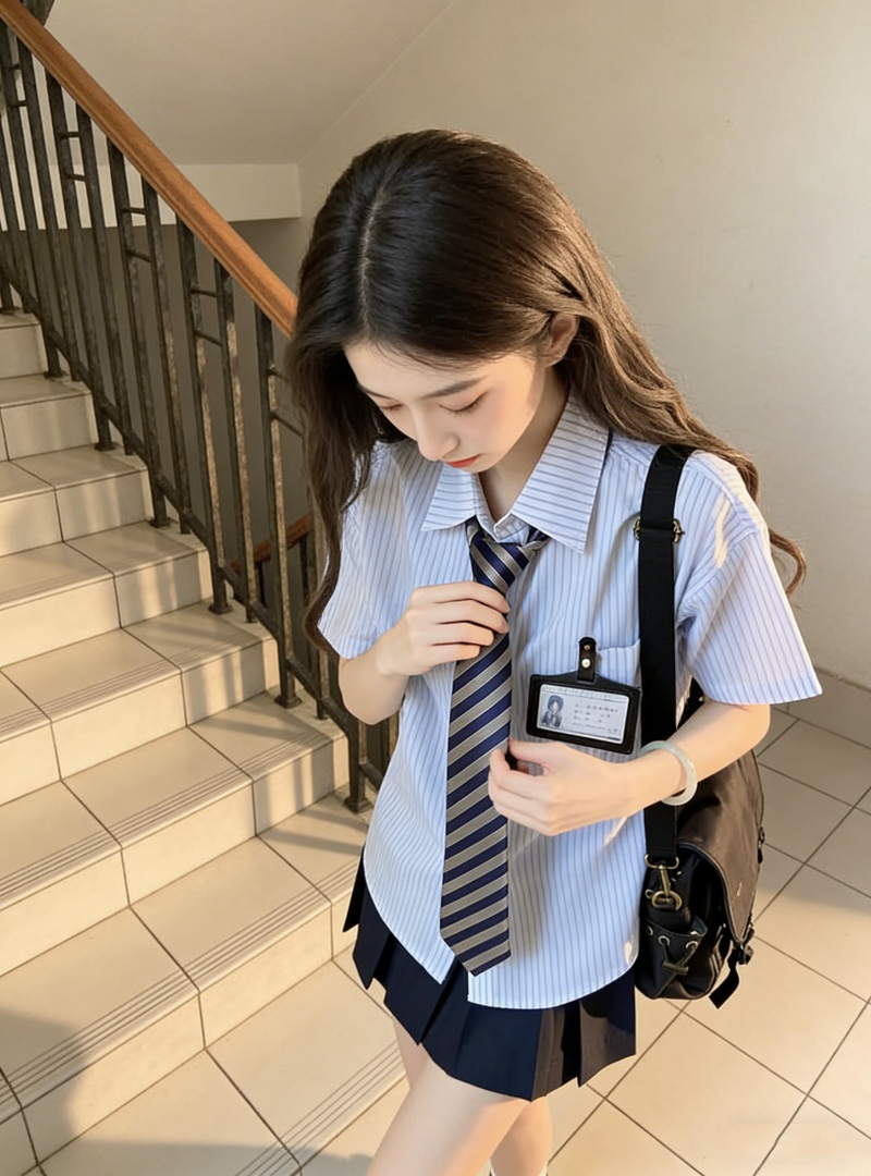 小个子茶系穿搭蓝色短袖衬衫百褶短裙学院风减龄两件套装女夏