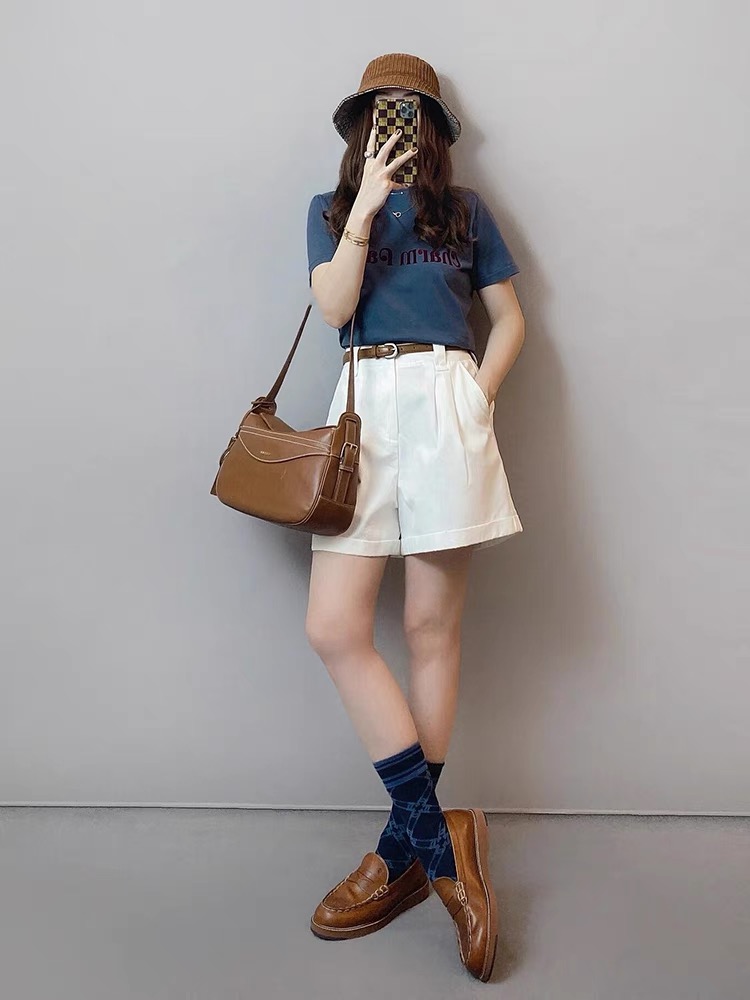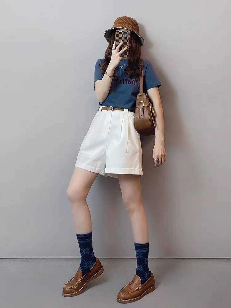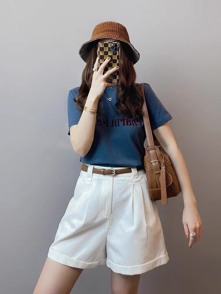 夏装搭配一整套时尚百搭正肩短袖T恤高腰休闲直筒短裤两件套装女