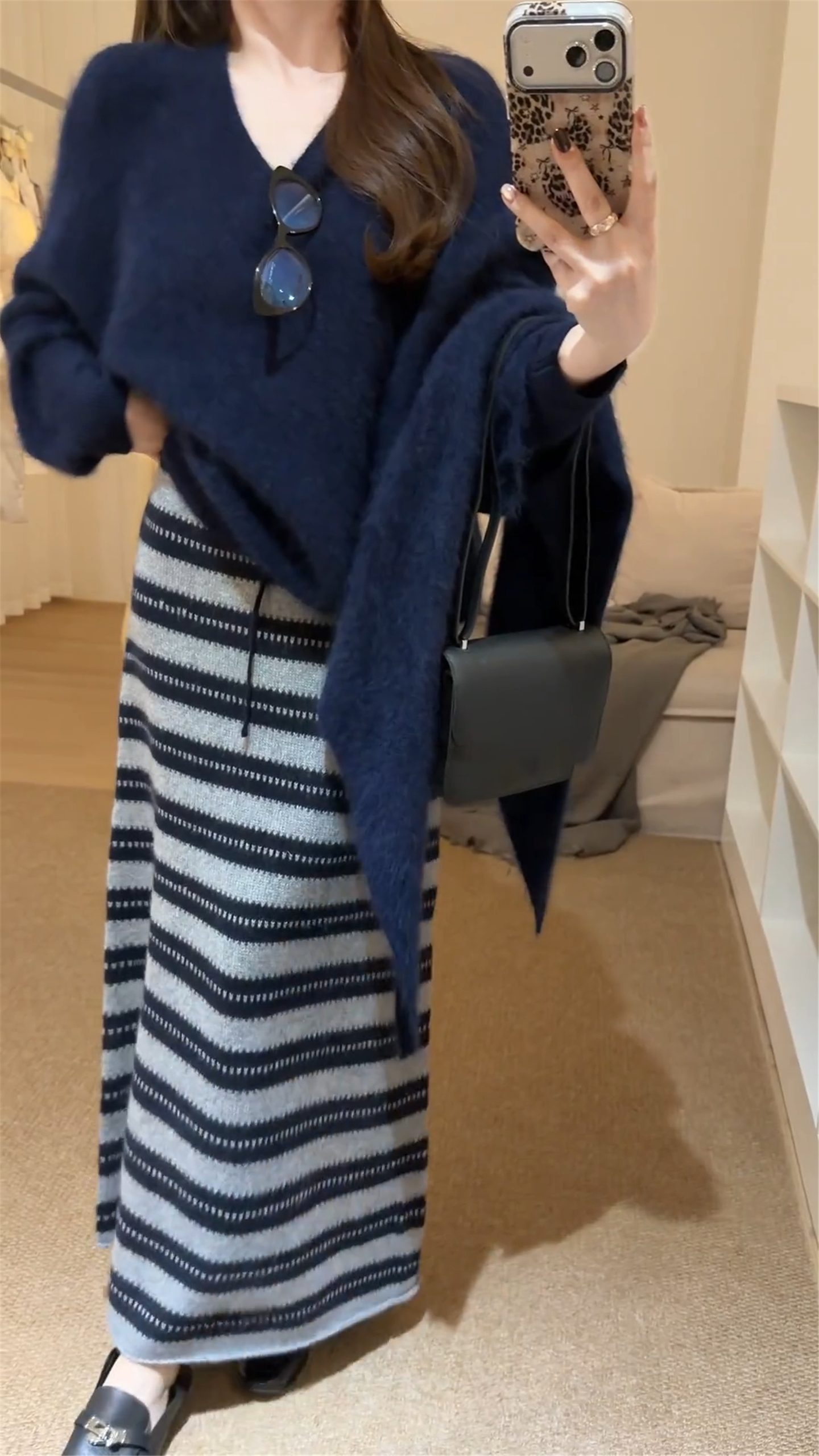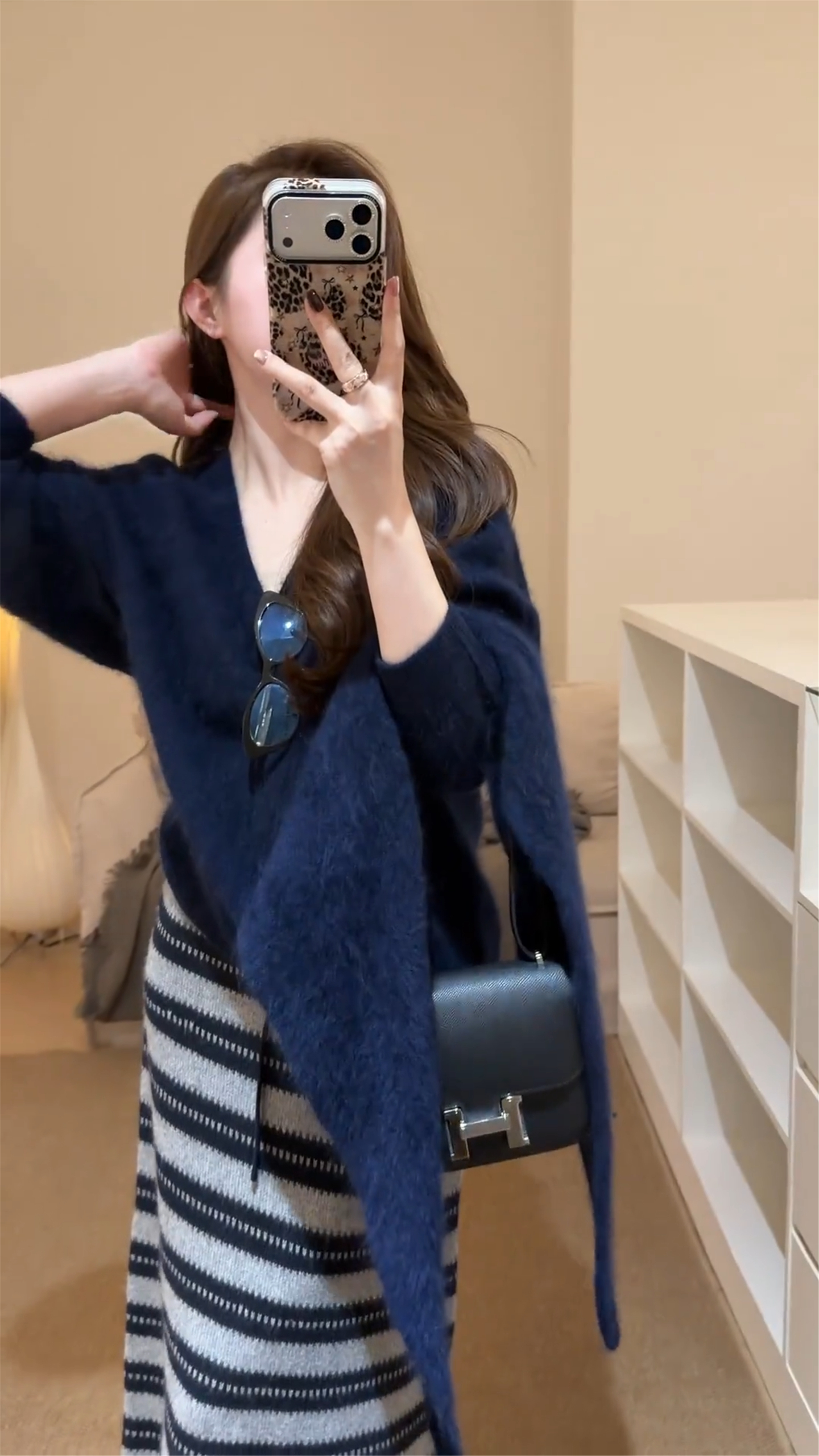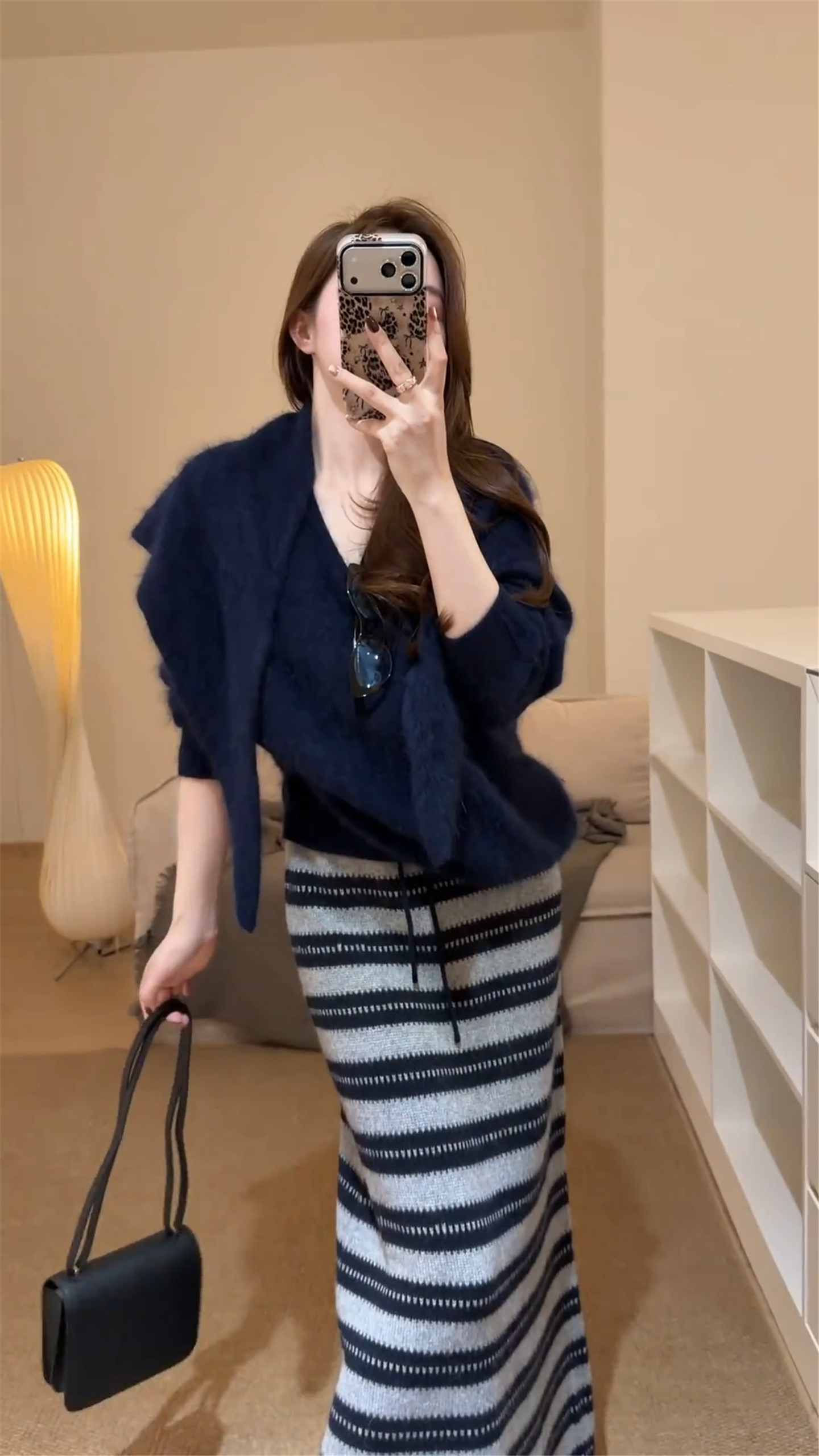 여성용 한국 복고풍 니트 드레스, 2026년 신상 겨울 스타일, 독특하고 아름답고 매우 스타일리시한 풀세트.