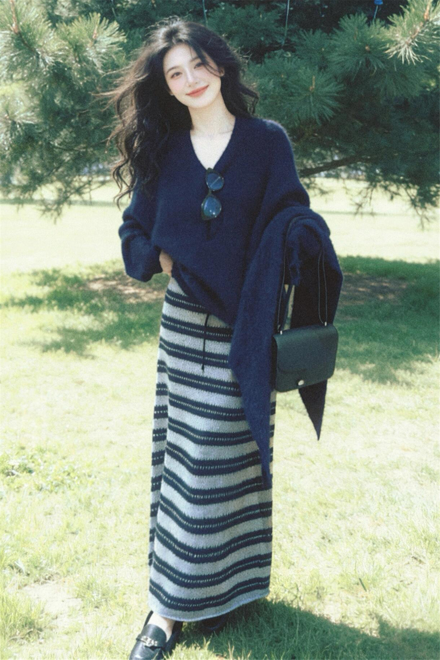 여성용 한국 복고풍 니트 드레스, 2026년 신상 겨울 스타일, 독특하고 아름답고 매우 스타일리시한 풀세트.
