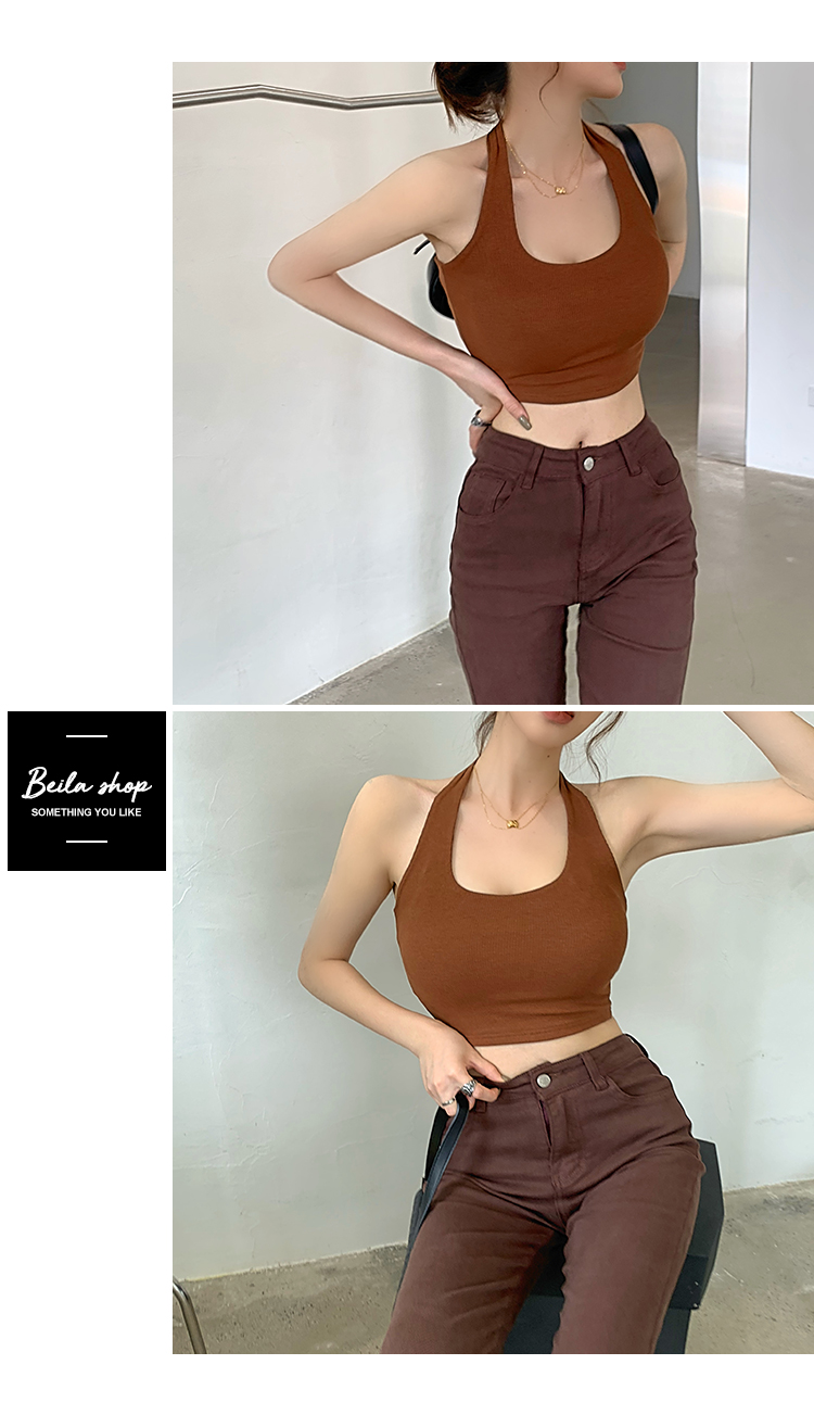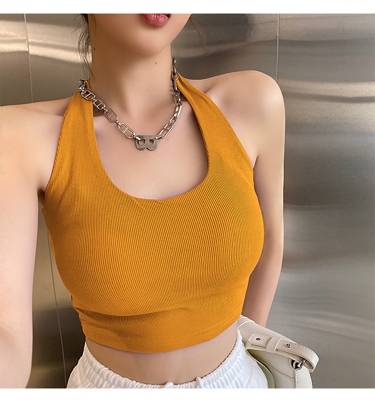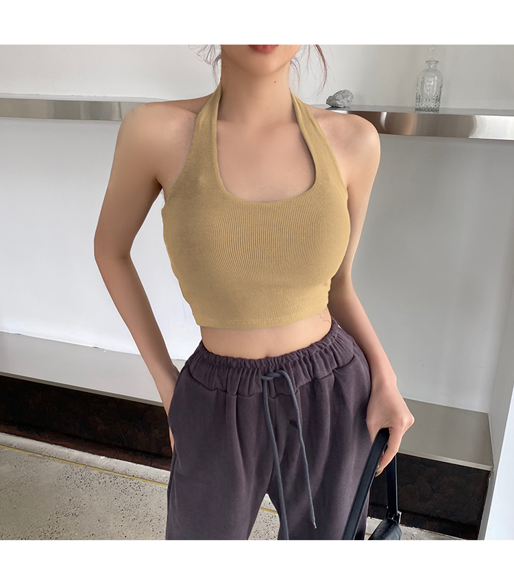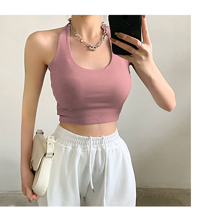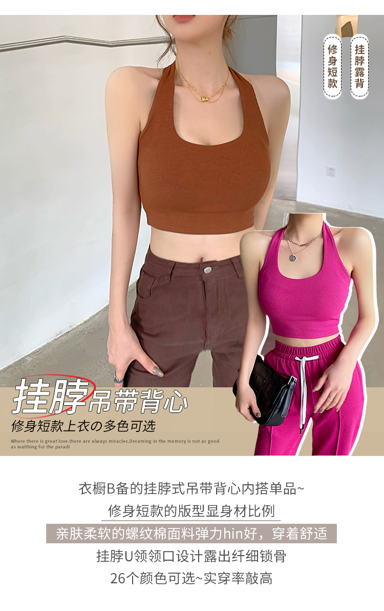 실제 사진 및 가격: 섹시하고, 등이 드러나는 민소매 스타일의 여성용 골지 캐미솔 탱크탑 17가지 색상. 젊은 감각의 디자인입니다.
