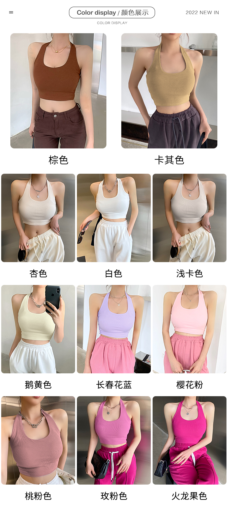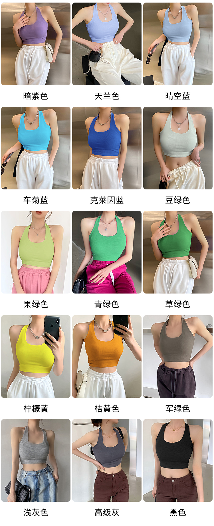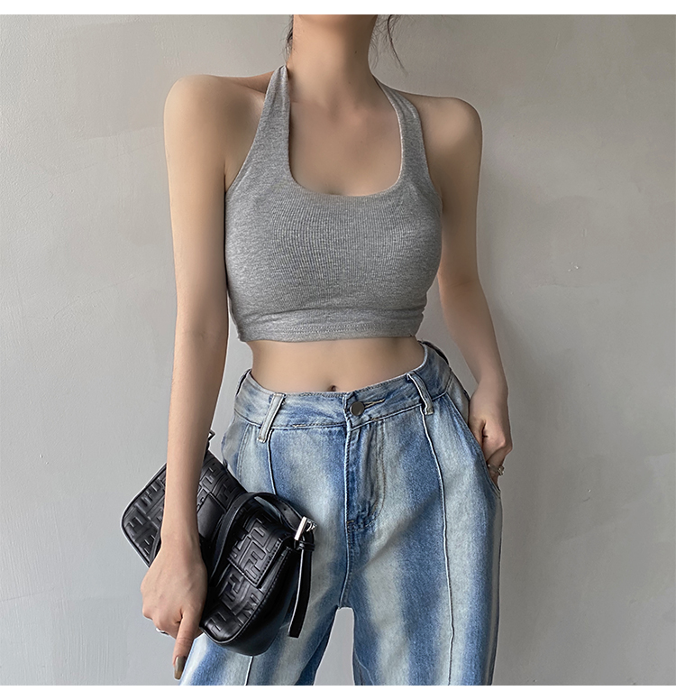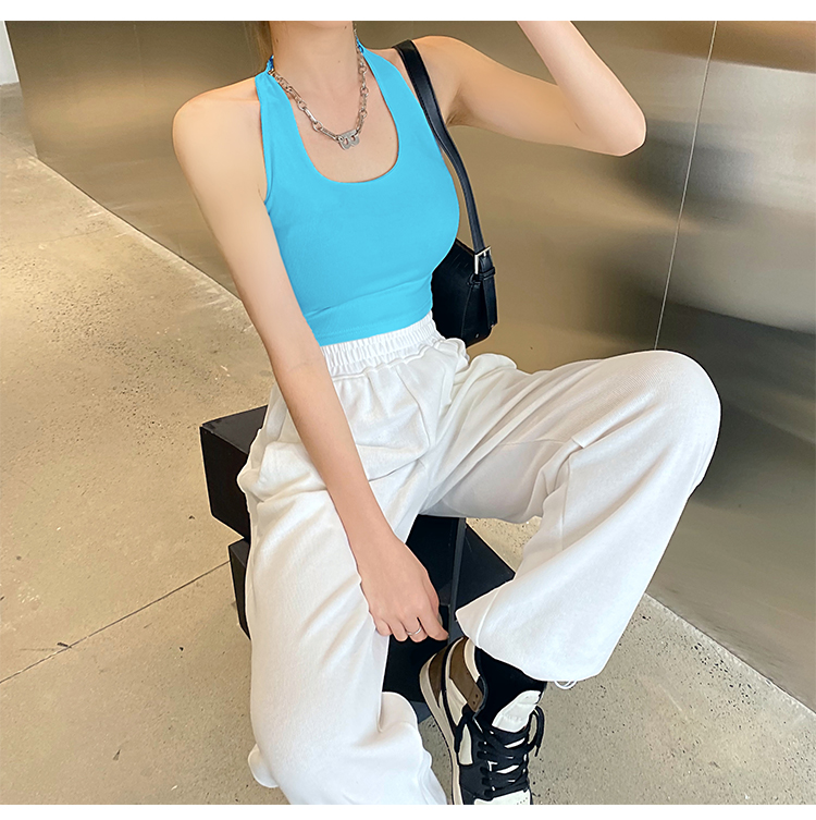 실제 사진 및 가격: 섹시하고, 등이 드러나는 민소매 스타일의 여성용 골지 캐미솔 탱크탑 17가지 색상. 젊은 감각의 디자인입니다.
