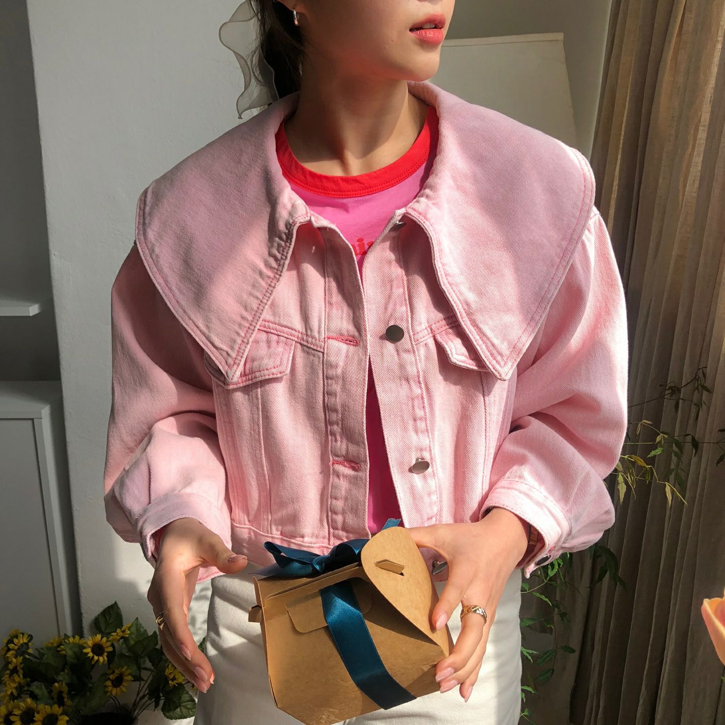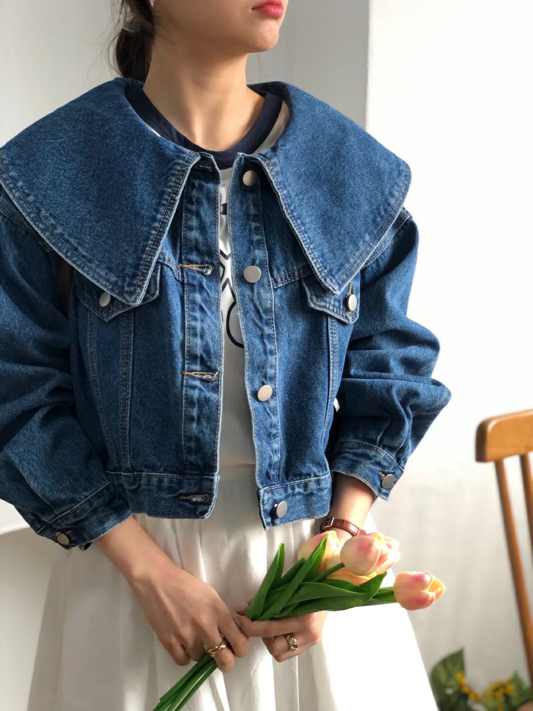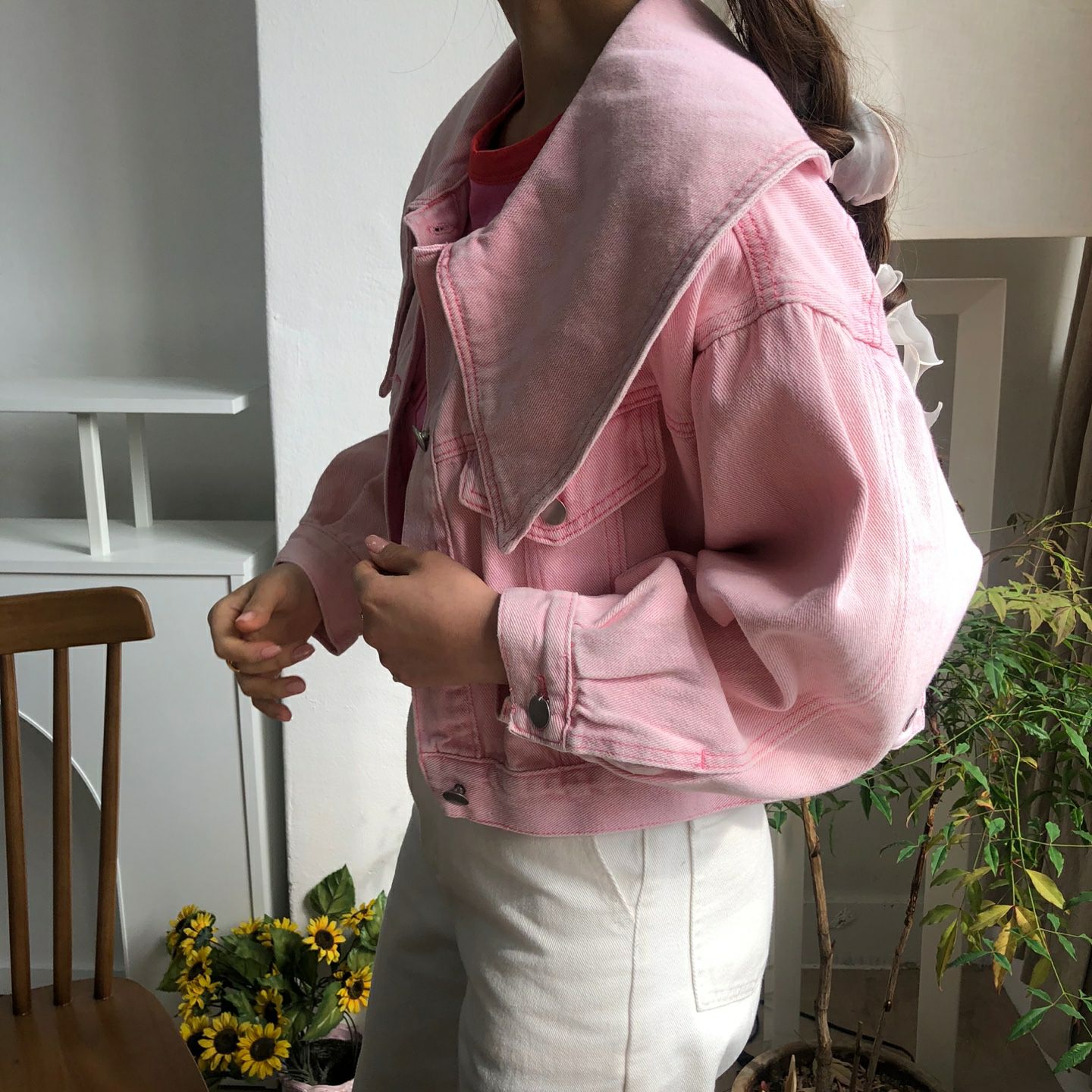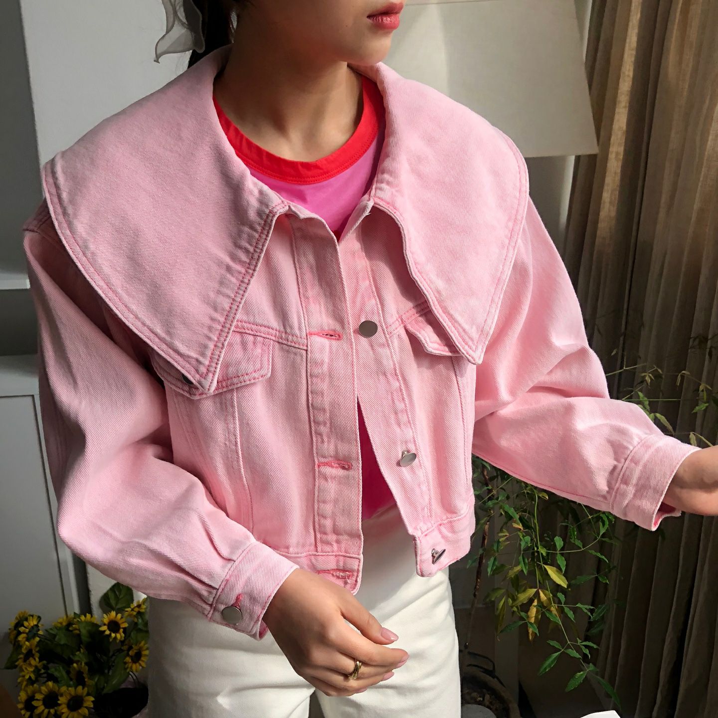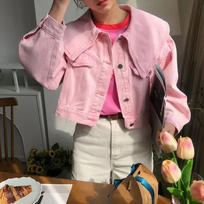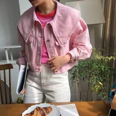 春天颜色 宽松型单排扣牛仔外套