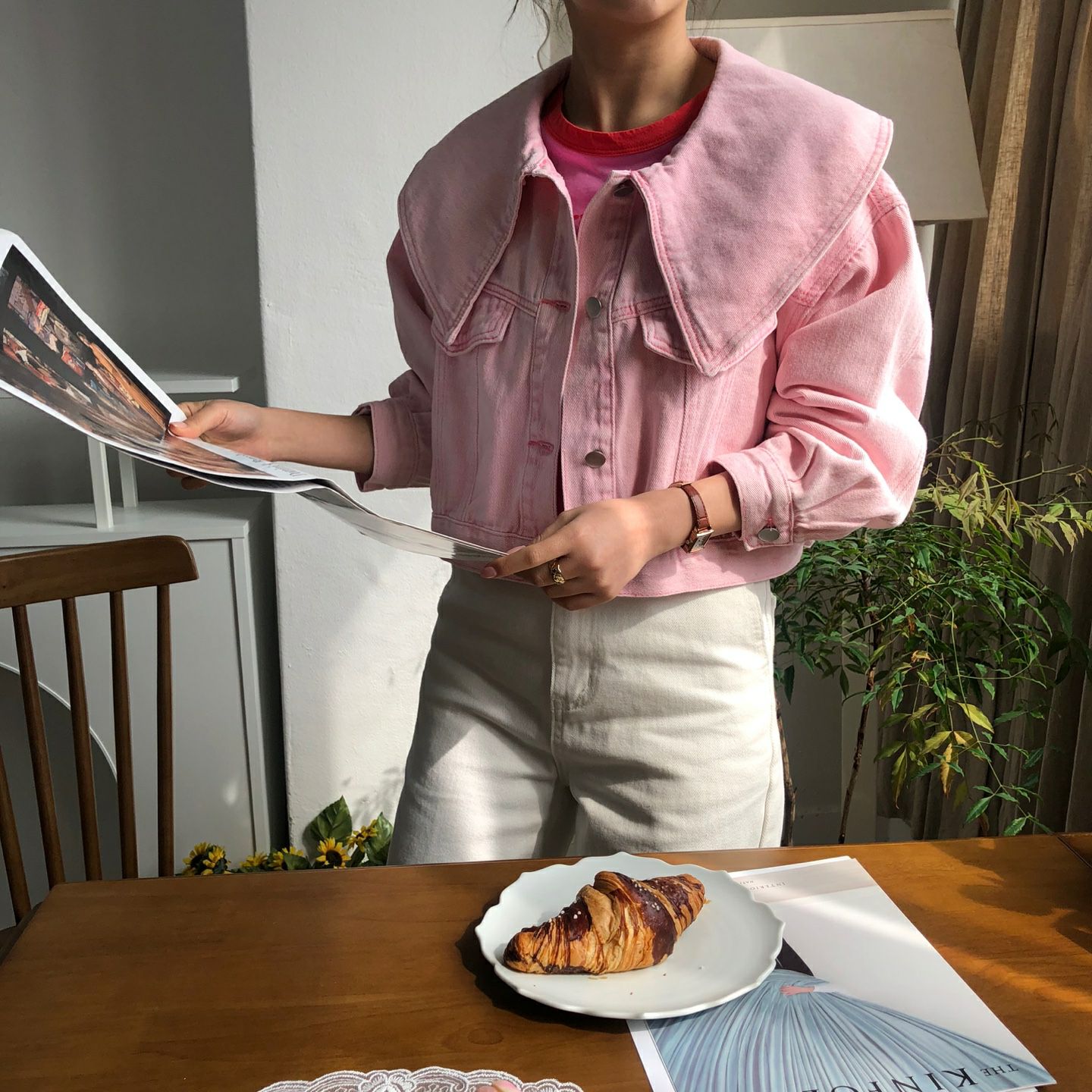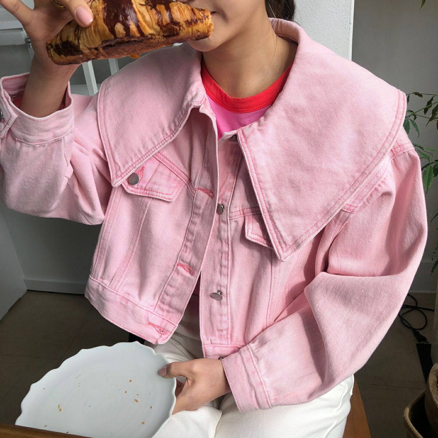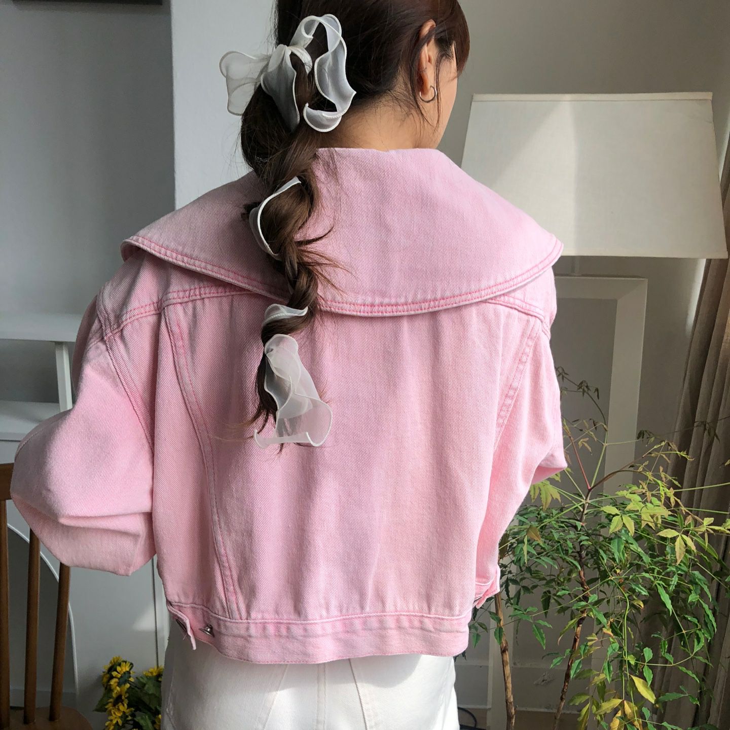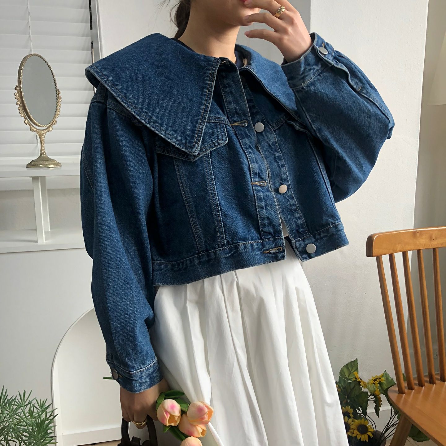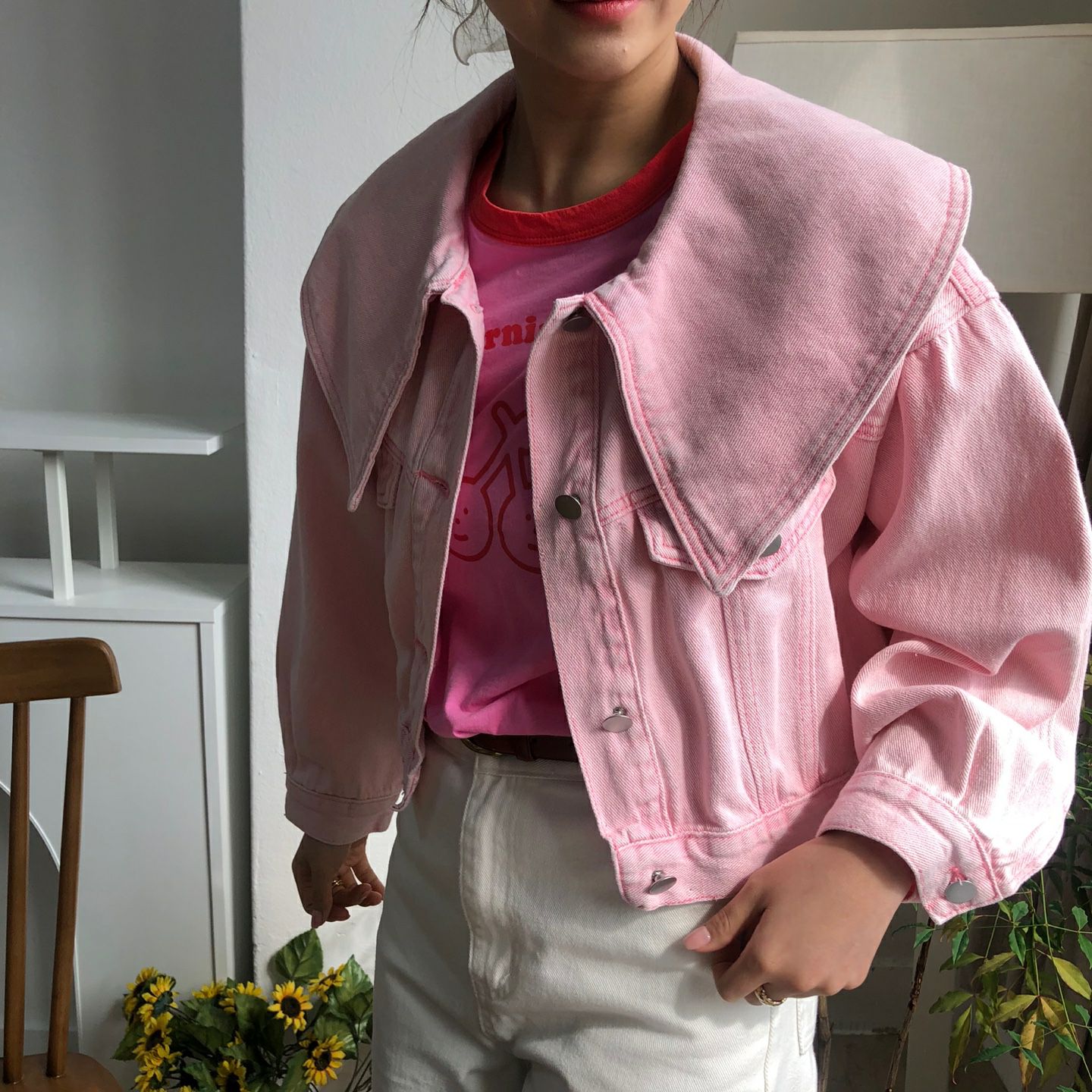 春天颜色 宽松型单排扣牛仔外套