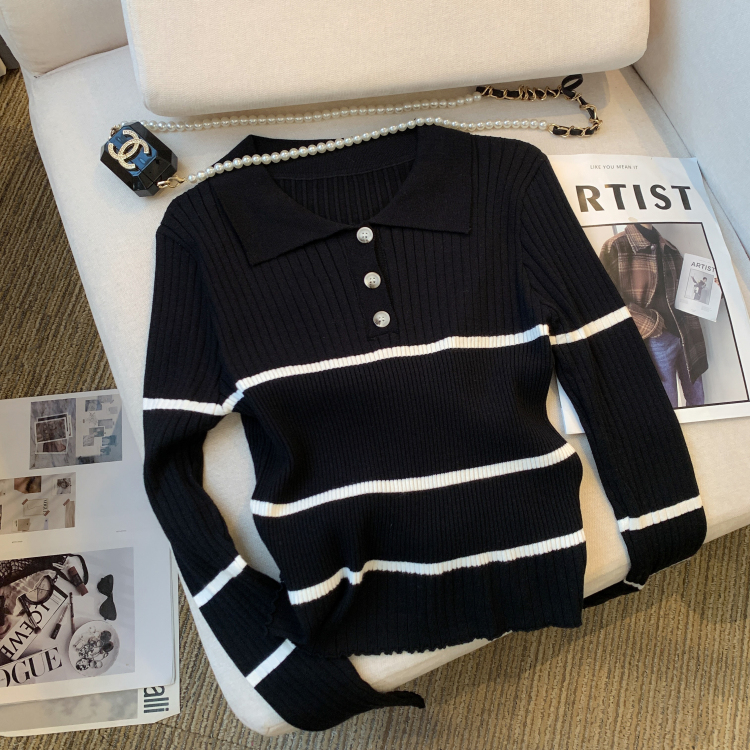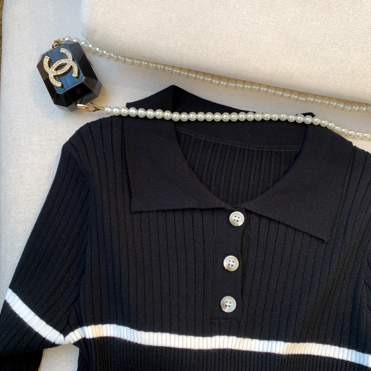 实拍 大货 2026春夏新款韩版设计感修身款polo领T恤针织衫上衣女