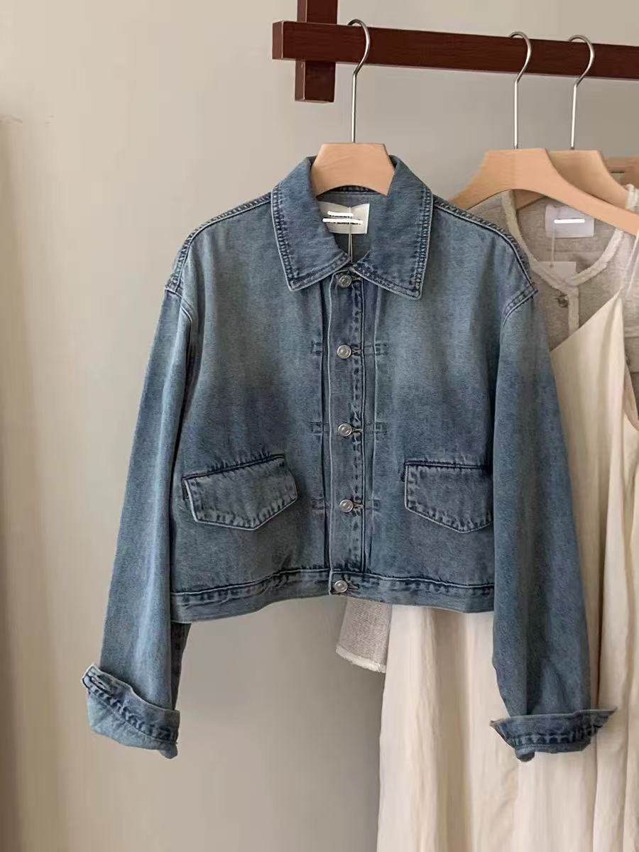 春季新款韩系蓝色长袖牛仔外套女韩版休闲百搭短款夹克上衣