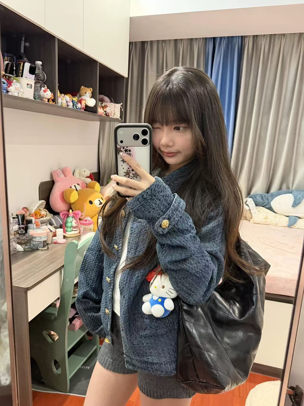 春季新款复古拼接纽扣开衫蓝色牛仔短外套女宽松显瘦休闲外套潮