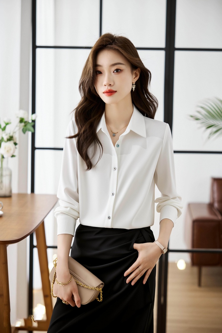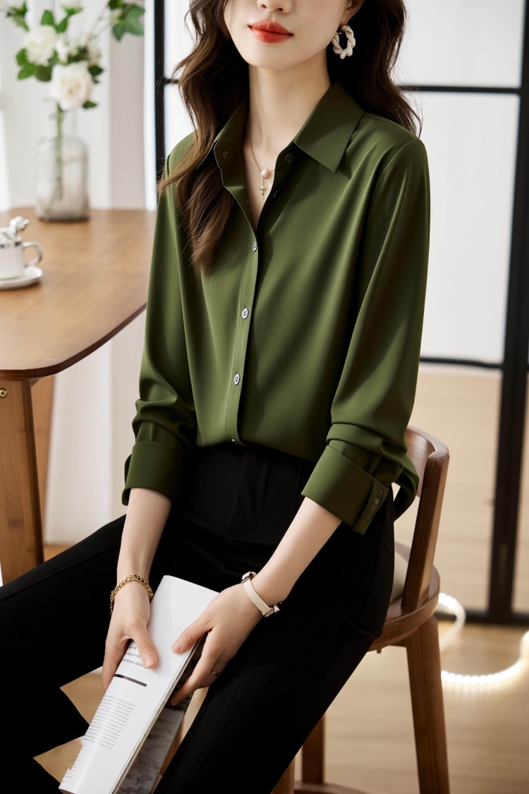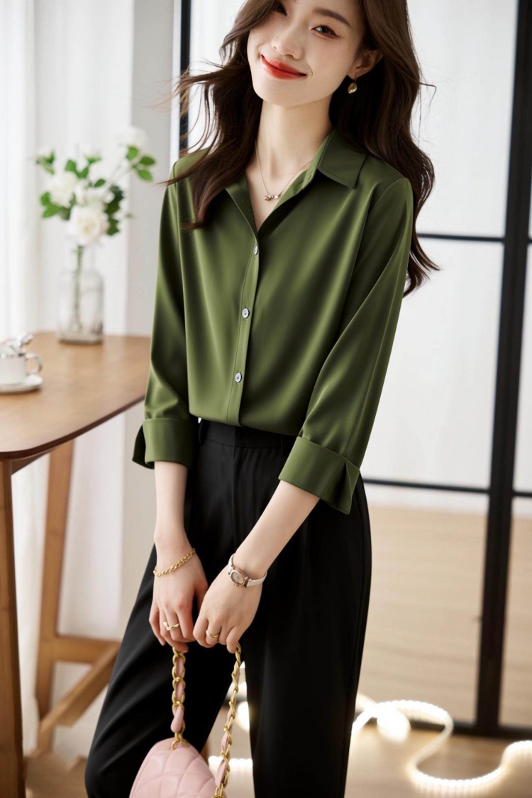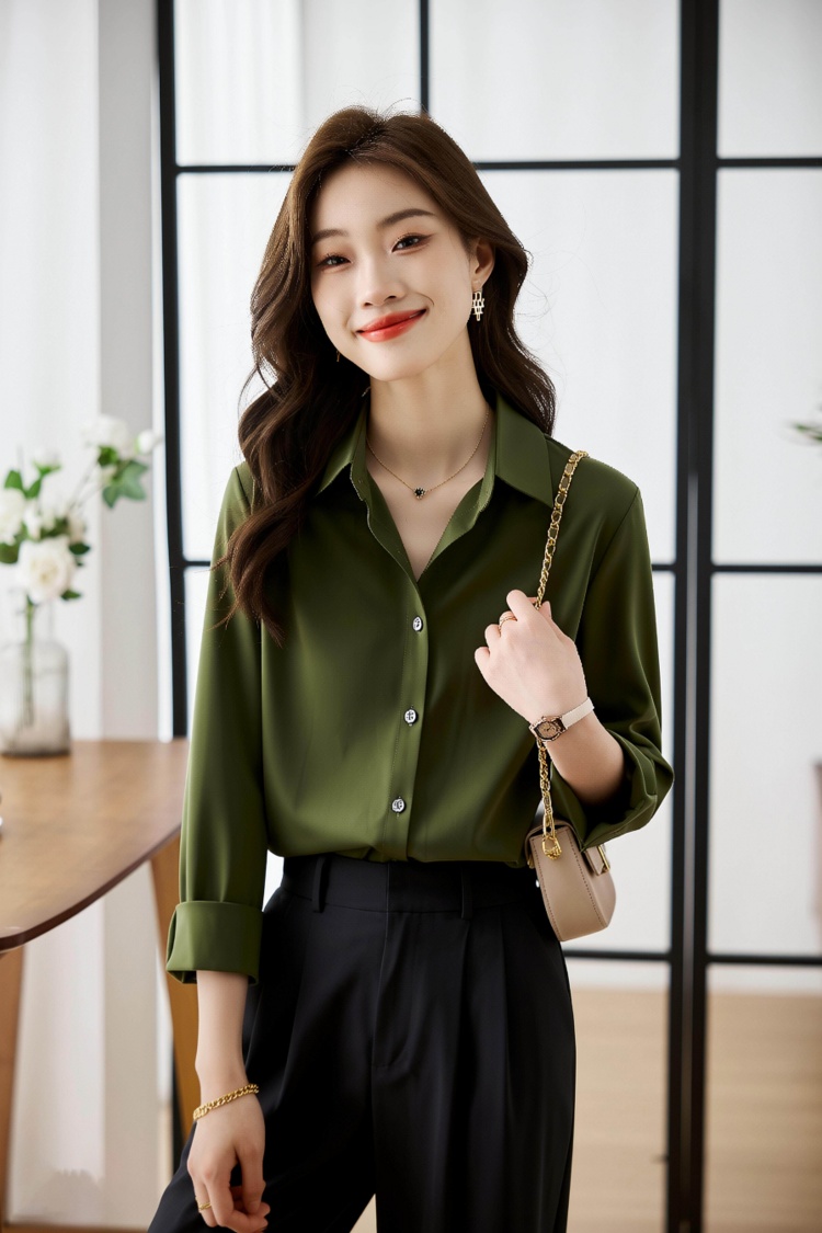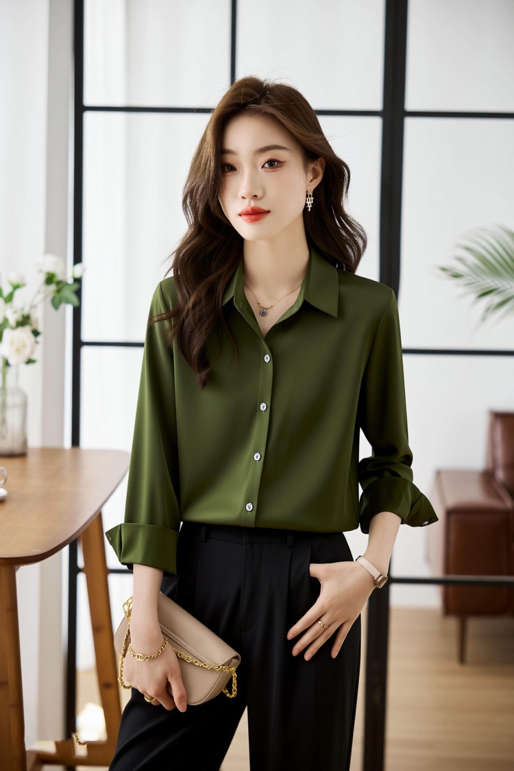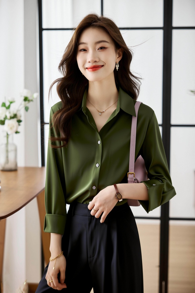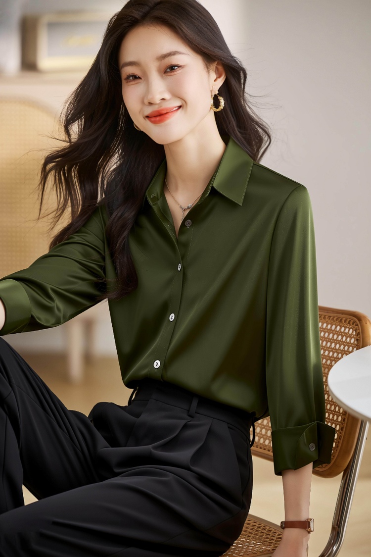 2026春衬衫女设计感小众百搭气质衬衣丝光缎面休闲职业上衣