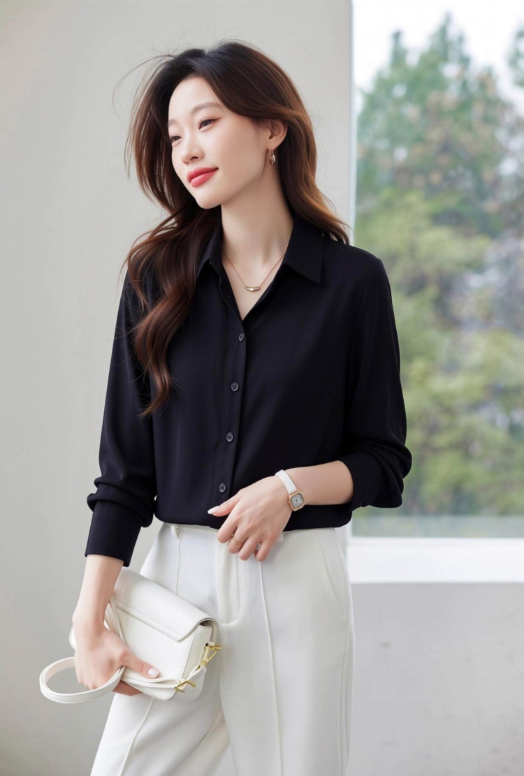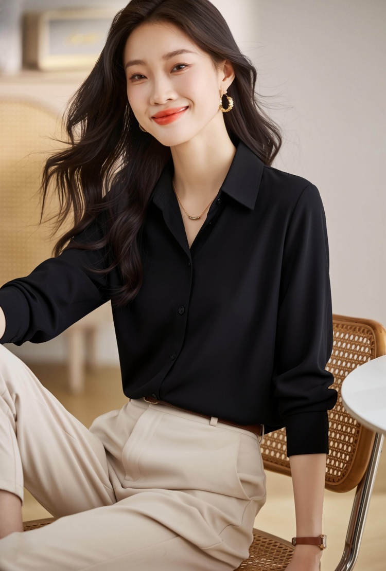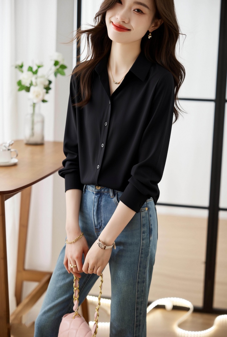 2026新款高级感黑色缎面衬衫女秋职业衬衣设计感小众别致上衣