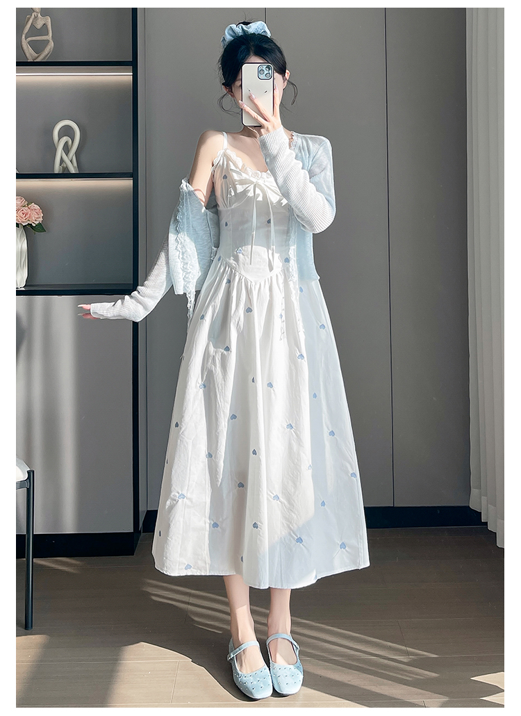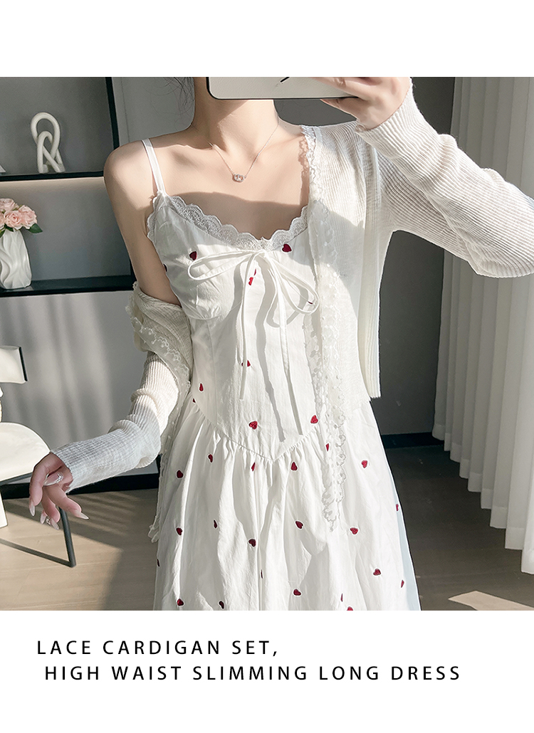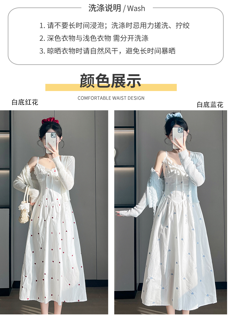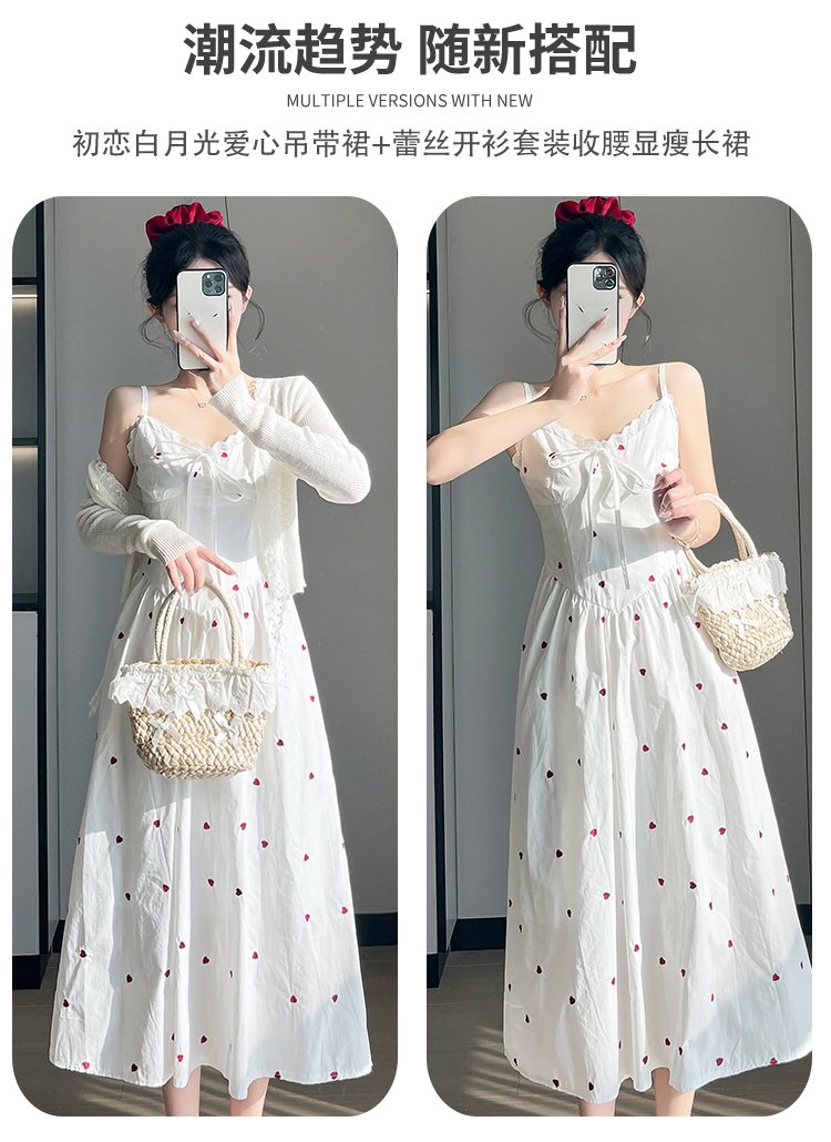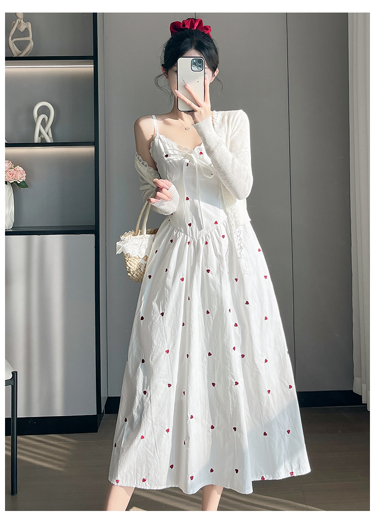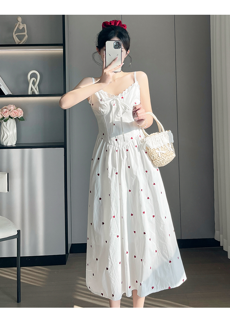 实拍2026爱心刺绣吊带连衣裙夏季新款收腰显瘦温柔风中长裙