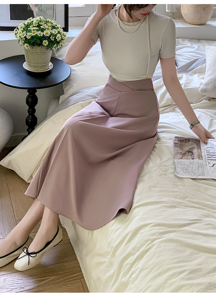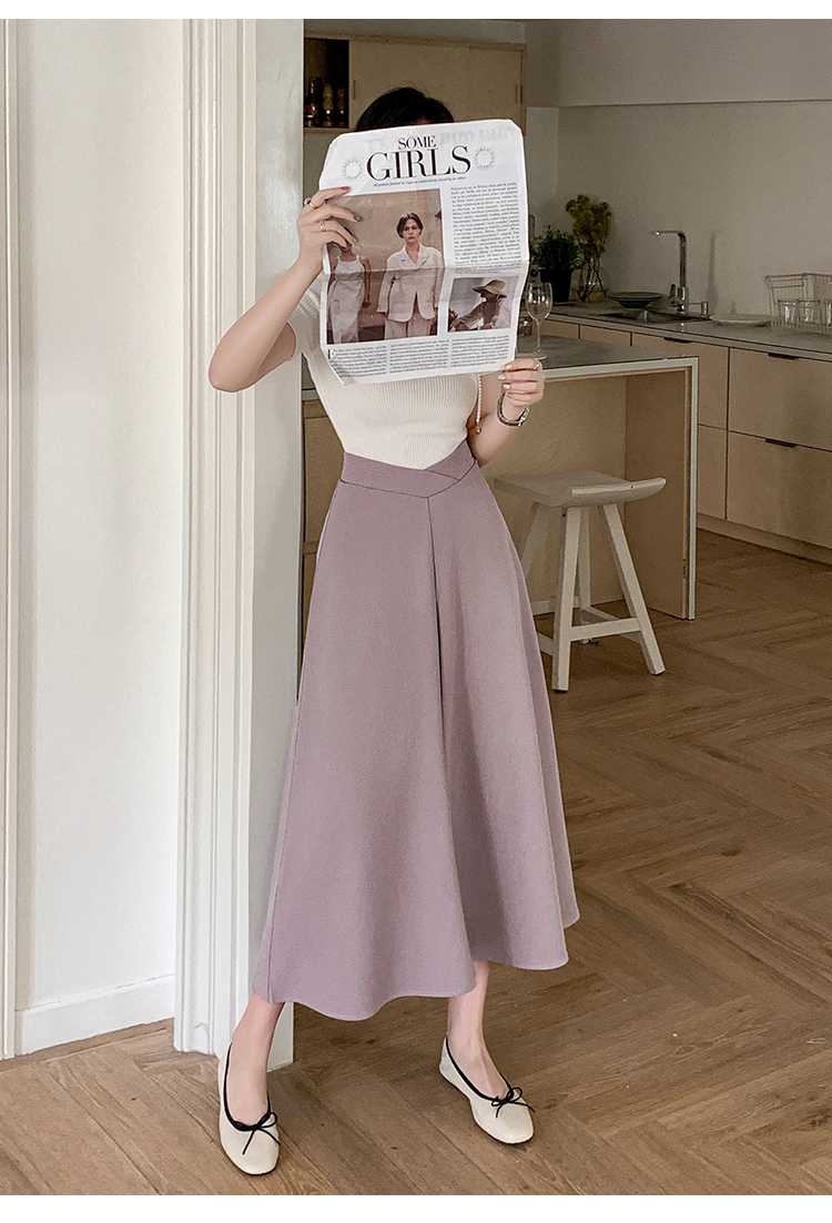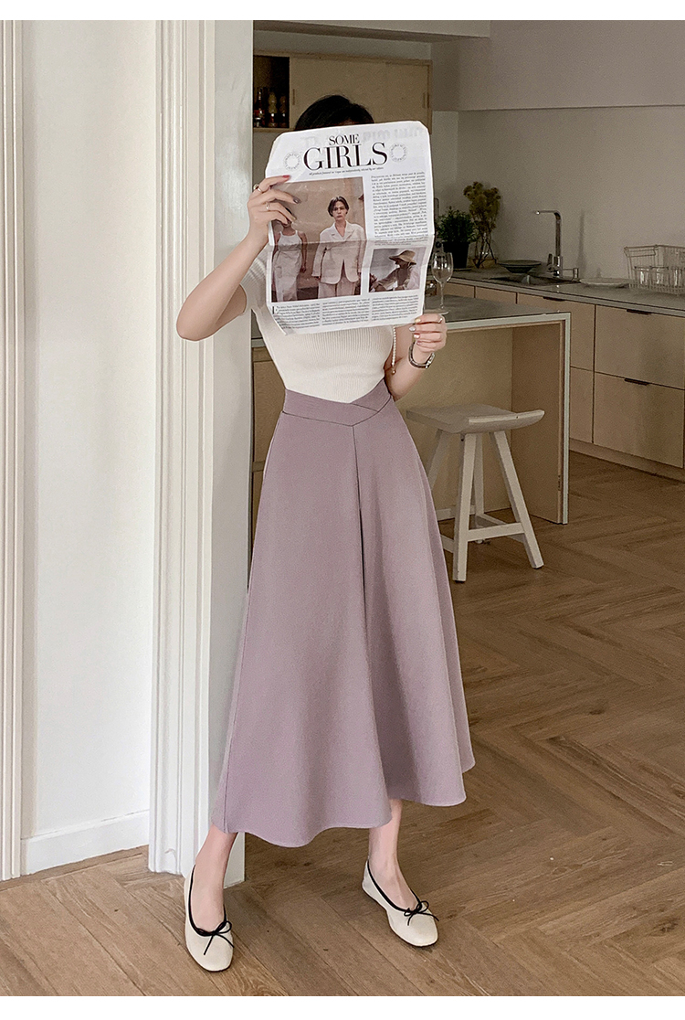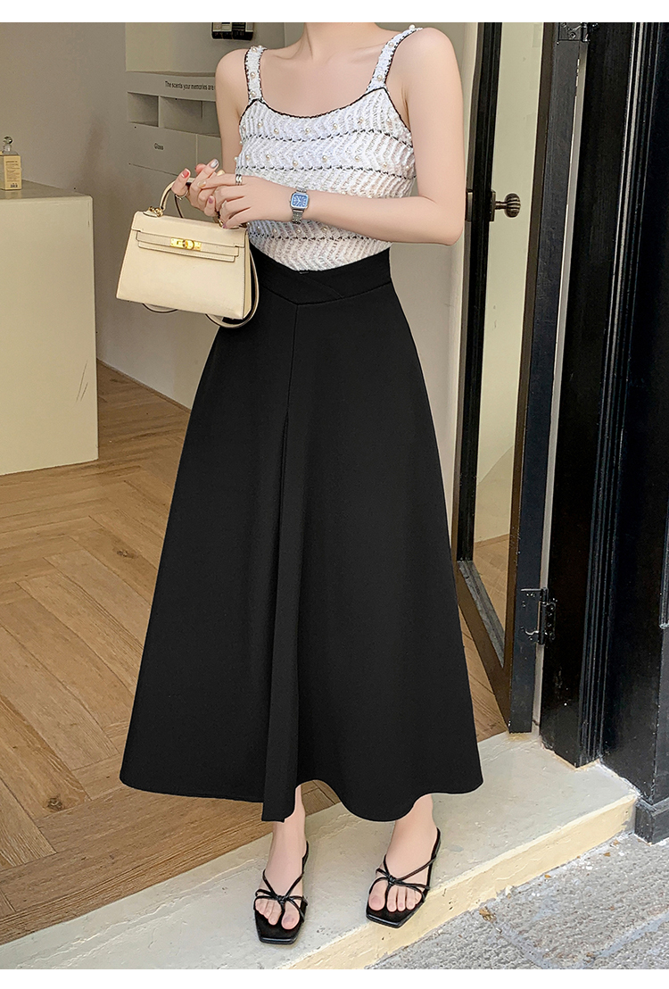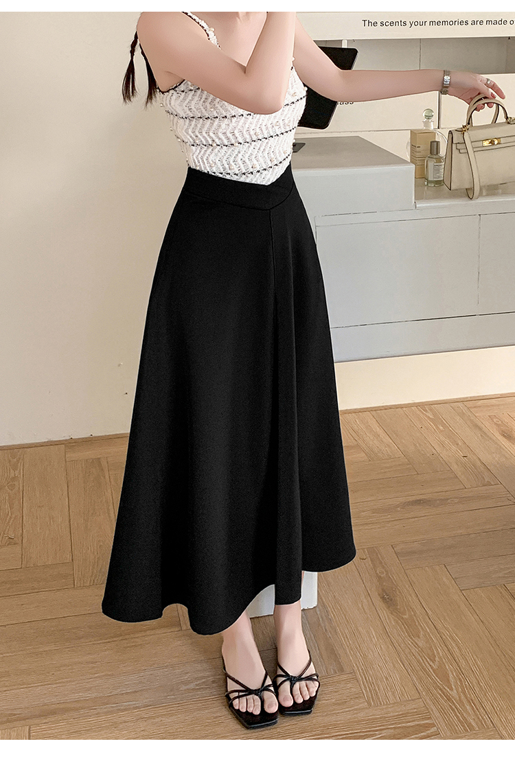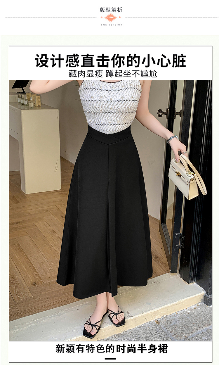 2026 봄/여름 신상 미디 스커트, 하이웨이스트, A라인, 엉덩이 커버, 슬림핏, 다양한 코디에 활용 가능한 롱 스커트
