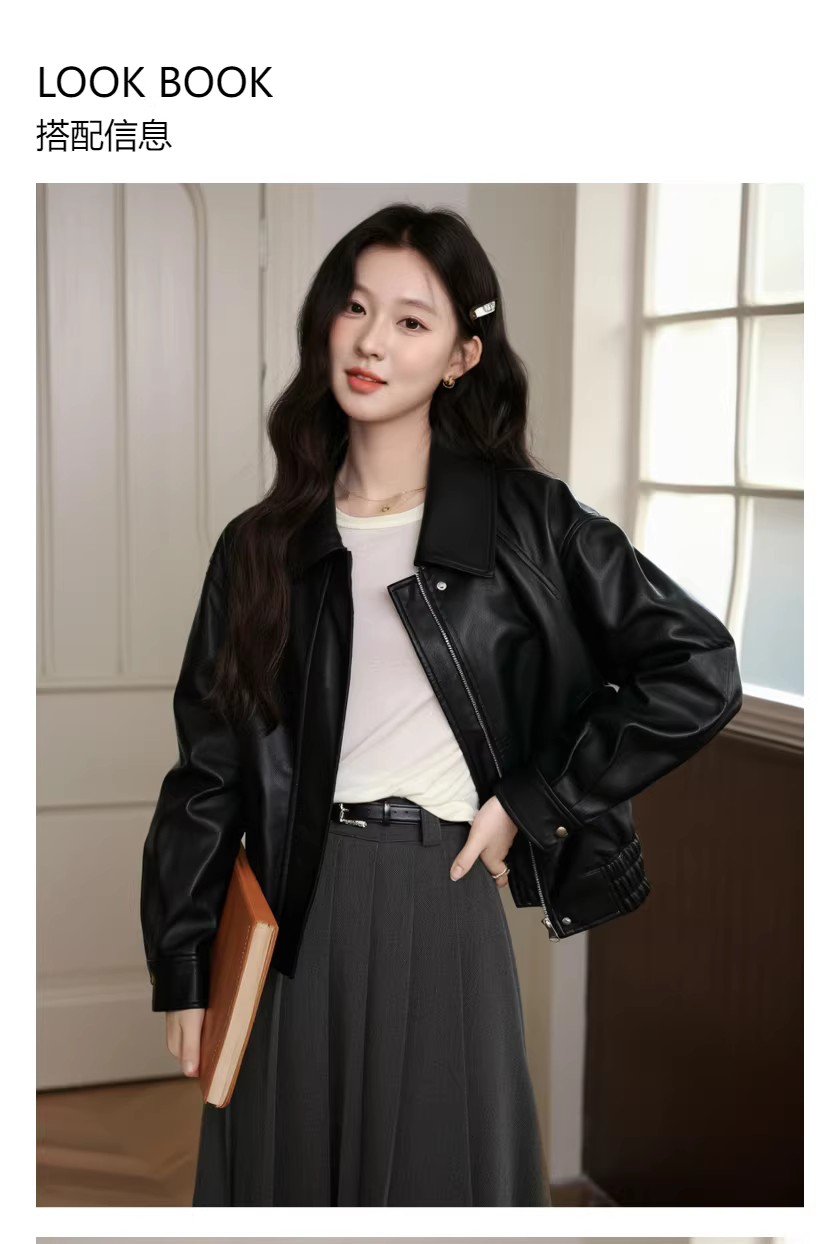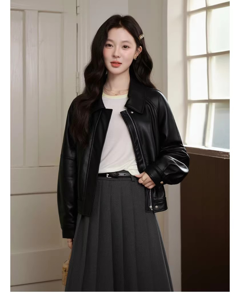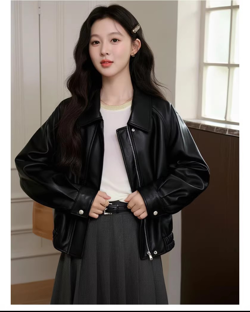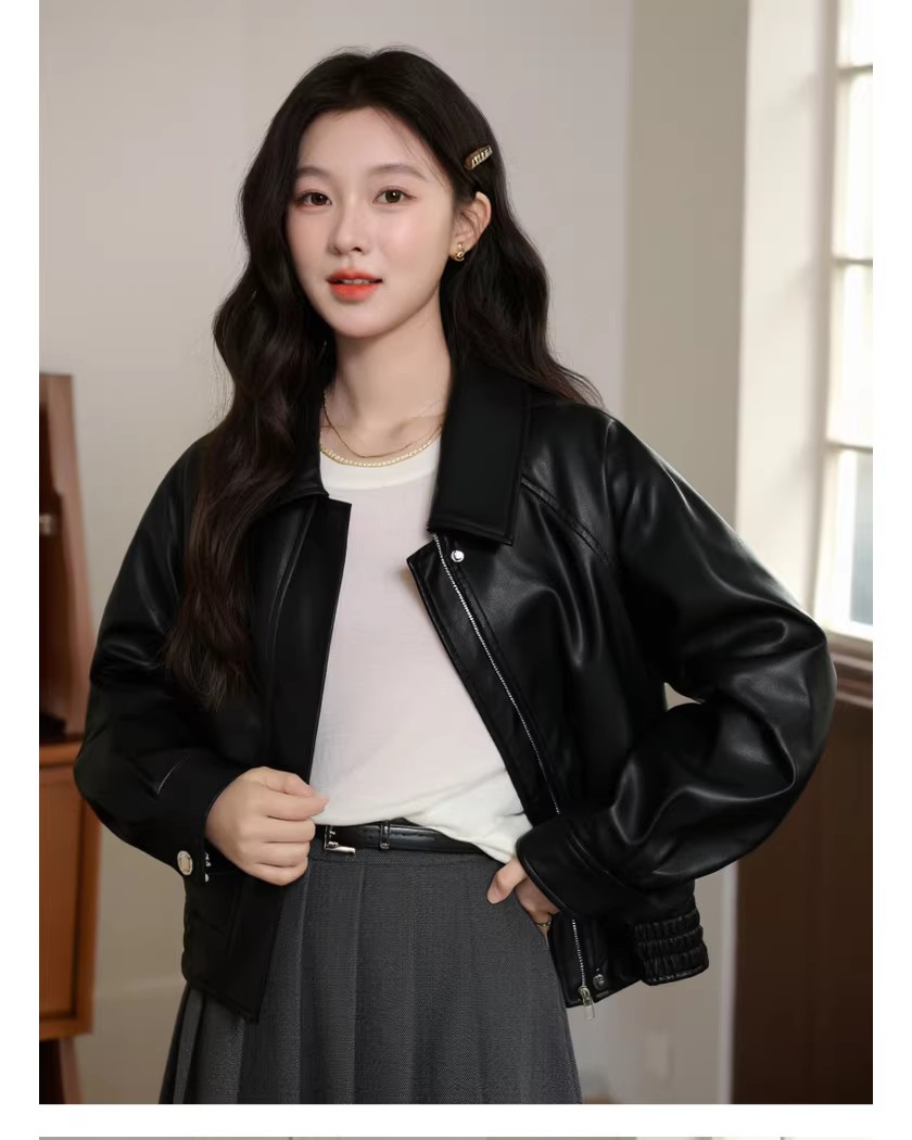 레트로 스타일의 활용도 높은 여성용 짧은 가죽 재킷, 2026년 봄 신상, 라펠 디자인, 캐주얼하면서도 멋스러운 PU 가죽 재킷.