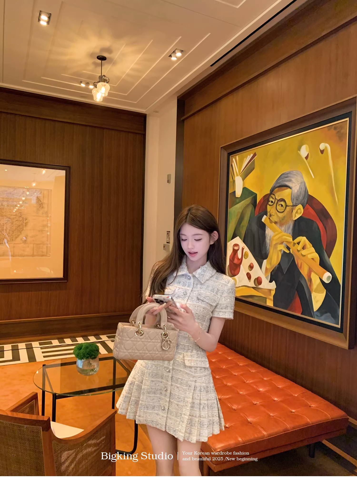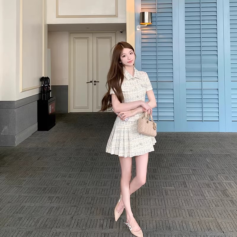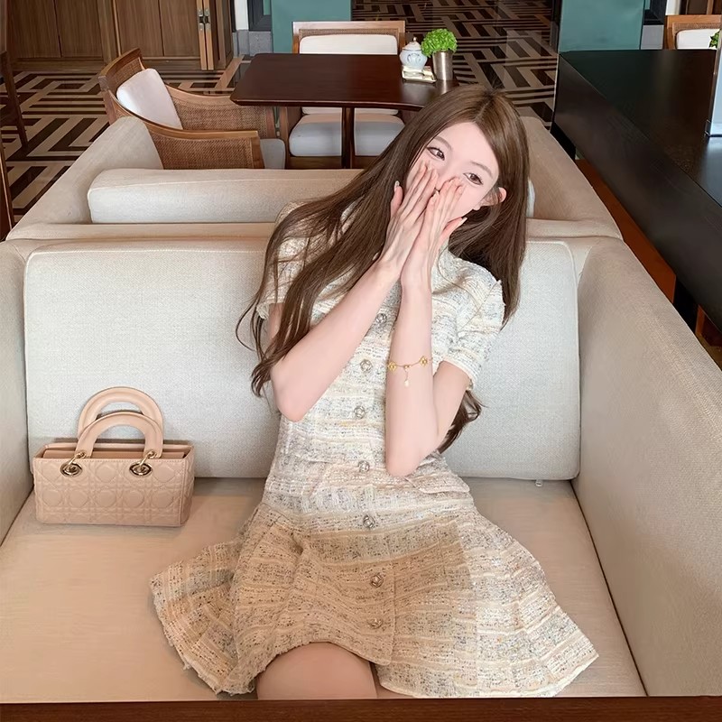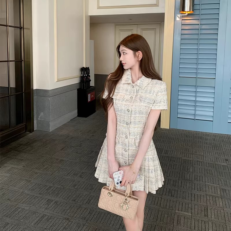 2026년 신상 프랑스 스타일 샤넬에서 영감을 받은 여성용 여름 드레스, 슬림한 허리 라인의 플리츠 스커트