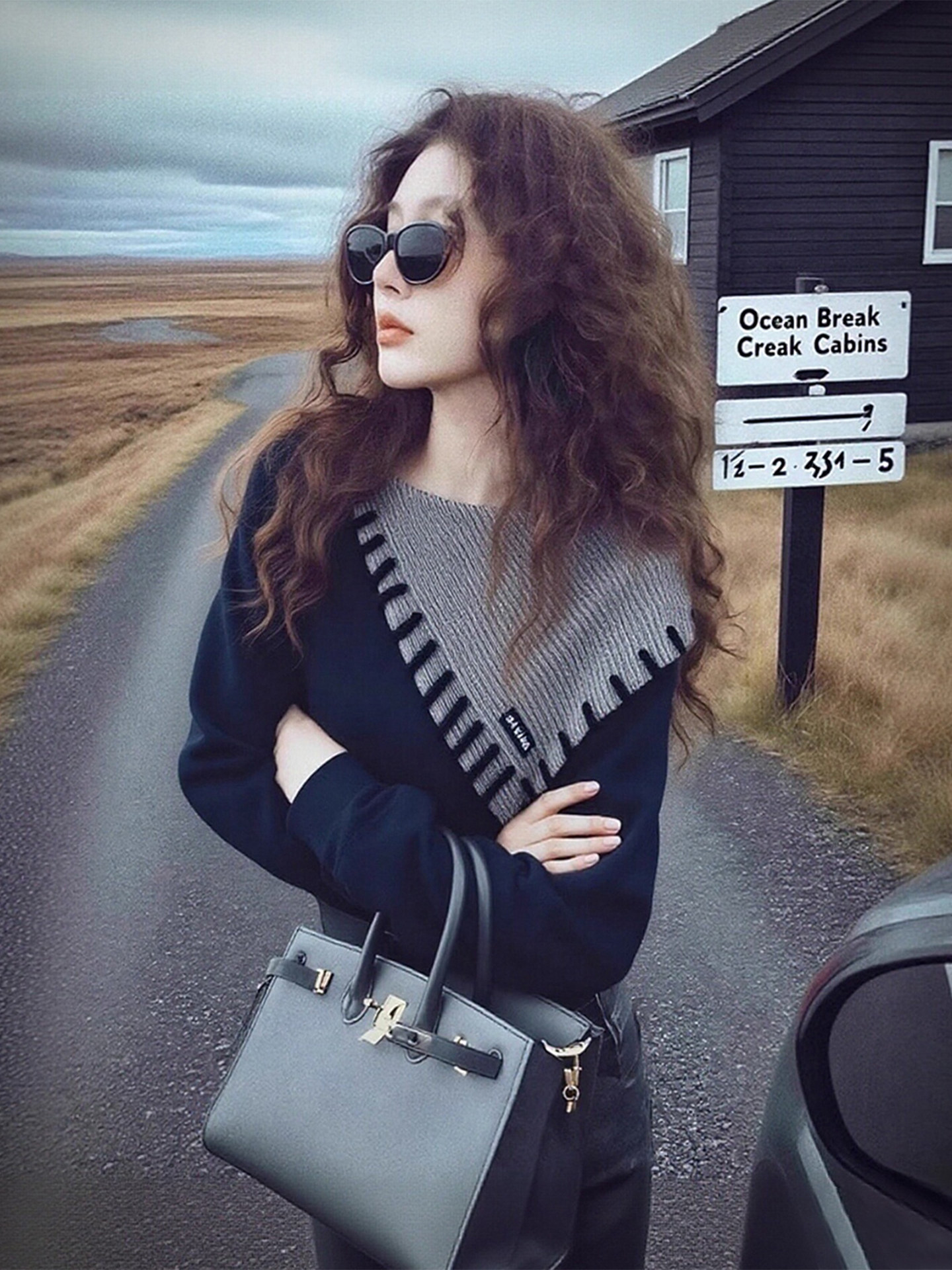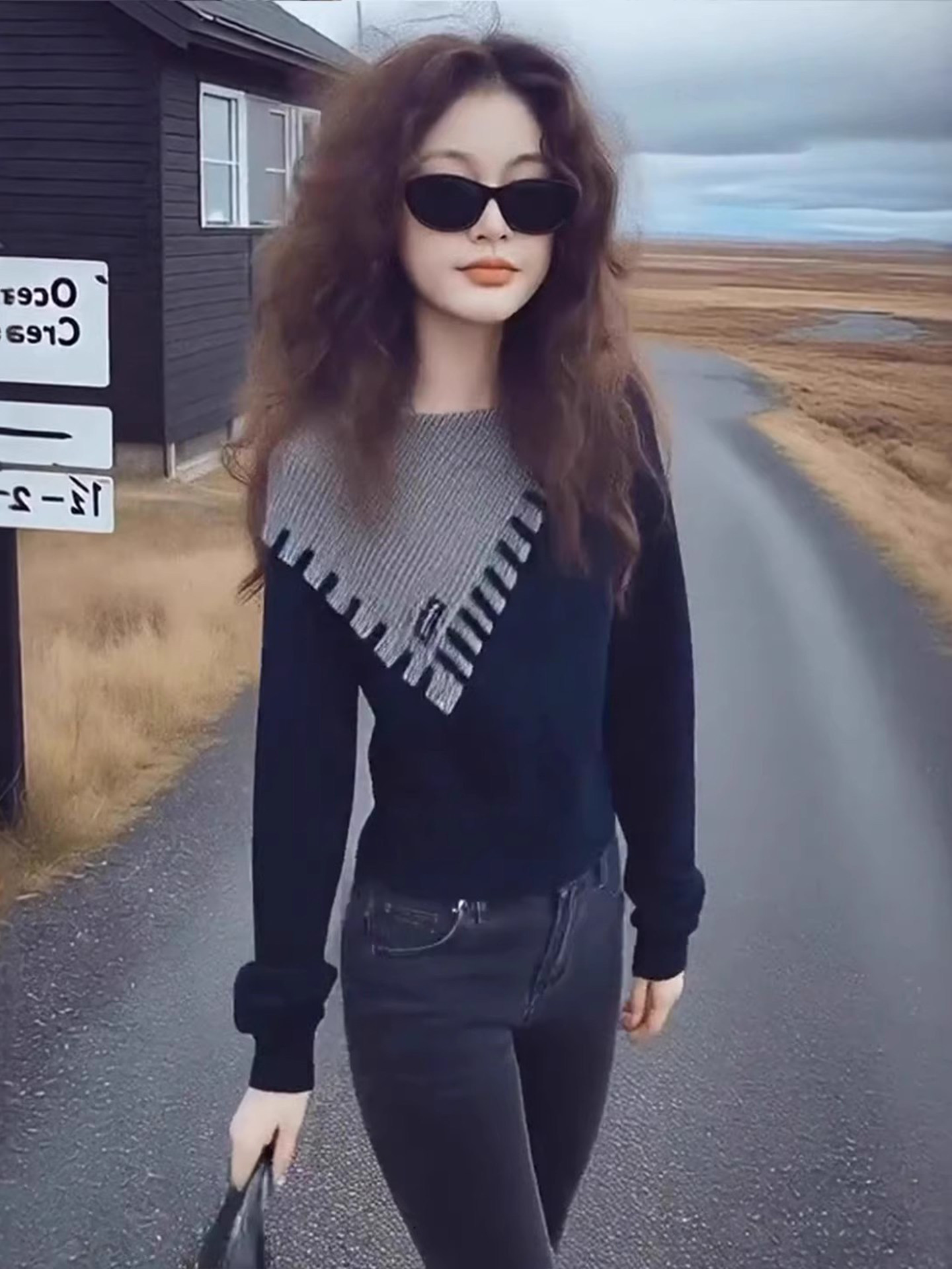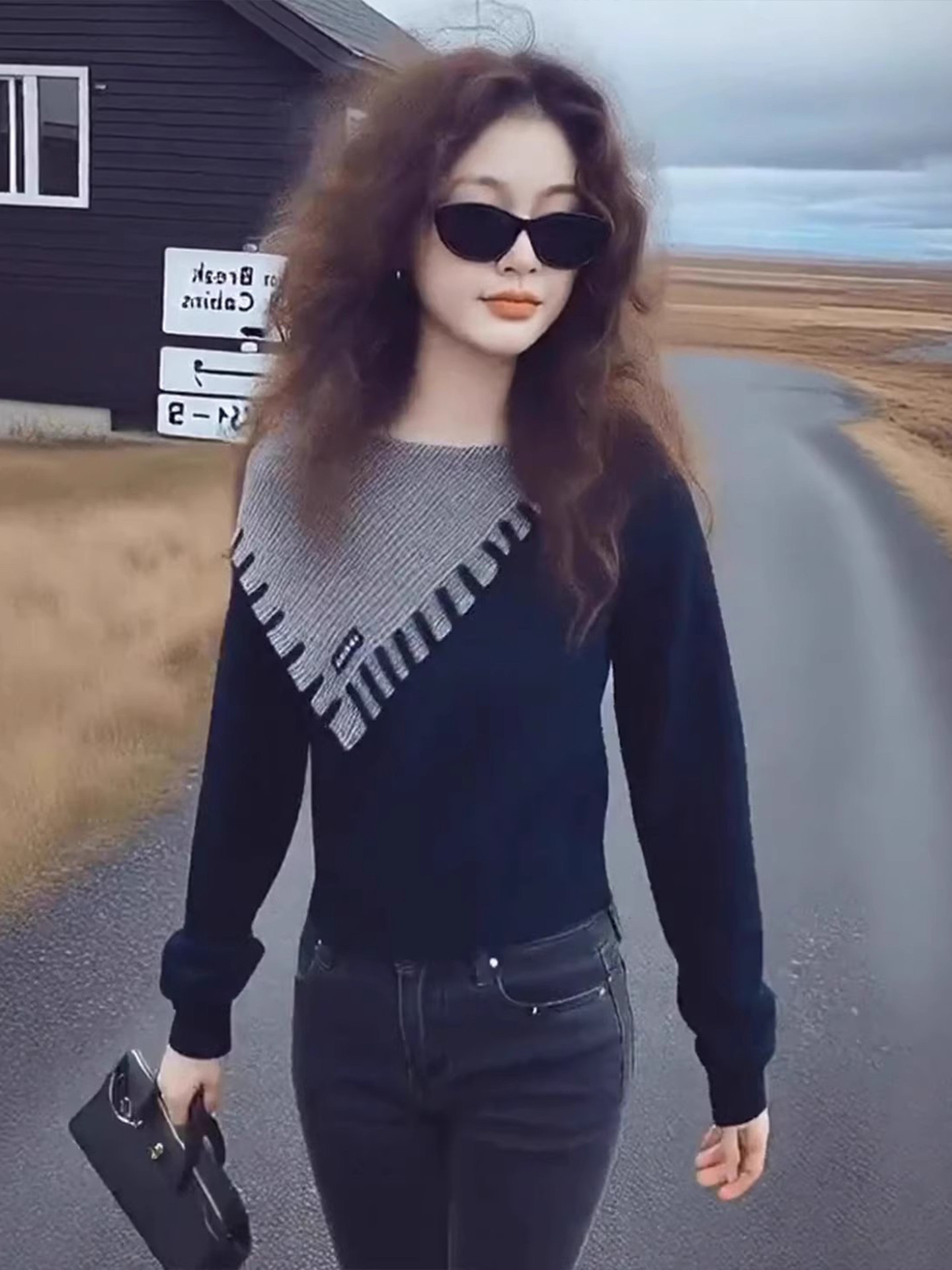 여성용, 봄/가을용, 플러스 사이즈, 독특하고 아름다운 슬림핏 긴팔 상의. 컬러 블록 패턴의 투피스 니트 스웨터로 통통한 체형의 여성분들에게도 잘 어울립니다.